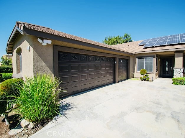 Beautiful Single Story 4 Bedroom 2 full bath home on a large 10,400 size lot that comes with a Resort-style backyard. The kitchen features granite countertops, lots of cabinet space with a touch of decorative glass cabinet doors and kitchen nook. The family room is adjacent to the kitchen comes with a cozy fireplace. The formal dining and living room has vaulted ceilings and wood shutters. You will also find ceiling fans throughout the house. The main bedroom has walk in closet, en-suite bathroom, sliding door for easy access to the beautiful backyard. The main bathroom was upgraded about 3 years ago features double sink vanities, self closing cabinet doors and a walk in shower. The second bathroom has double sink vanities and a bath tub. Indoor laundry, a well maintained front and fully fenced back yard for privacy, a three car garage, a long driveway for RV, trailor, boat or additional parking plus the exterior of the home was recently painted. The back yard is ready for relaxation or entertainment with a sparkling pool and spa, BBQ island and a Palapa, covered patio with ceiling fans etc. Beautiful views of the Mountains, easy access to fwys and shopping. NO HOA and buyer to assume solar lease.