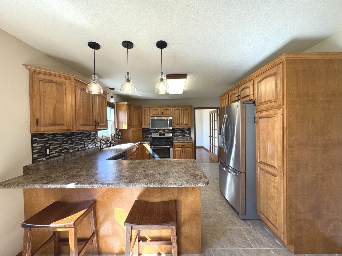 Pride of ownership shines in this beautifully maintained, one-owner 2 Story home! Offering generous living spaces and thoughtful updates throughout, this home features a stunning living room with vaulted ceilings and a cozy gas log fireplace that creates a warm, inviting focal point. Meticulously cared for and move-in ready, this home is a rare find that combines space, comfort, and room for everything. Kitchen features glass tile backsplash, snack bar with pendant lighting, Range-Refrigerator-Microwave-Dishwasher-garbage disposal. The laundry is located on the main floor. Upstairs you'll find 4 generous size bedrooms, primary bedroom with ensuite bath including shower and whirlpool. The full finished basement expands your living options, projector and surround sound speakers stay. Additional full bath-perfect for guests and entertaining. There's also excellent storage space w/shelving, plus a workshop room with utility sink. Step outside to enjoy the large, fenced yard, complete Oak trees, Apple, Cherry and Pear trees, asparagus patch, raised garden beds, Sunsetter awning, shed and fire pit. Whether you're relaxing, gardening, or hosting summer gatherings, this back yard offers a tranquil setting. Pull down stairs in heated garage w/partially floored attic. Furnace & Central air 2022, Water heater 2018, Roof 2015 Lifetime 40+year shingles. Reverse osmosis drinking water with UV light treatment. 200 Amp. electric, 100 Amp in basement, 60 Amp in garage. Refrigerator in basement stays. Basement has supplemental Mysa baseboard heat with smart thermostat.
