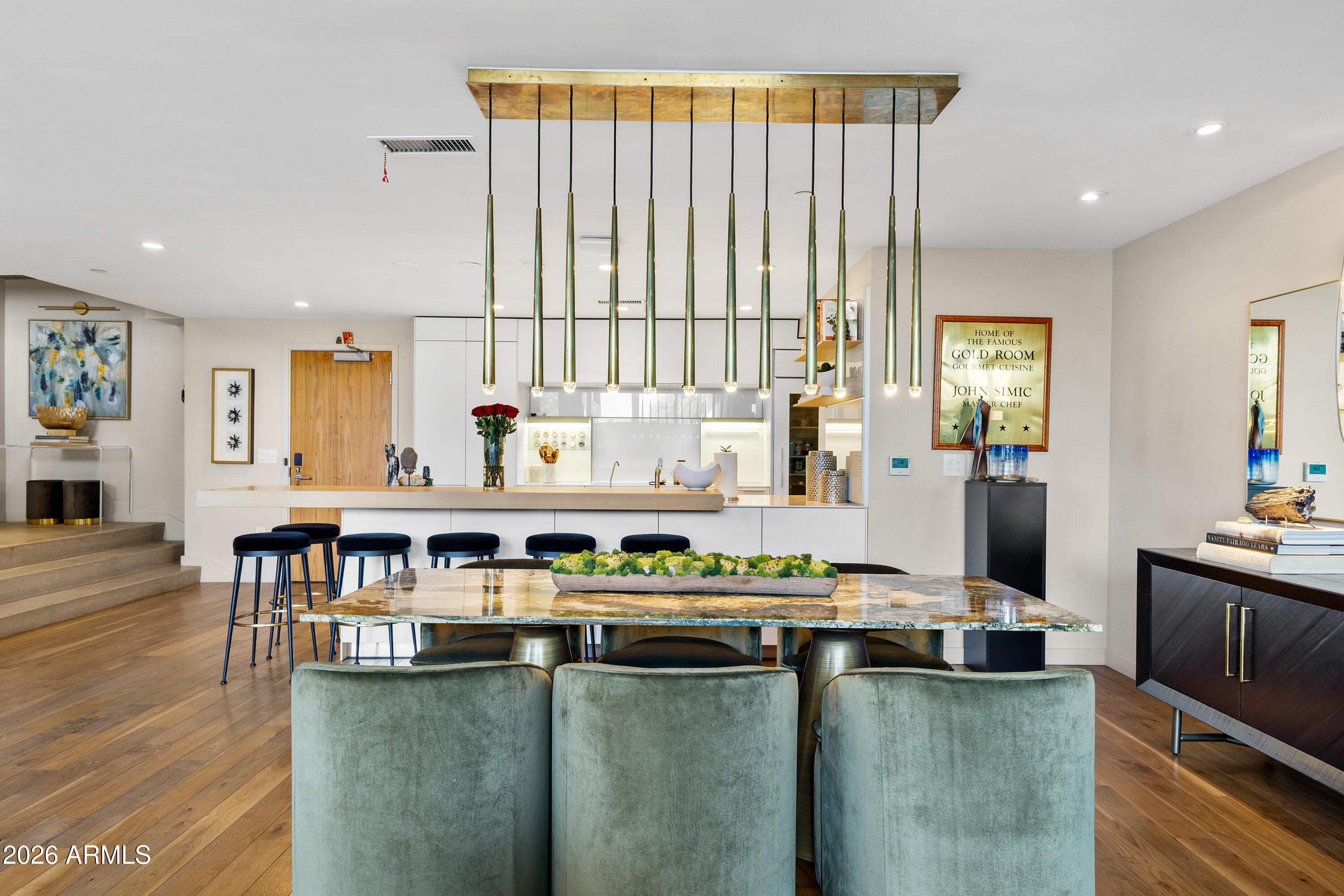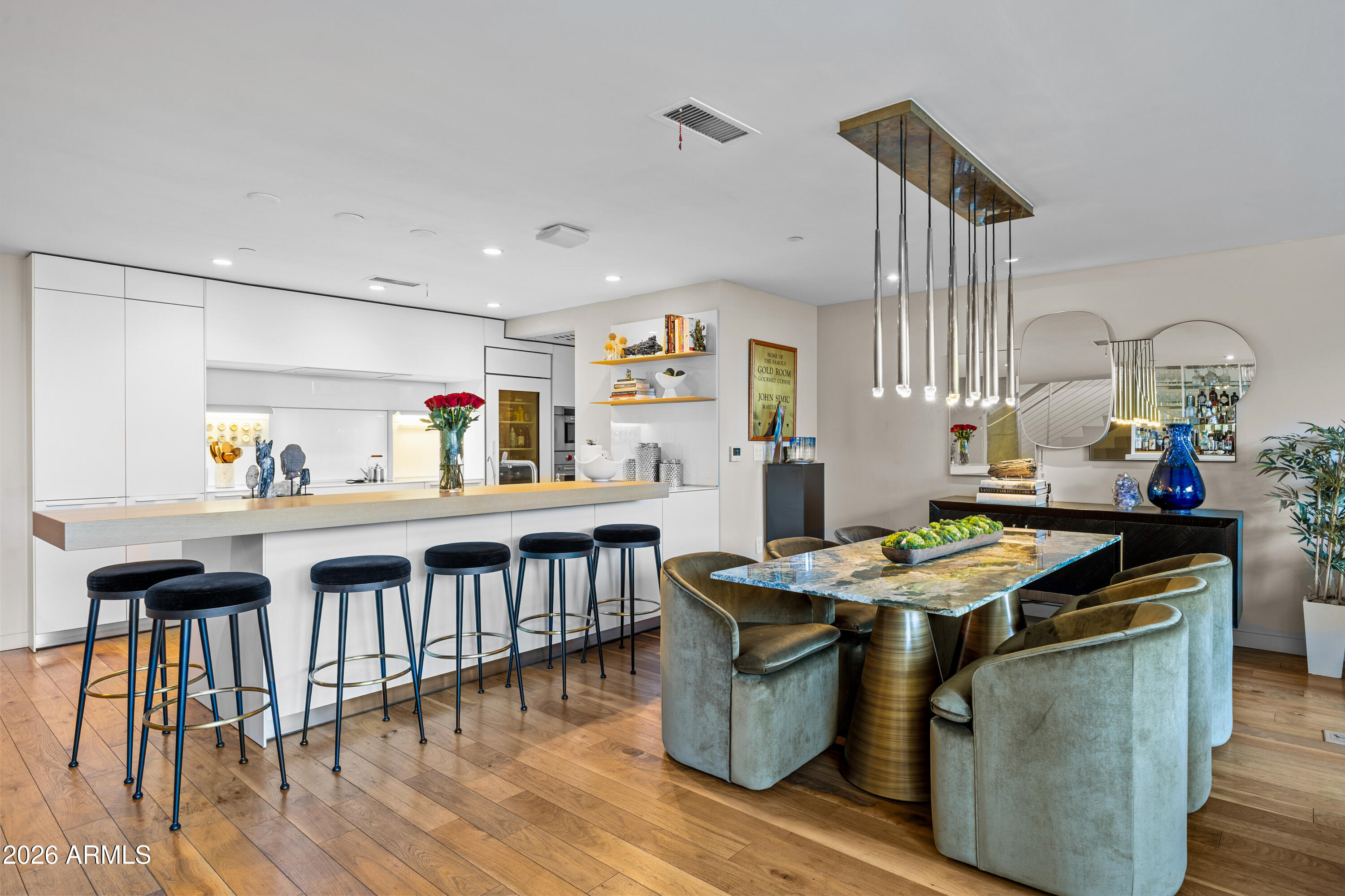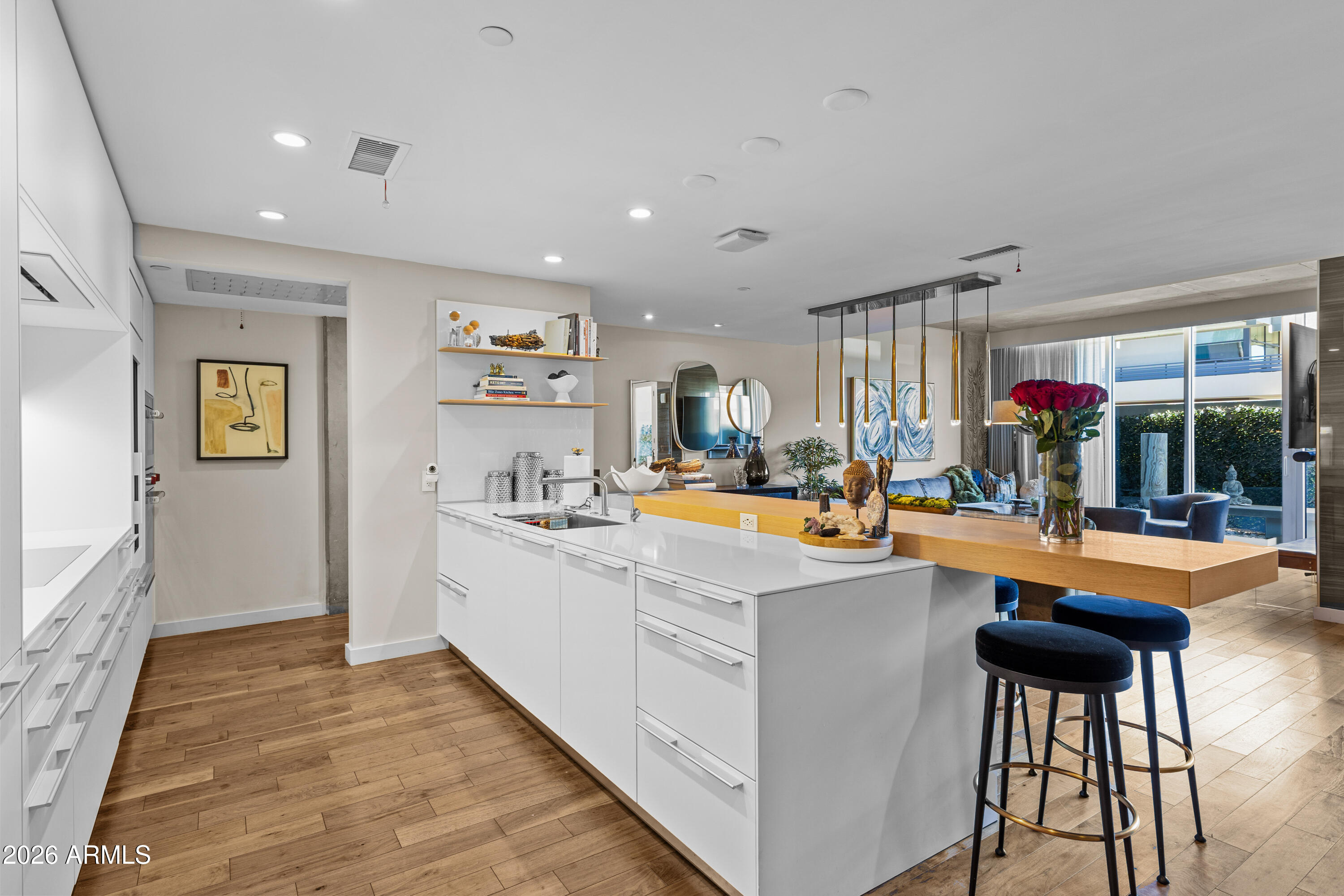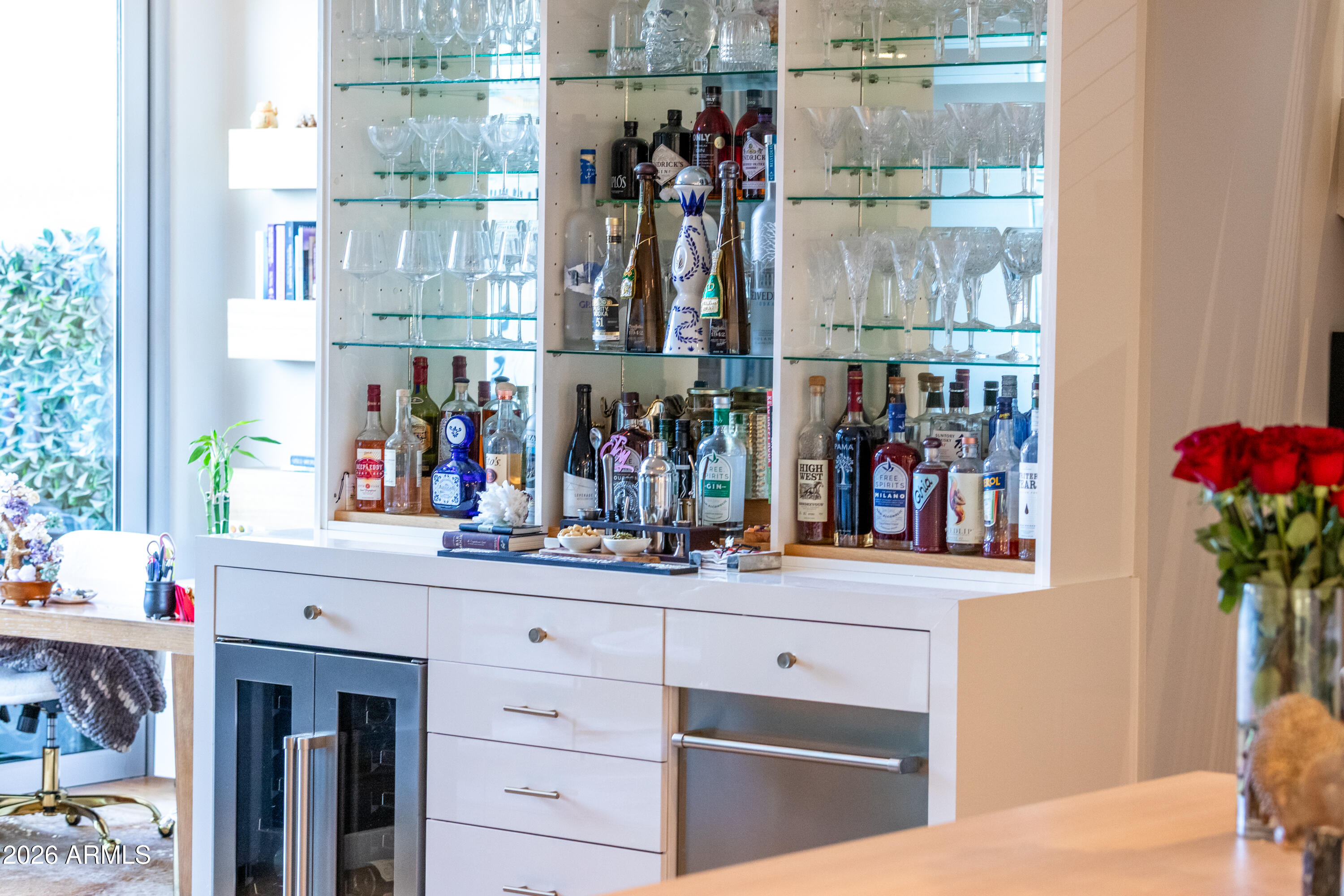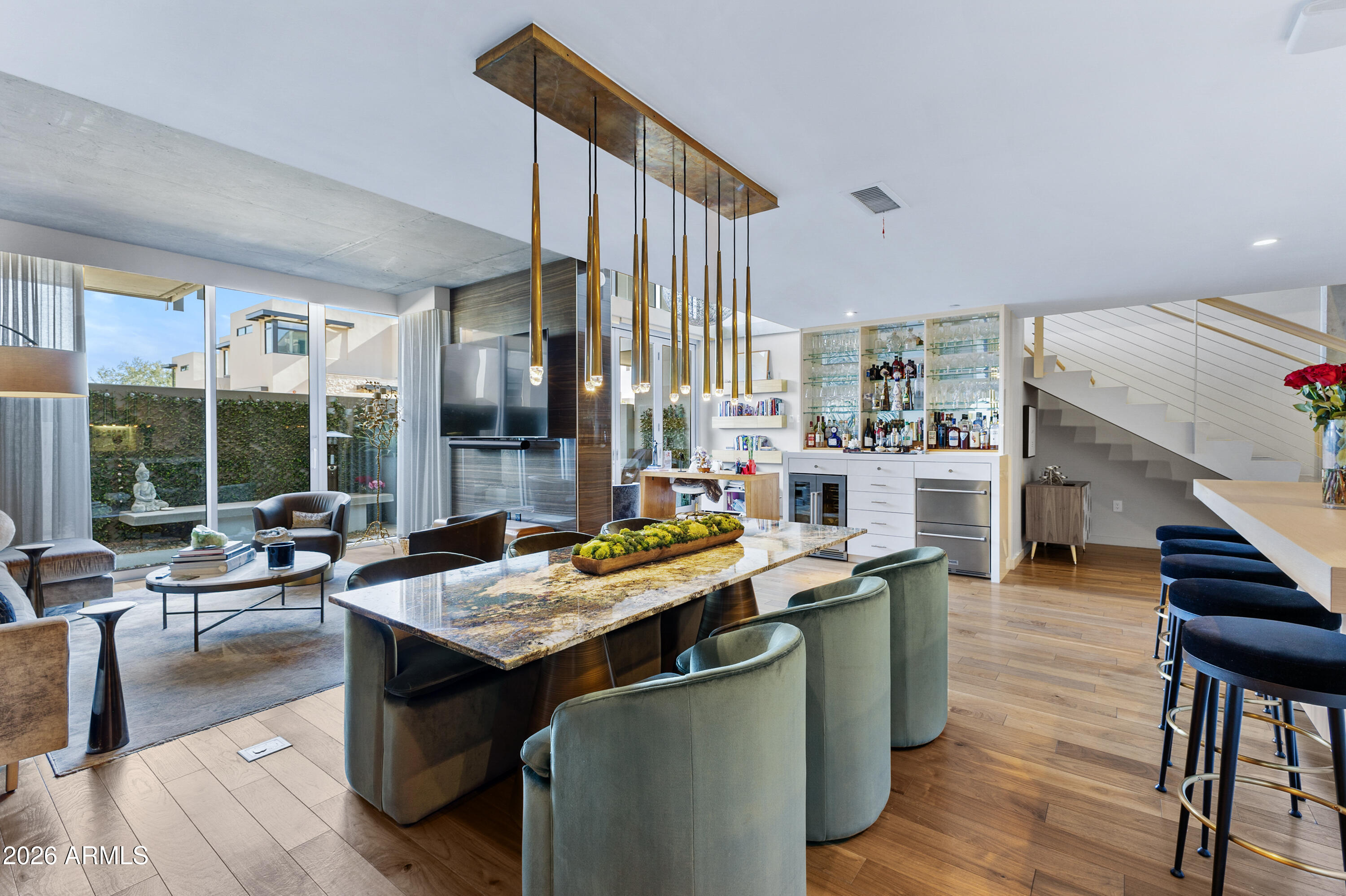 Extensively upgraded 2 bed, 2.5 bath residence within the exclusive Mountain Shadows Resort Condominiums. Features a custom Bulthaup kitchen with integrated cabinetry, built-in Miele coffee/espresso system, glass-front Sub-Zero refrigerator, and a full bar with beverage refrigeration. Open-concept living with floor-to-ceiling glass bifold doors creates seamless indoor/outdoor flow to a private Zen-inspired garden. Wide-plank wood flooring, designer lighting, and high-end finishes throughout. Boutique community of 41 residences set against Camelback Mountain in Paradise Valley with access to Mountain Shadows resort amenities, including room service, housekeeping, dining, pool, and fitness.