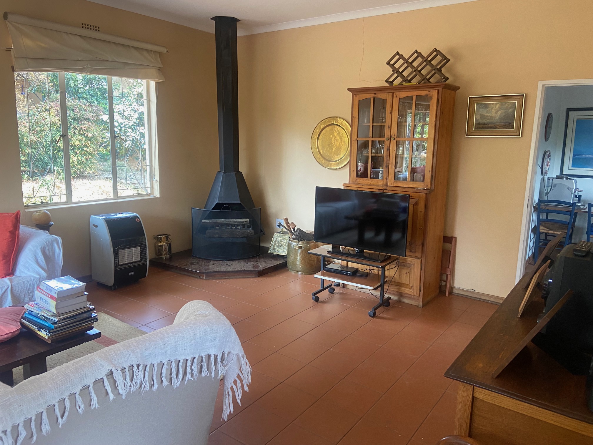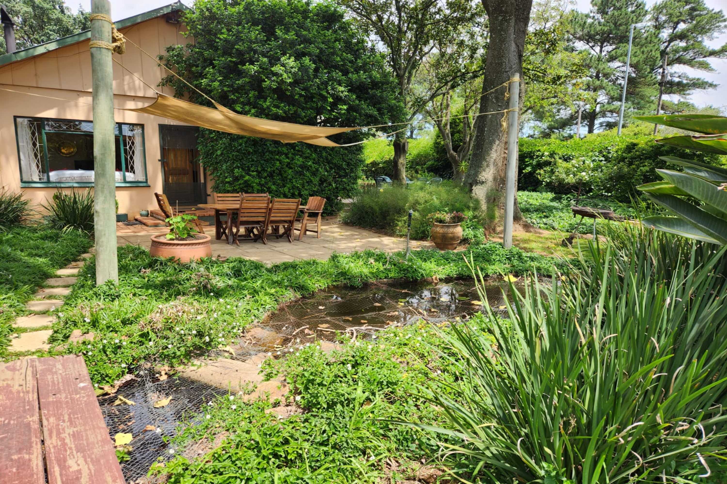 Outdoor features include a swimming pool, lapa, storeroom, staff quarters, and mature trees (pecan nut, fig, and avocado), creating a serene, established setting.