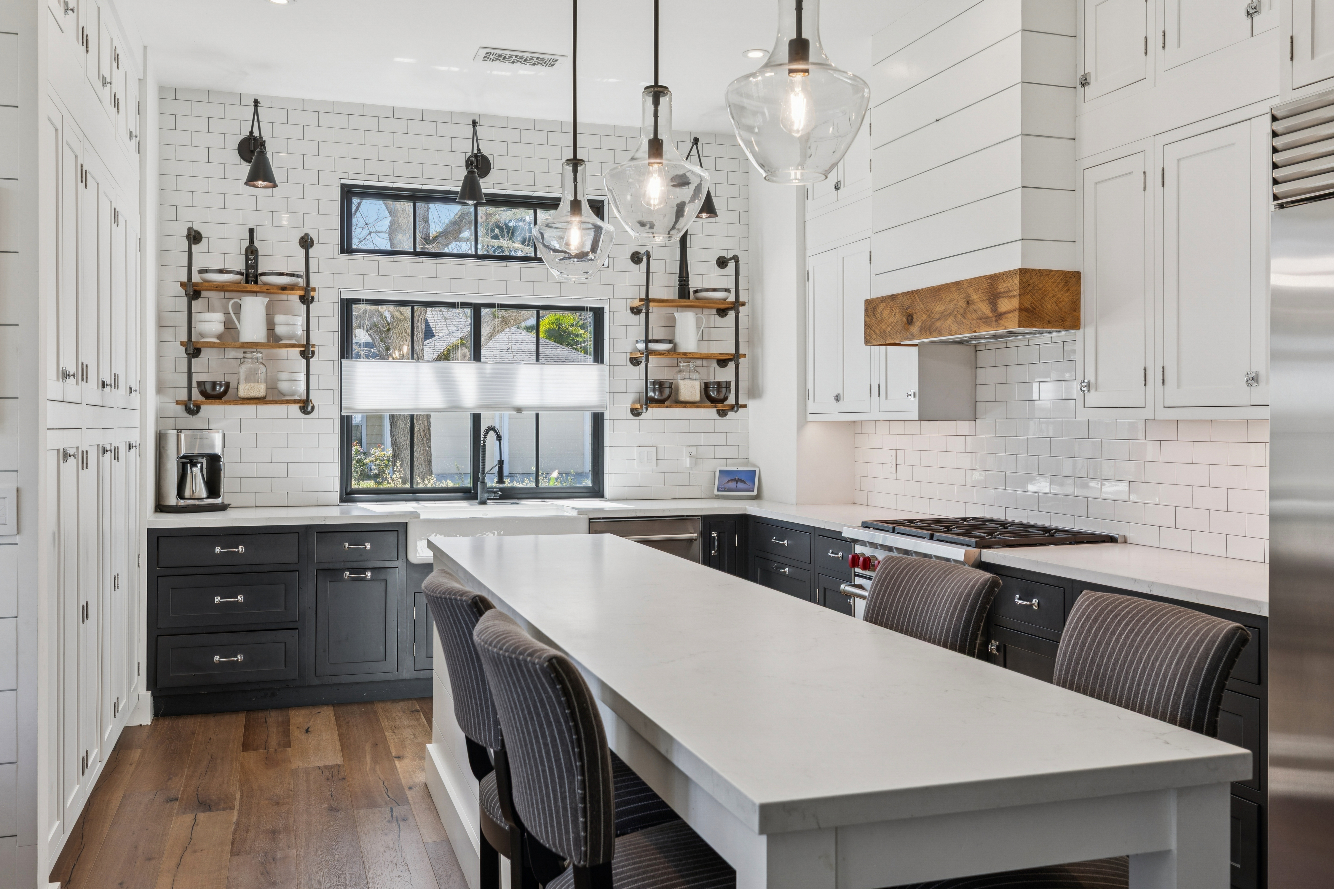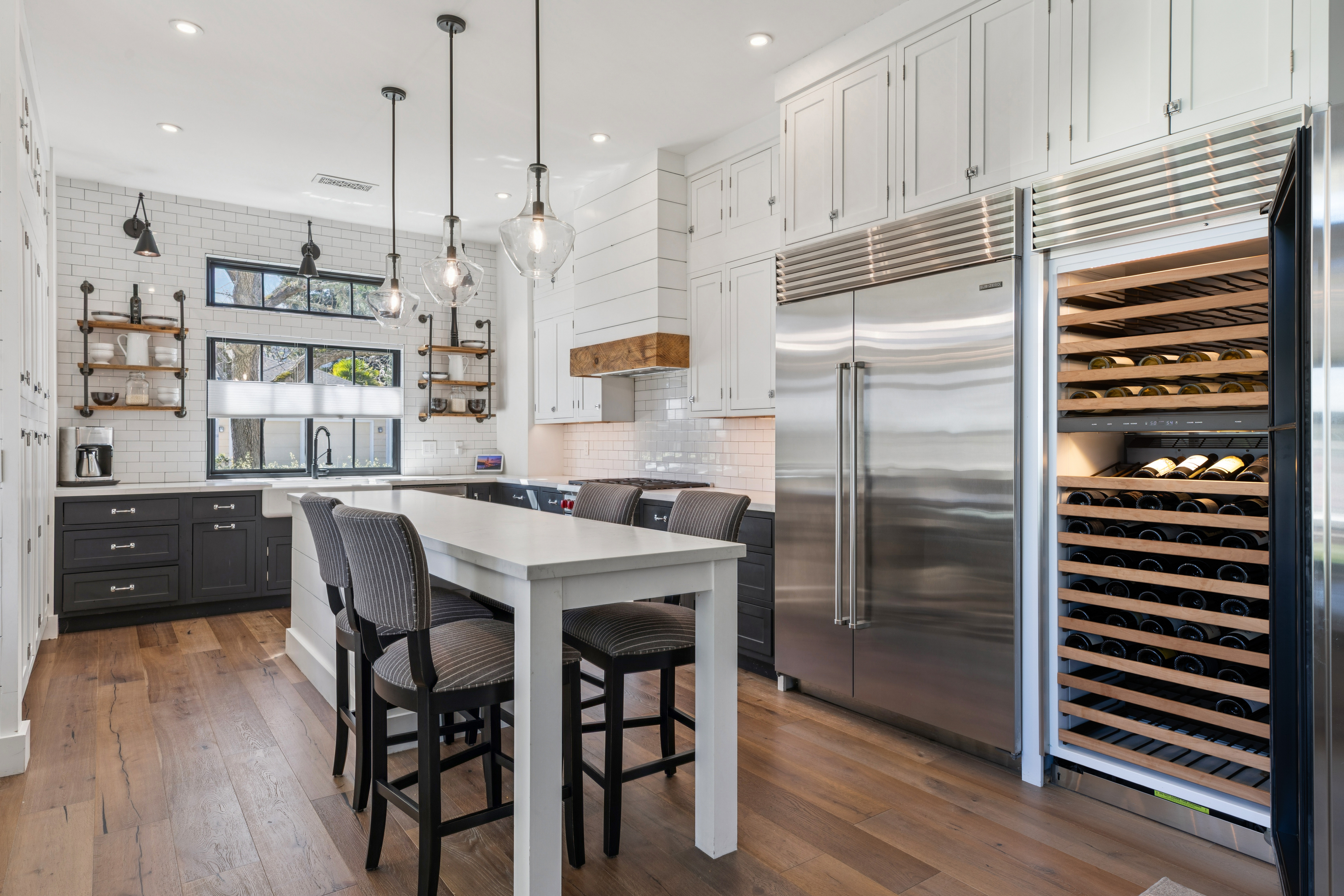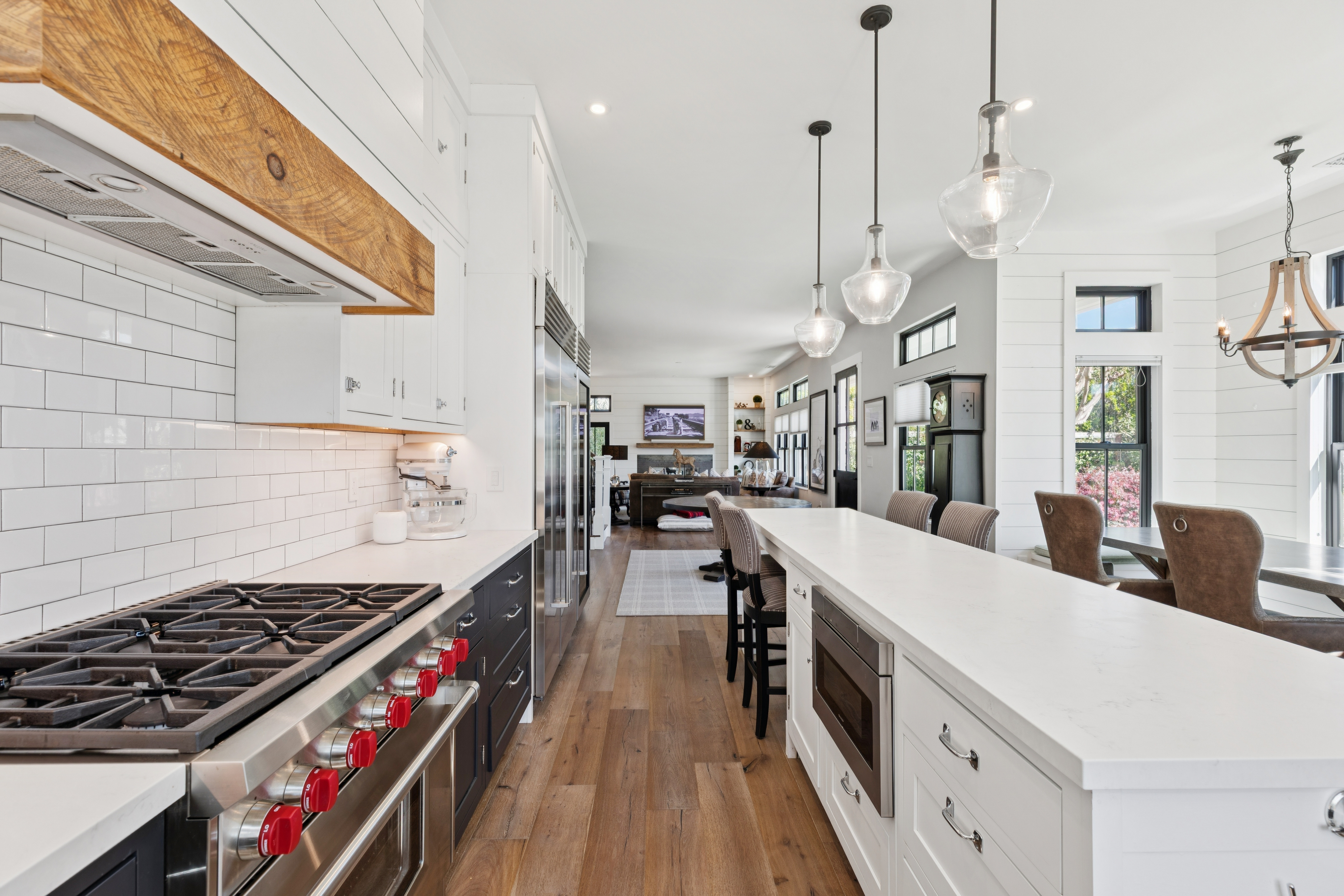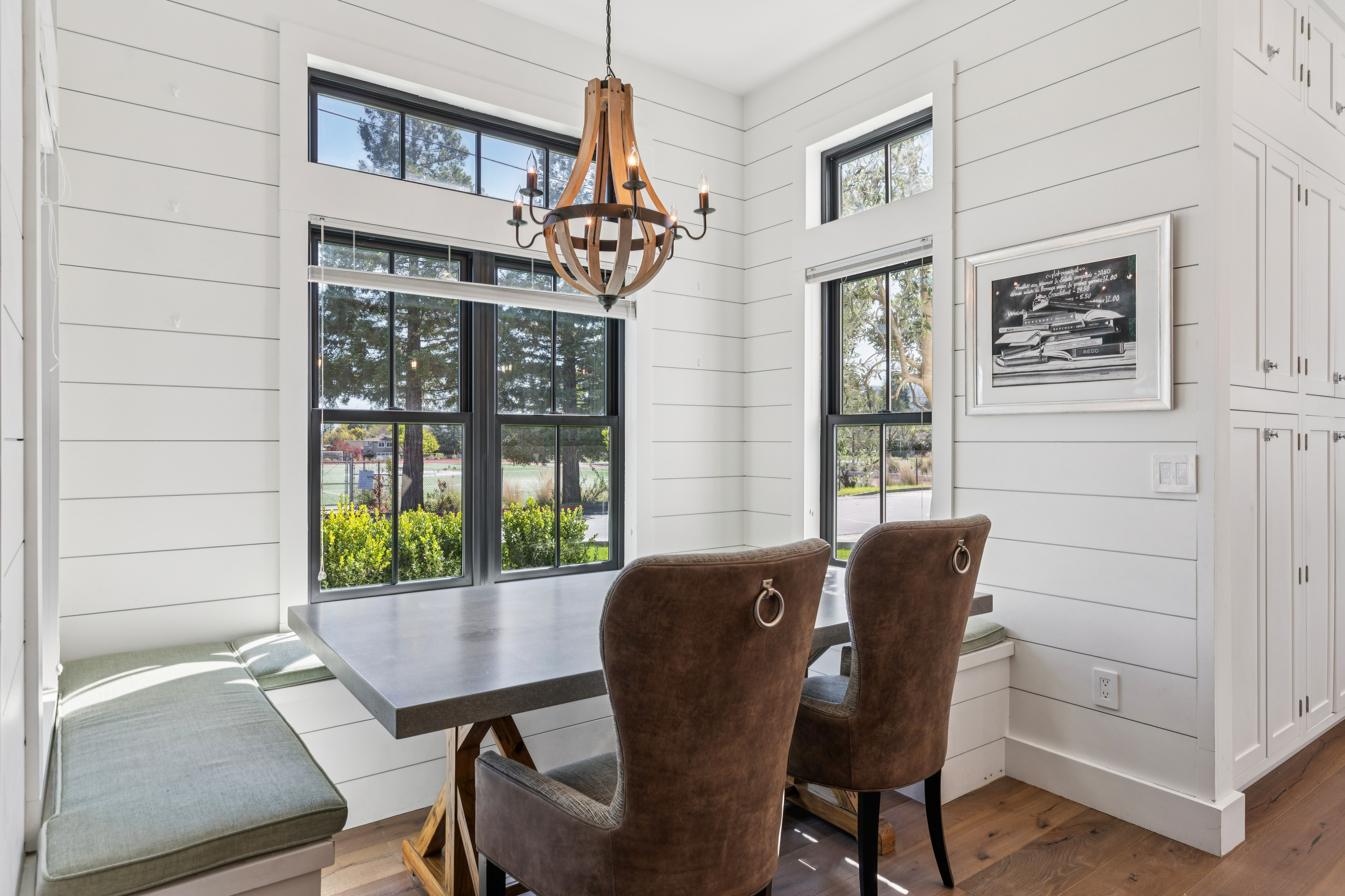 Light-filled and beautifully remodeled, this modern farmhouse is ideally located on St Helena's sought-after west side and features a desirable open-concept floorplan. Thoughtful architectural details are showcased throughout, including hardwood floors, elevated and vaulted ceilings, shiplap walls, transom windows, and board-and-batten detailing. Chef's kitchen is designed for both style and function, offering a center island with counter seating, Wolf six-burner range, Sub-Zero refrigerator and wine cooler, farmhouse sink, walk-in pantry, and charming dining alcove with banquette seating. Spacious family room centers around a gas log fireplace and opens seamlessly to the outdoor entertaining area with seating and dining areas, water feature, fruit trees and garden beds. First floor bedroom with ensuite bath features French doors that provide direct access to outdoor living spaces. Primary ensuite offers vaulted ceilings, dual walk-in closets, and a spa-inspired bathroom complete with dual-sink vanity, slipper tub, and walk-in shower. Ideally situated just moments from the shops, restaurants, and tasting rooms along Main Street St Helena, this home blends comfort, style, and convenience in the heart of Napa Valley.