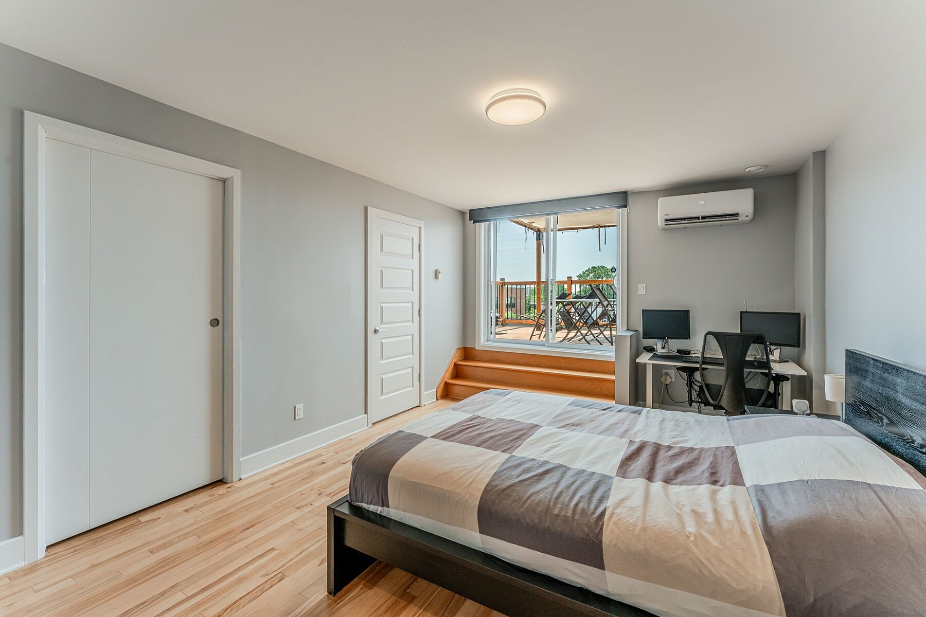 Stunning apartment for rent in Little Italy, within the Rosemont/La Petite-Patrie neighbourhood. Featuring three bedrooms, two full bathrooms, and a private terrace. The living space is airy and bright, offering a pleasant and welcoming atmosphere. Large windows let in abundant natural light, creating a warm and inviting ambiance in every room. The layout is designed to maximize space. Includes an outdoor parking spot with charging station. Enjoy a unique living environment in one of Montréal's most vibrant and food-loving neighbourhoods. Jean-Talon Market is just steps away.
