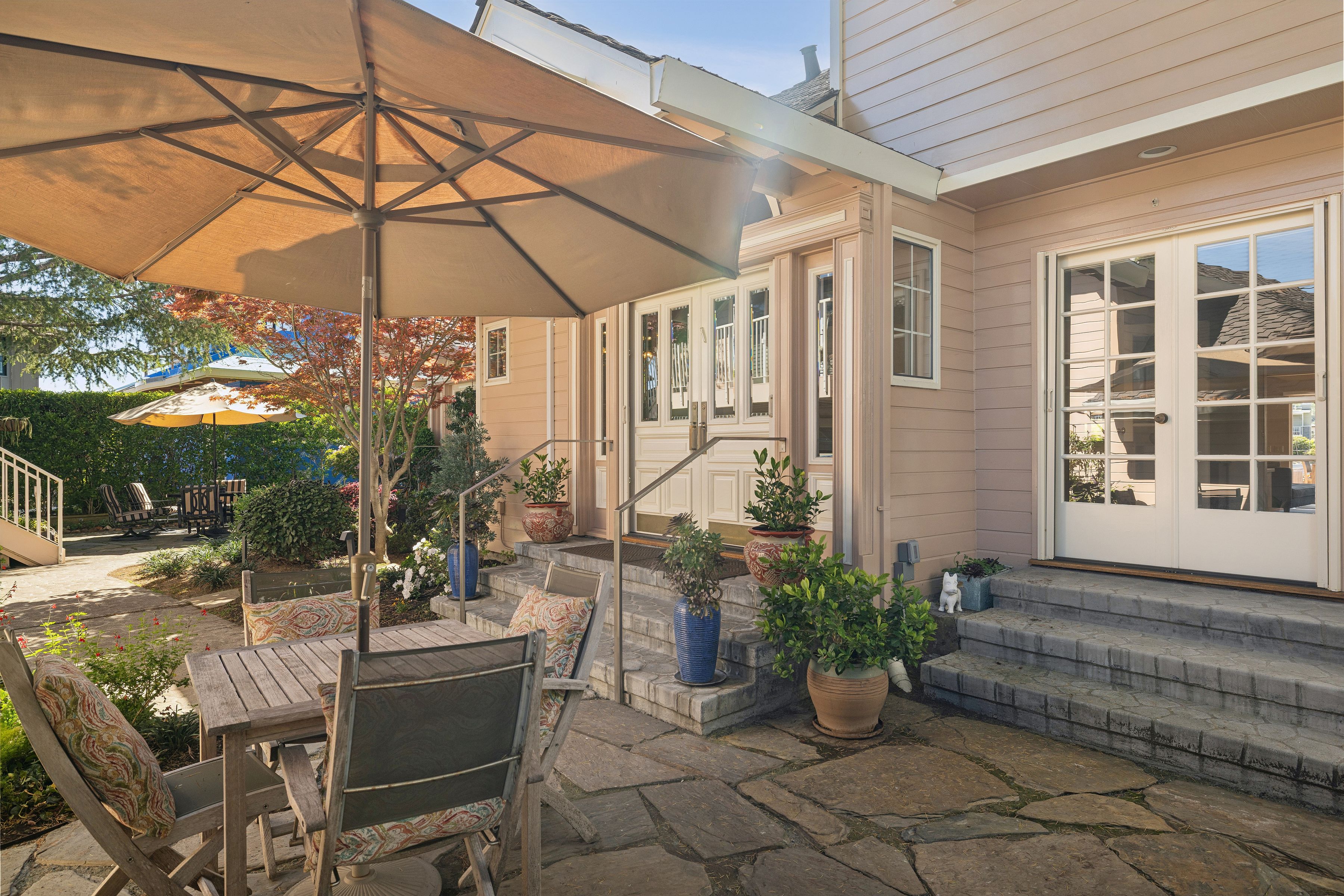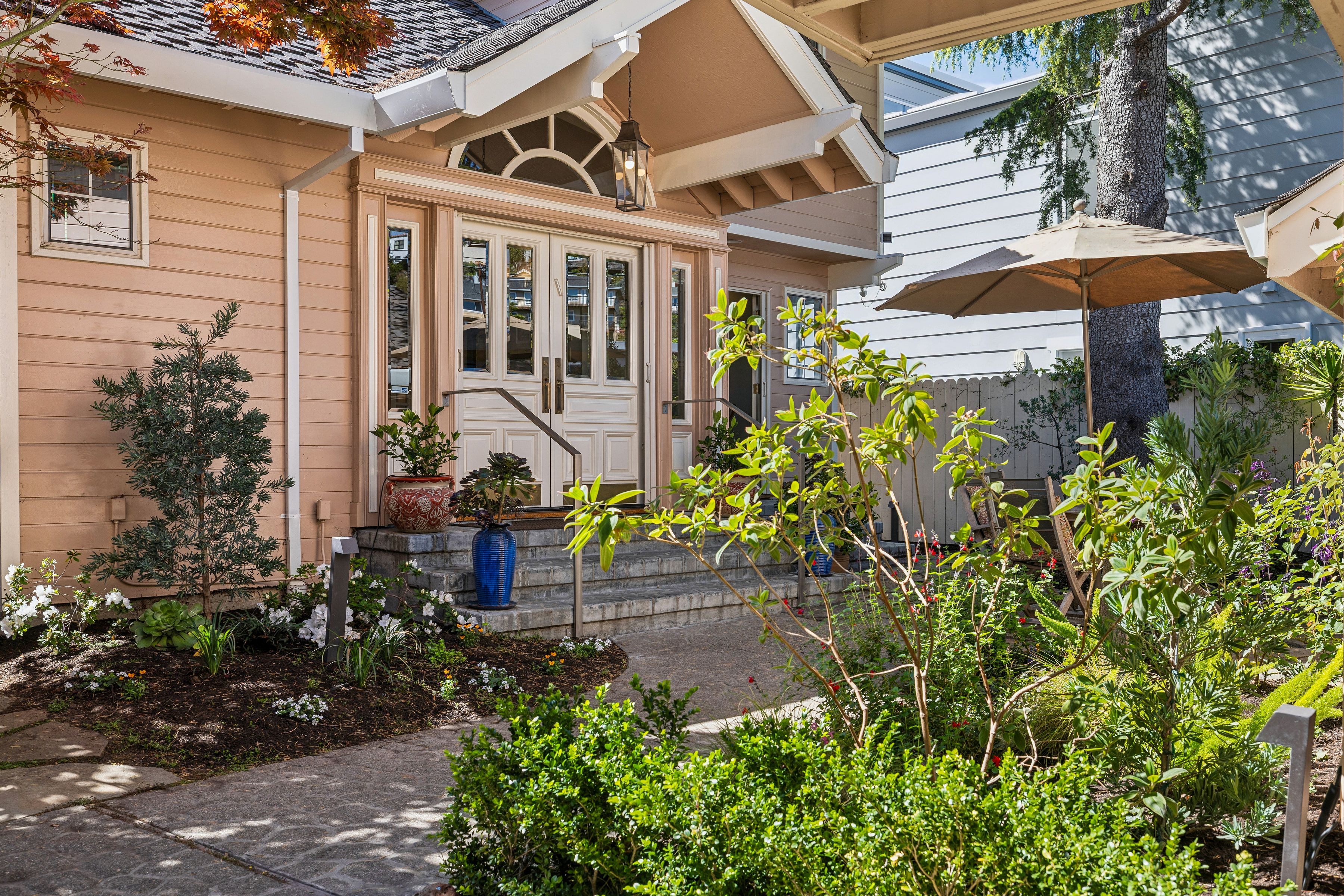 Discover a rare canal-side retreat where modern California living meets timeless design. This beautifully updated three-bedroom, two-and-a-half-bath home combines comfort, serenity, and a coveted waterfront lifestyle, sharing its setting with only one other unit. Enjoy effortless living and entertaining in the fully remodeled chef's kitchen featuring sleek cabinetry, a gas range, handcrafted Heath tiles, Caesarstone countertops, and a travertine backsplash. The open-concept layout flows into a gracious dining and living area overlooking the deck and tranquil water views. Parquet floors and a gas fireplace add warmth and charm, while a separate, private-entrance den opens through French doors to the front garden, perfect for a third bedroom, home office or reading retreat. The expansive primary suite offers breathtaking Mt. Tam views, a second fireplace, seating area, ensuite bath, and a private balcony spanning the full length of the home. A charming guest bedroom overlooks the landscaped front garden. Wood flooring, handsome built-ins, updated lighting, and Section One clearance make this home move-in ready. Enter through a gated front courtyard oasis ideal for morning coffee or afternoon conversation, then transition out back to a newly built waterside deck designed for al fresco dining or sunset relaxation. Watch kayakers glide by and enjoy glimpses of otters, seals, herons, and owls. Boating enthusiasts will appreciate the fully refurbished private dock with a 32'x15' boat slip and a 50' side tie are features offering direct water access right from your backyard. Shared amenities include a private carriage house above the two-car garage ideal for guests or creative pursuits, a brand-new roof, and beautifully landscaped gardens with irrigation and a water fountain. Perfect as a peaceful year-round home or a stylish waterfront escape, this unique property embodies indoor-outdoor California living at its finest. An extraordinary opportunity awaits: the neighboring residence at 26 Mooring Road,the only other home in this intimate two-unit complex is also available. Own both to create a stunning waterfront compound, guest residence, or multi-generational retreat, or combine them into one expansive home. Conveniently located near Montecito Shopping Center, trails, and the natural beauty of West Marin, with easy access to downtown San Rafael, Highway 101, San Francisco, SFO, Wine Country, the SMART Train, and ferry service for effortless commuting.