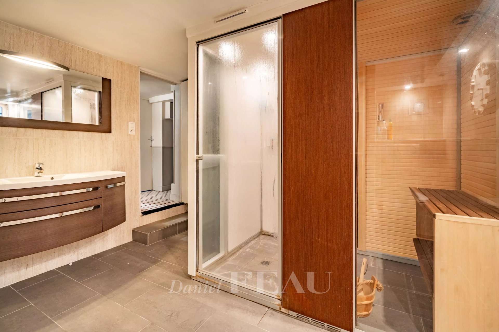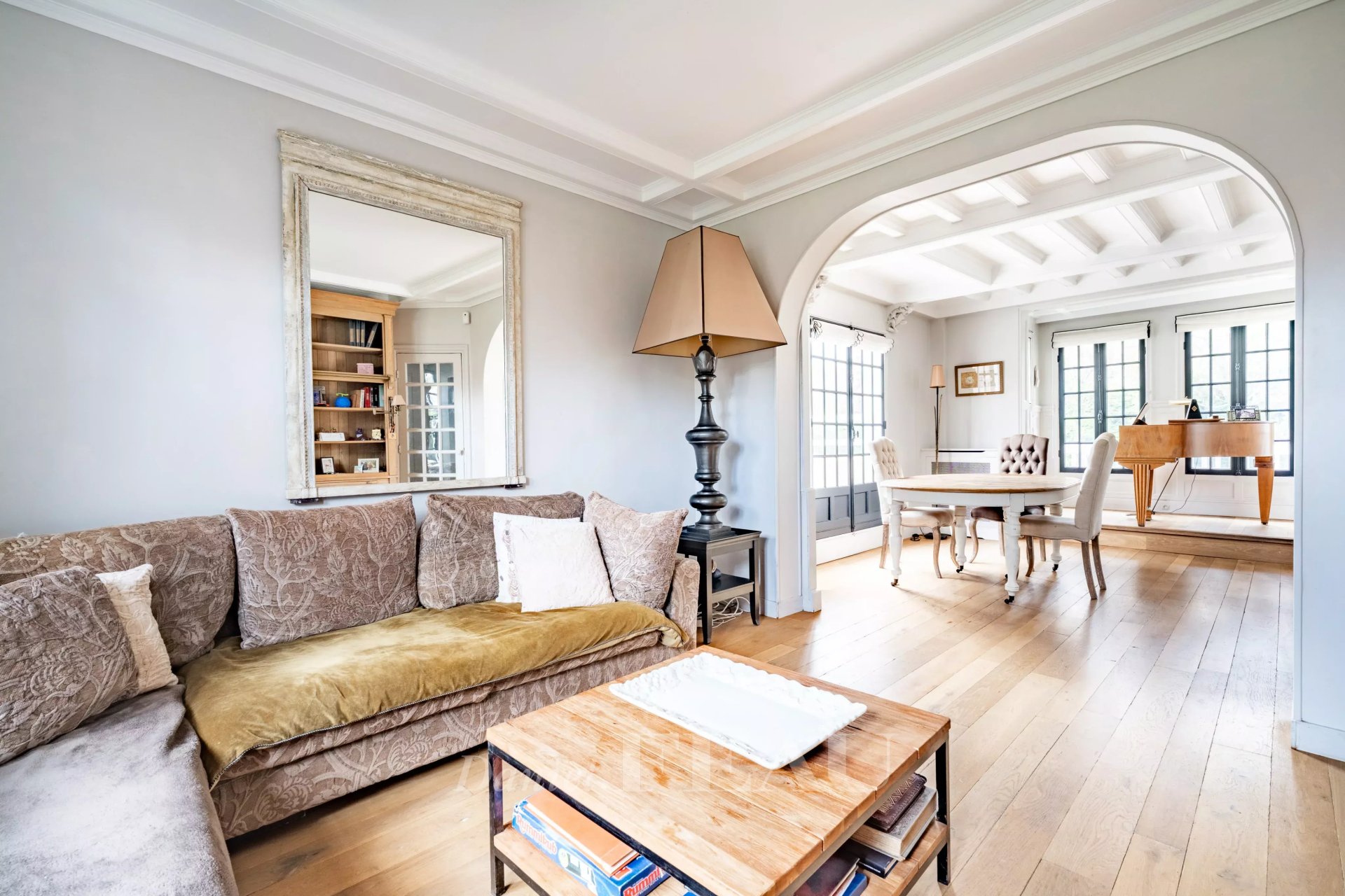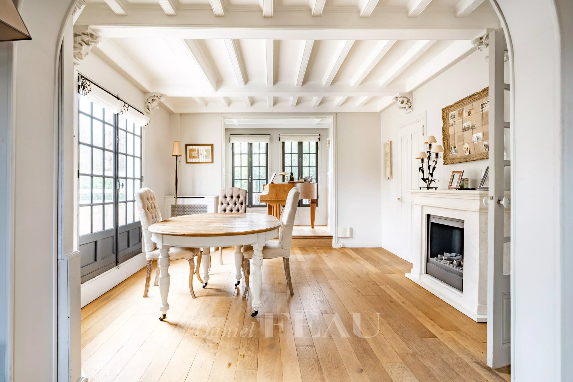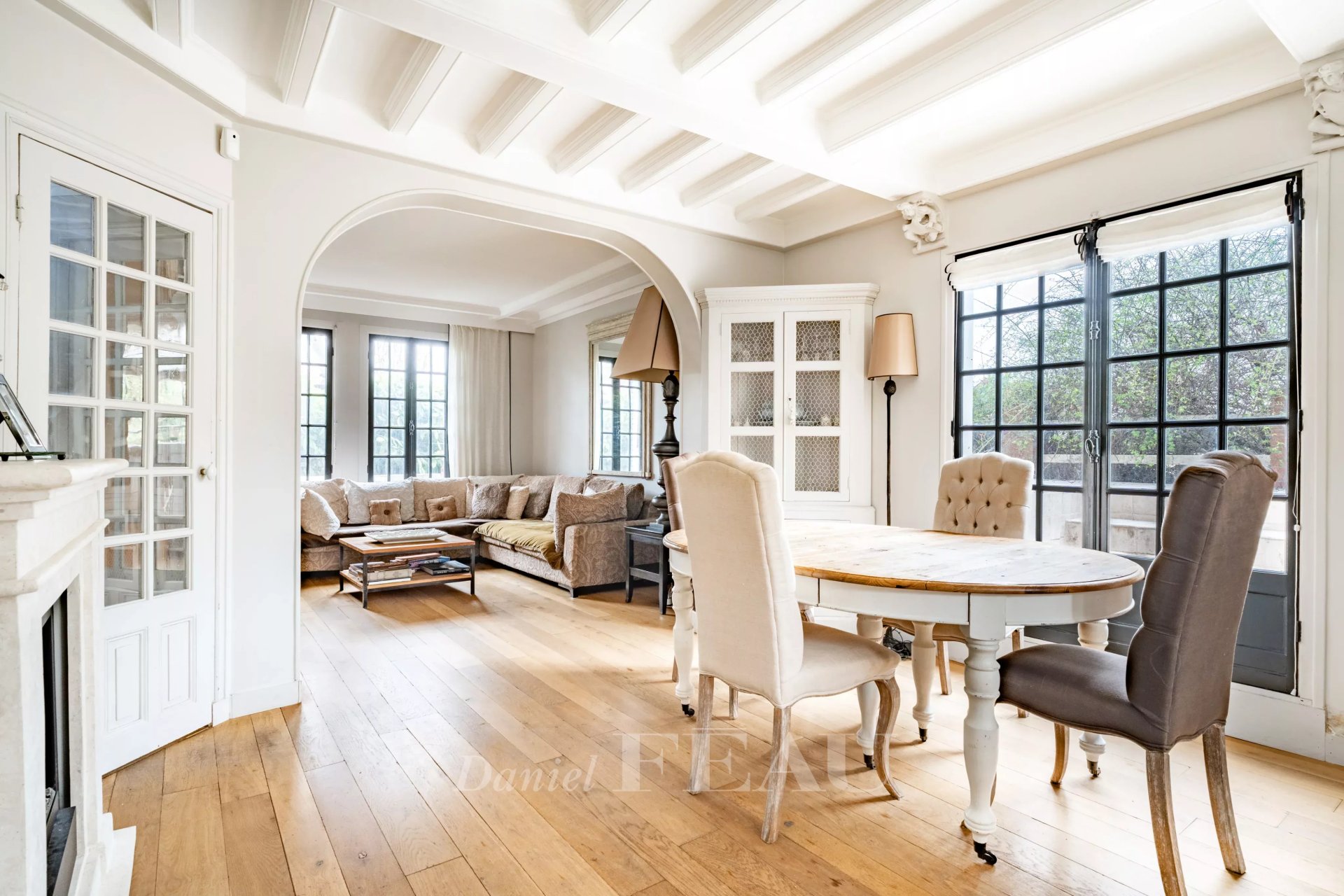 The property is complemented by a glass-roofed annex with a spa, a garage, and a landscaped garden, giving this home a resort-like atmosphere rarely found so close to Paris.