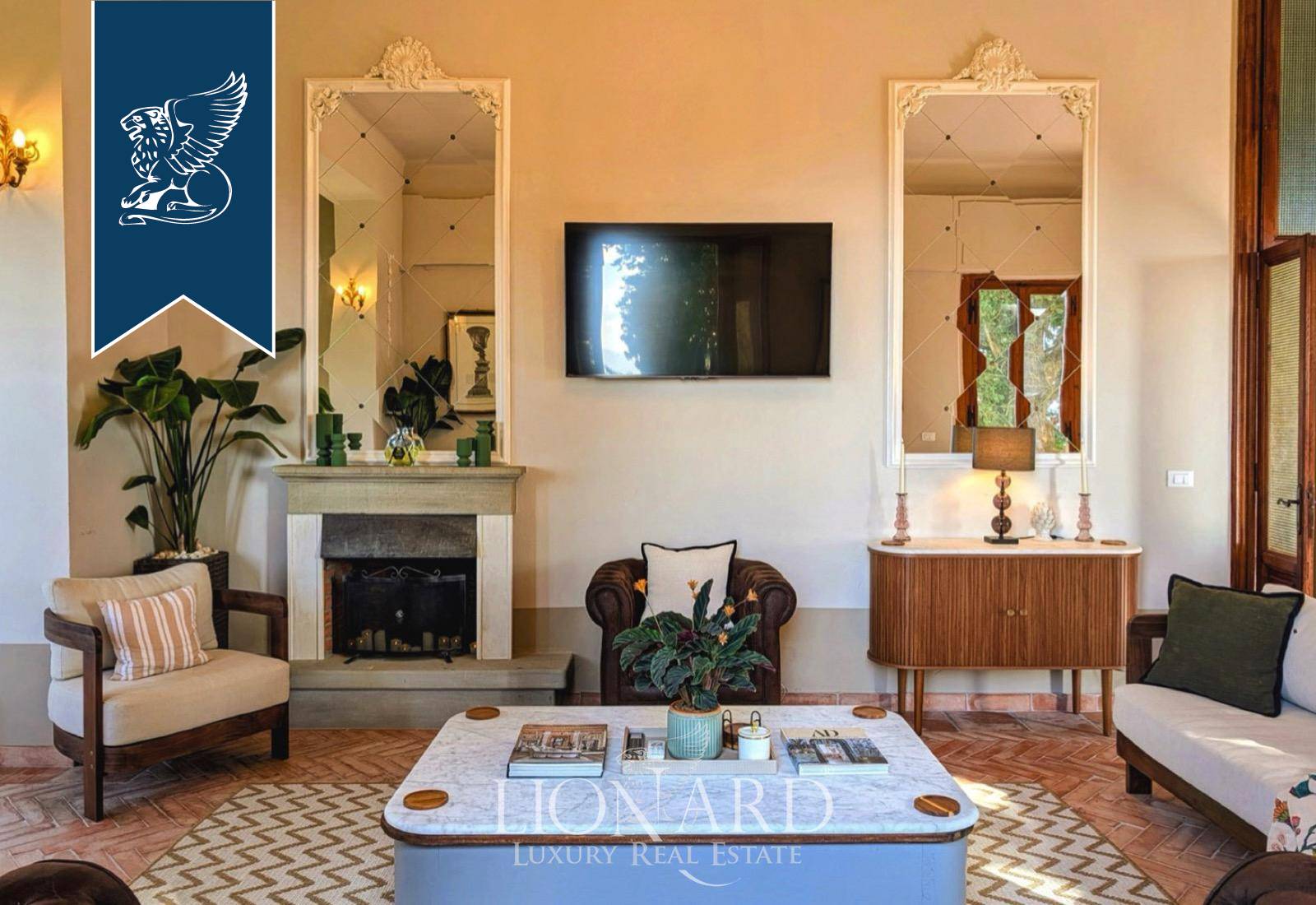 Located along the historic Strada dei Setteponti in Tuscany, this 991-sqm Art Nouveau villa offers panoramic views of the Chianti valley, olive groves, and medieval villages. Recently fully restored, it combines the privacy of a grand country estate with proximity to renowned wineries and cultural centres.The main floor, accessed through a grand staircase, features a lounge, a dining room, a glazed veranda, and a reading area. A big kitchen with a terrace, a games room, a fitness area, a library, and an Art Deco-style cinema enhance leisure and entertainment.The upper level hosts two master suites with sitting rooms, wardrobes, en-suite bathrooms, and private terraces, plus three guest rooms, bathrooms, and a functional laundry. A tower-accessed panoramic pool serves as the villa’s signature feature.The lower level includes a tasting room in the cellar, a service flat, and ancillary spaces, while the 8,000 sqm grounds comprise 3,750 sqm of gardens with terraces and pool, plus 4,000 sqm of olive groves. Advanced systems, a three-car garage, and terraces complete this prestigious Tuscan estate.Ref: 15633https://www.lionard.com/art-nouveau-villa-pool-olive-grove-ancient-cassia-road.html