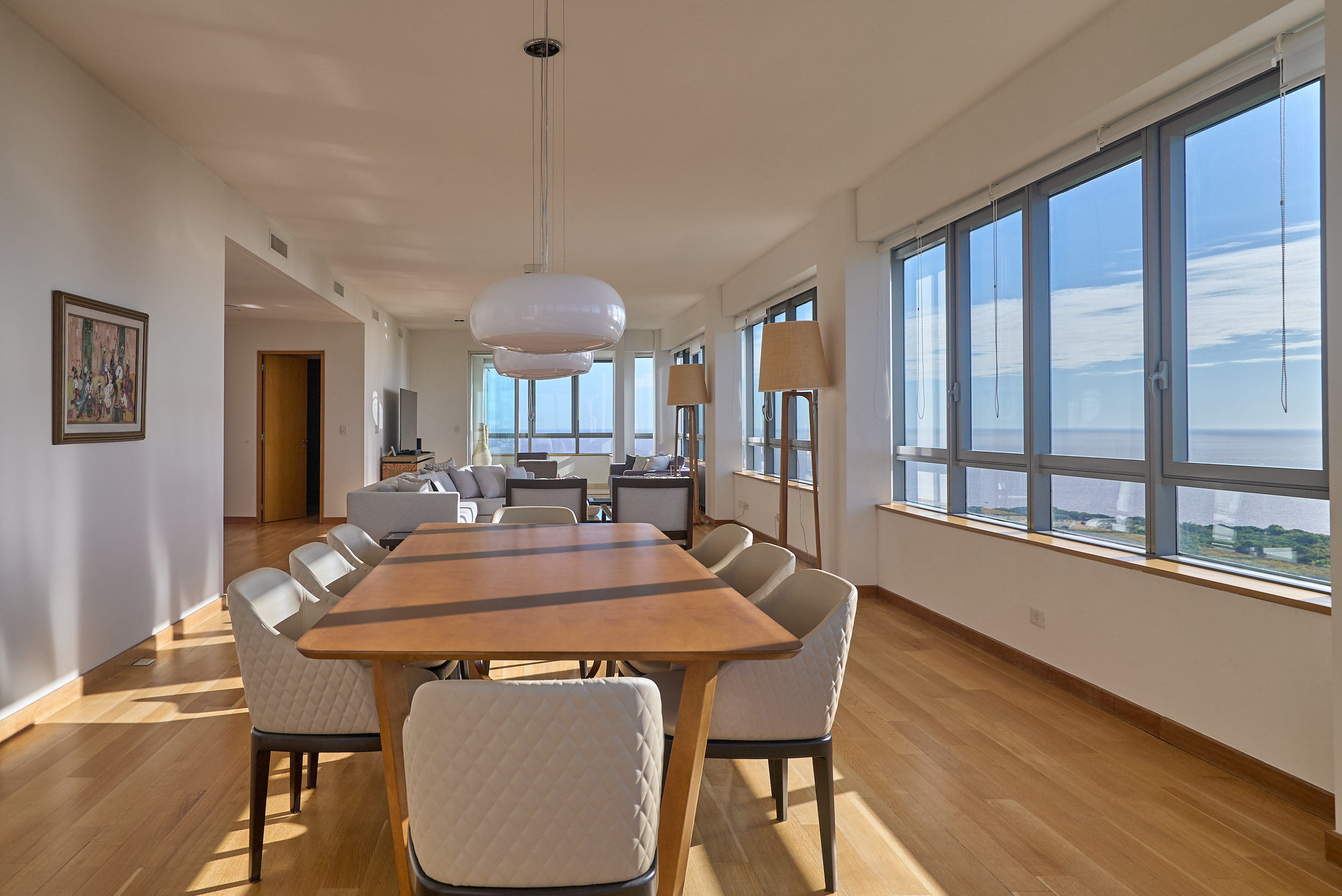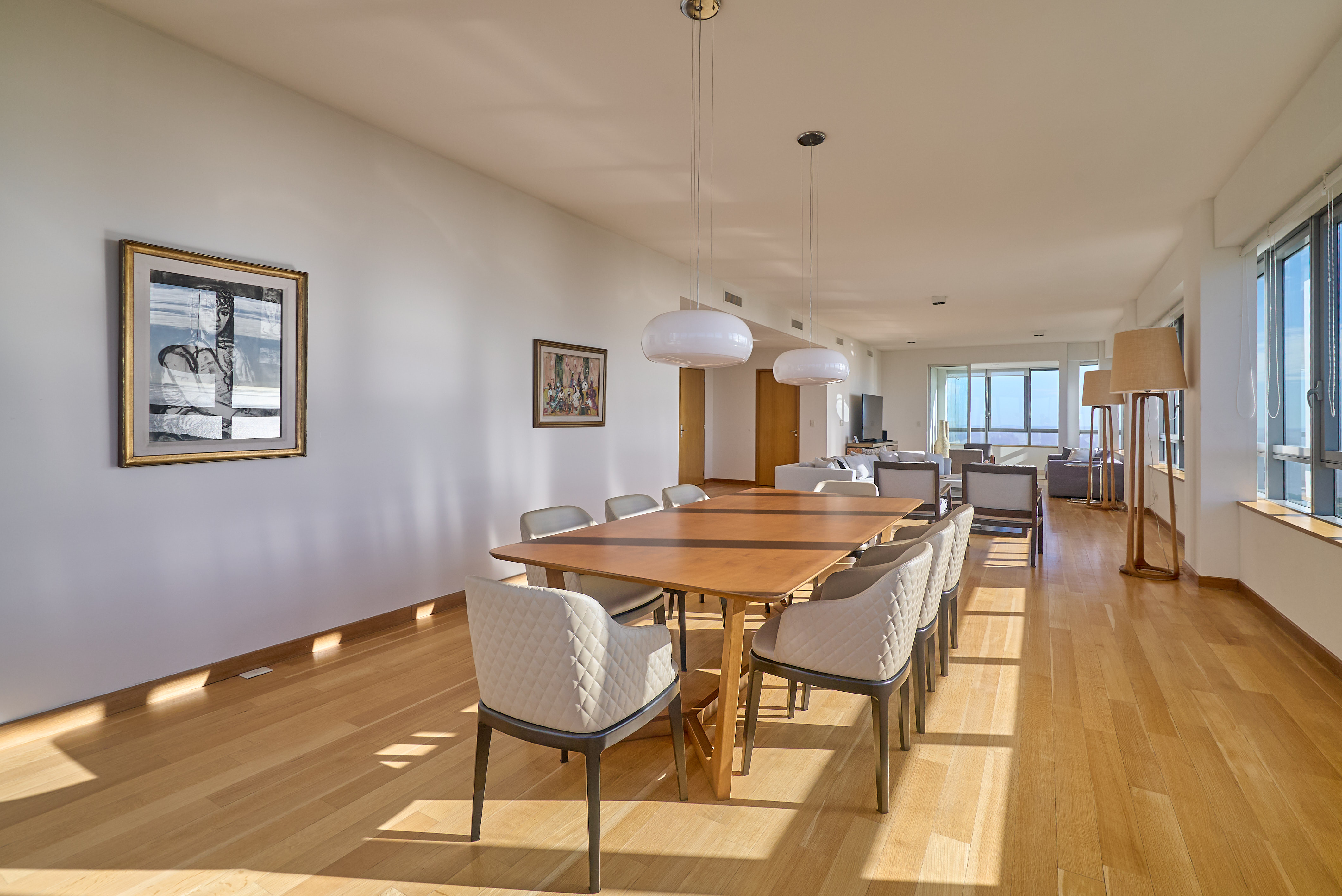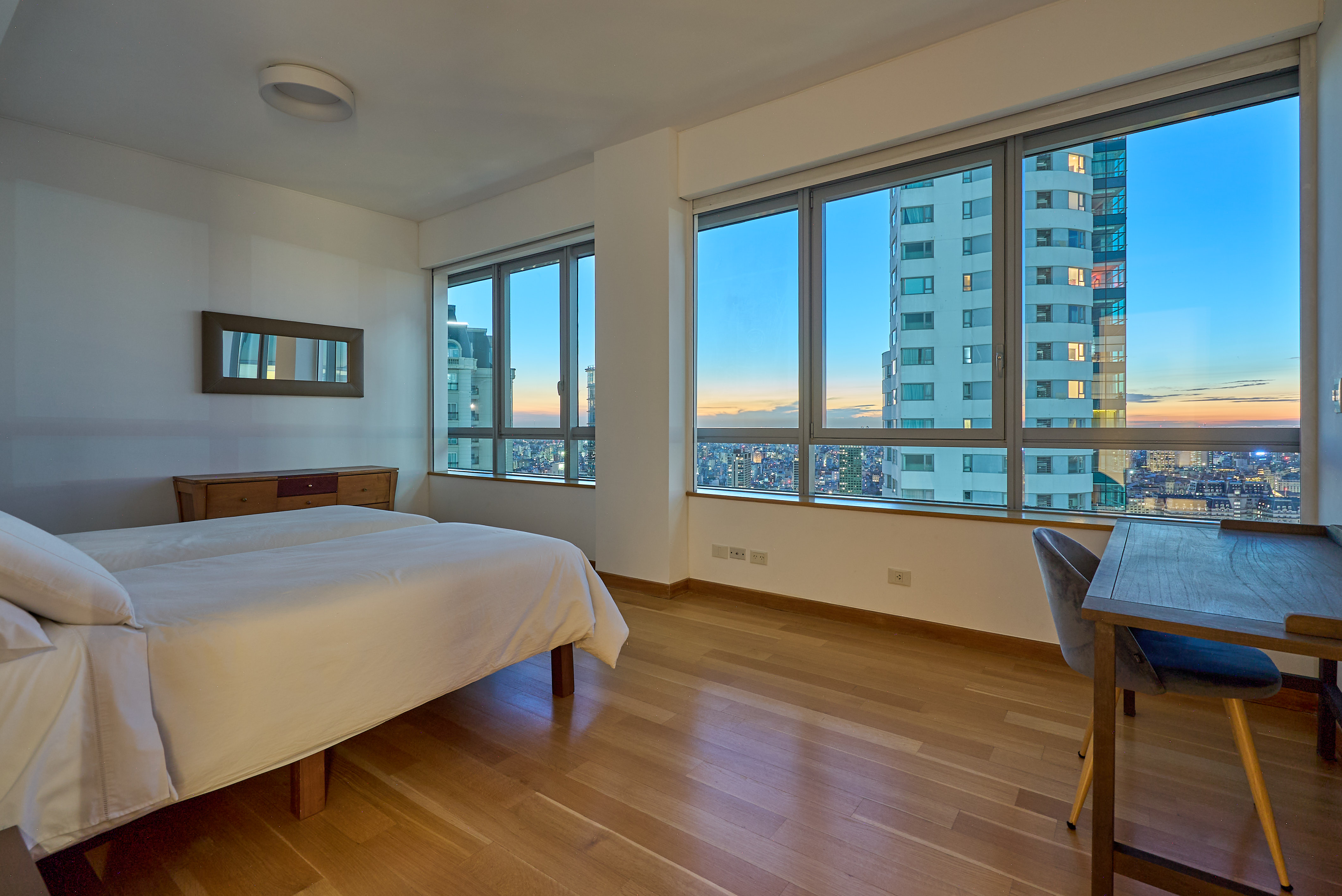 This high-end 320 sqm residence offers a private landing with dual elevator access. Spacious and bright living-dining area with large windows, abundant natural light, and spectacular open views.