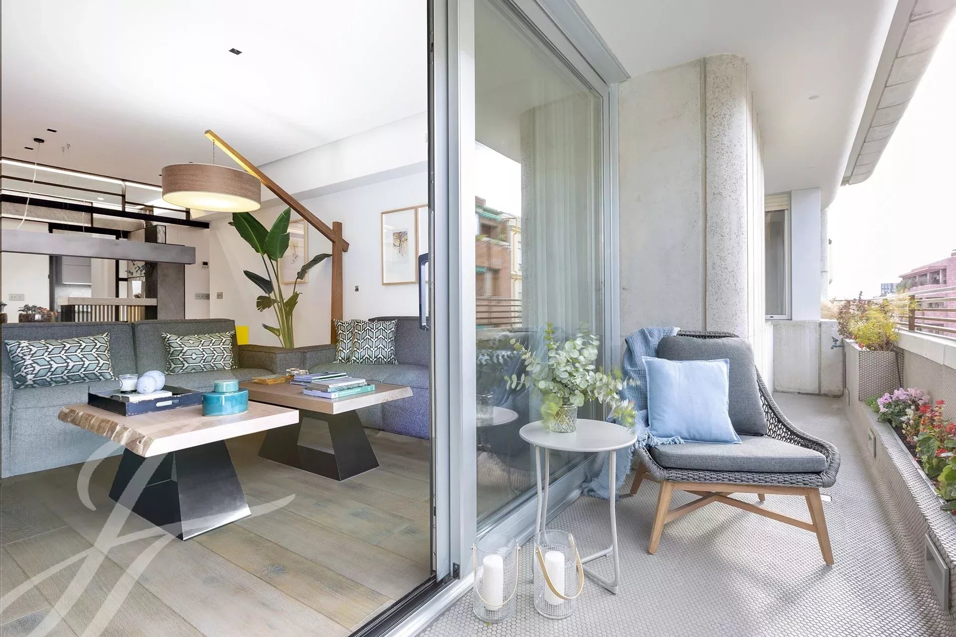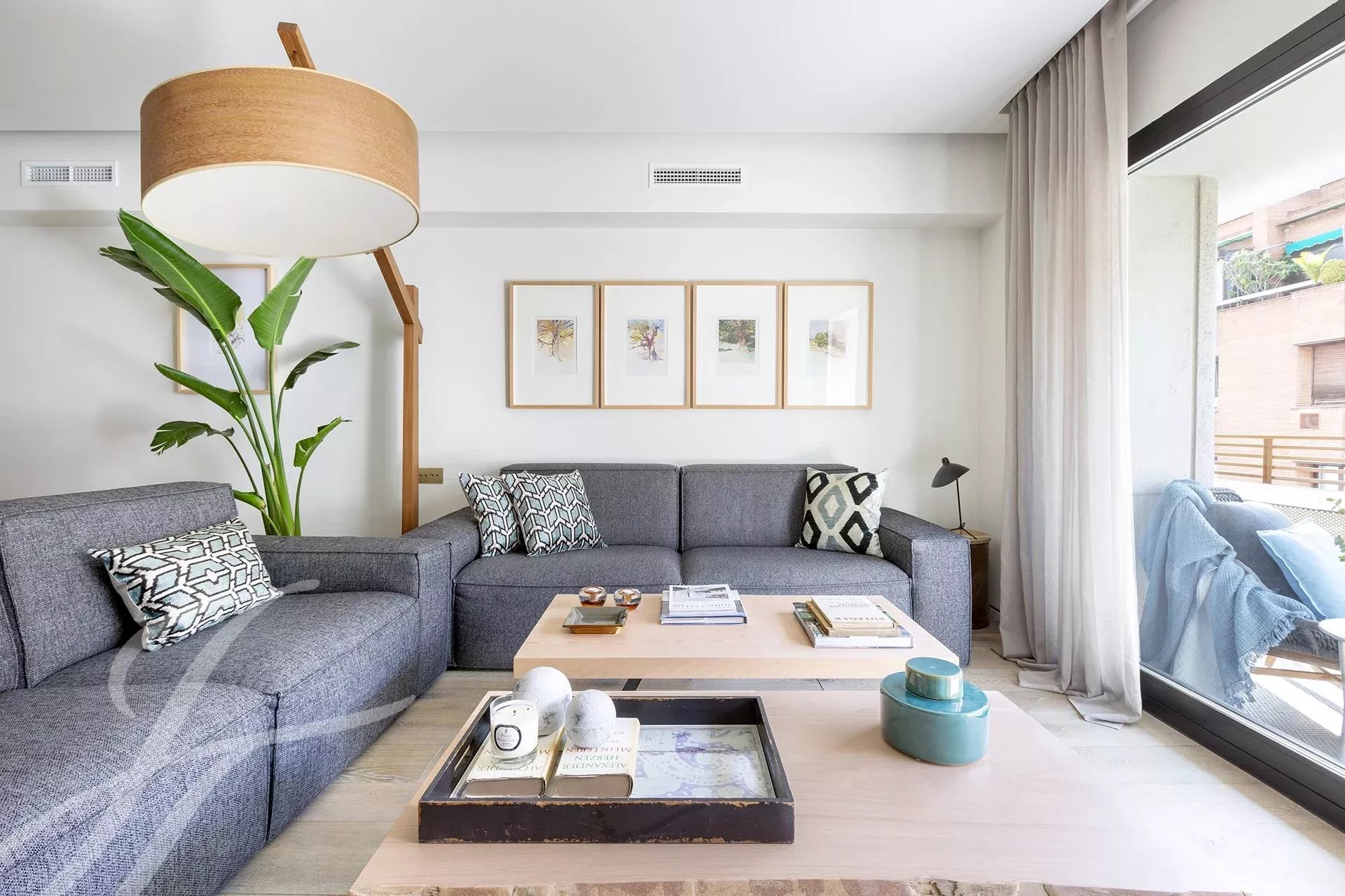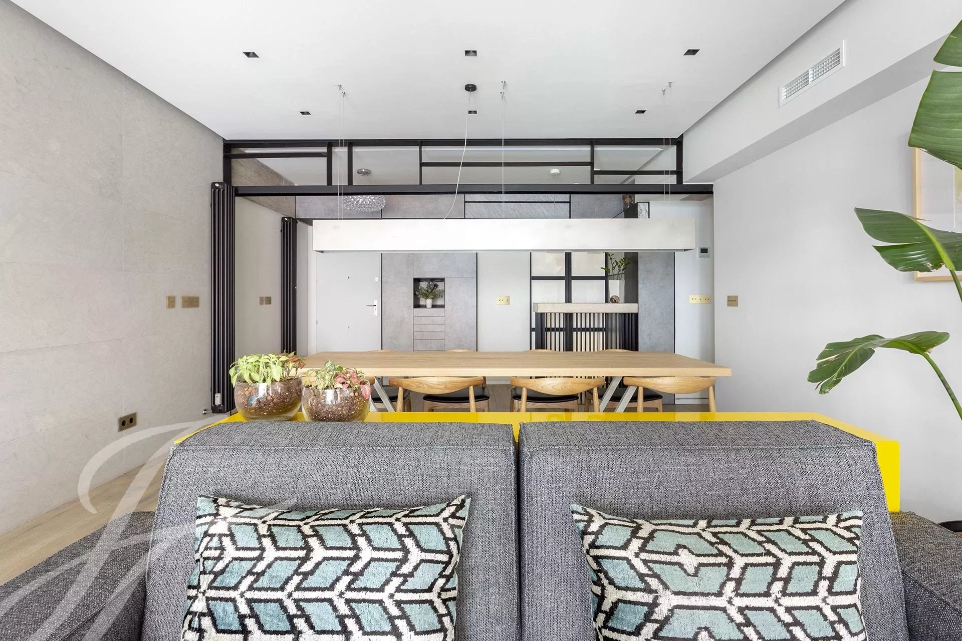 Beautiful apartment recently renovated with exquisite taste and modern style by the architecture studio Amodal where every detail has been taken care of with meticulous attention. It is necessary to emphasize the excellent project of illumination that, together with the noble materials and the well chosen furniture, provides a contemporary and cosy atmosphere.Located on a fifth floor, this property enjoys a magnificent natural light thanks to its large windows and its terrace overlooking the street.It has a large master bedroom with a street window, walk-in closet and a beautiful large bathroom with separate bathtub and shower. Another bedroom with two folding beds and a large study table. It also has a bedroom with built-in wardrobes and another one for guests that could be used as an office, playroom, etc.. These bedrooms share a beautifully designed bathroom.Next to the kitchen, fully equipped with high quality appliances, we find a maid bedroom with its own bathroom and independent entrance door.The large living/dining room can be separated by metal sliding doors and has access to the terrace facing west.The apartment has ducted air conditioning, radiator heating (with individual meters) and concierge service.Located in Monte Esquinza Street, in the heart of the Almagro neighbourhood, this is an exceptional flat for your family to enjoy the best location in Madrid with all the amenities.For rent FURNISHED