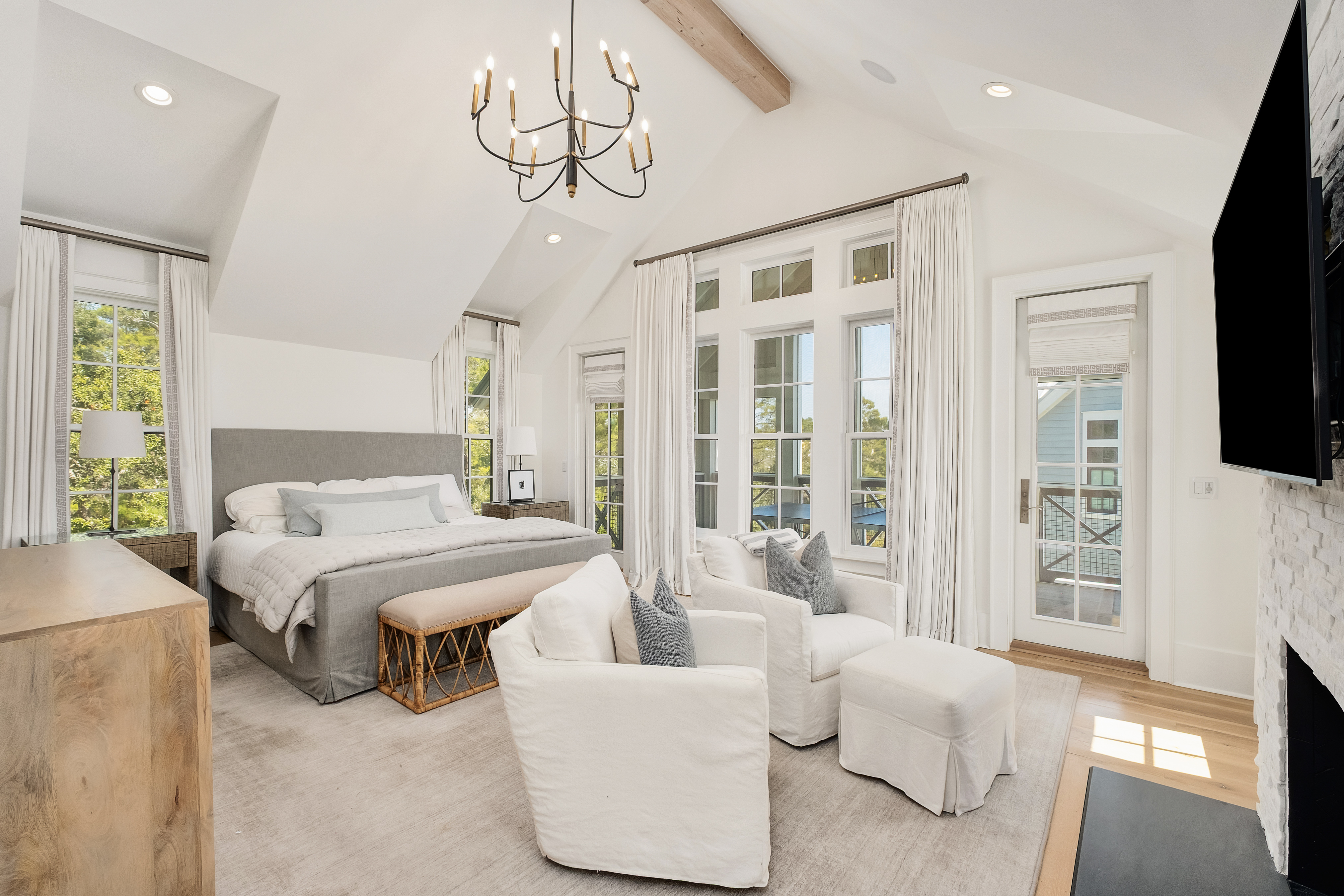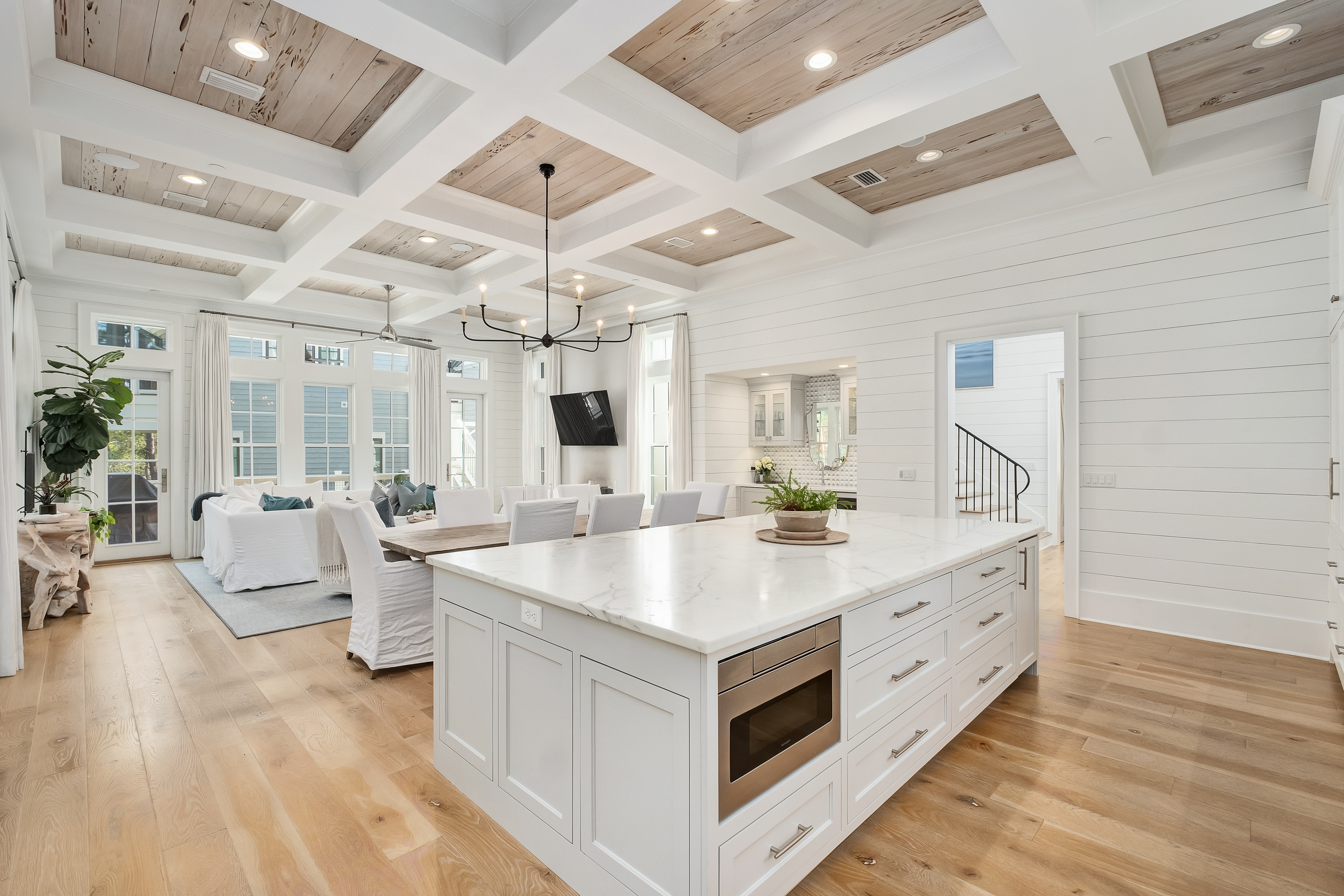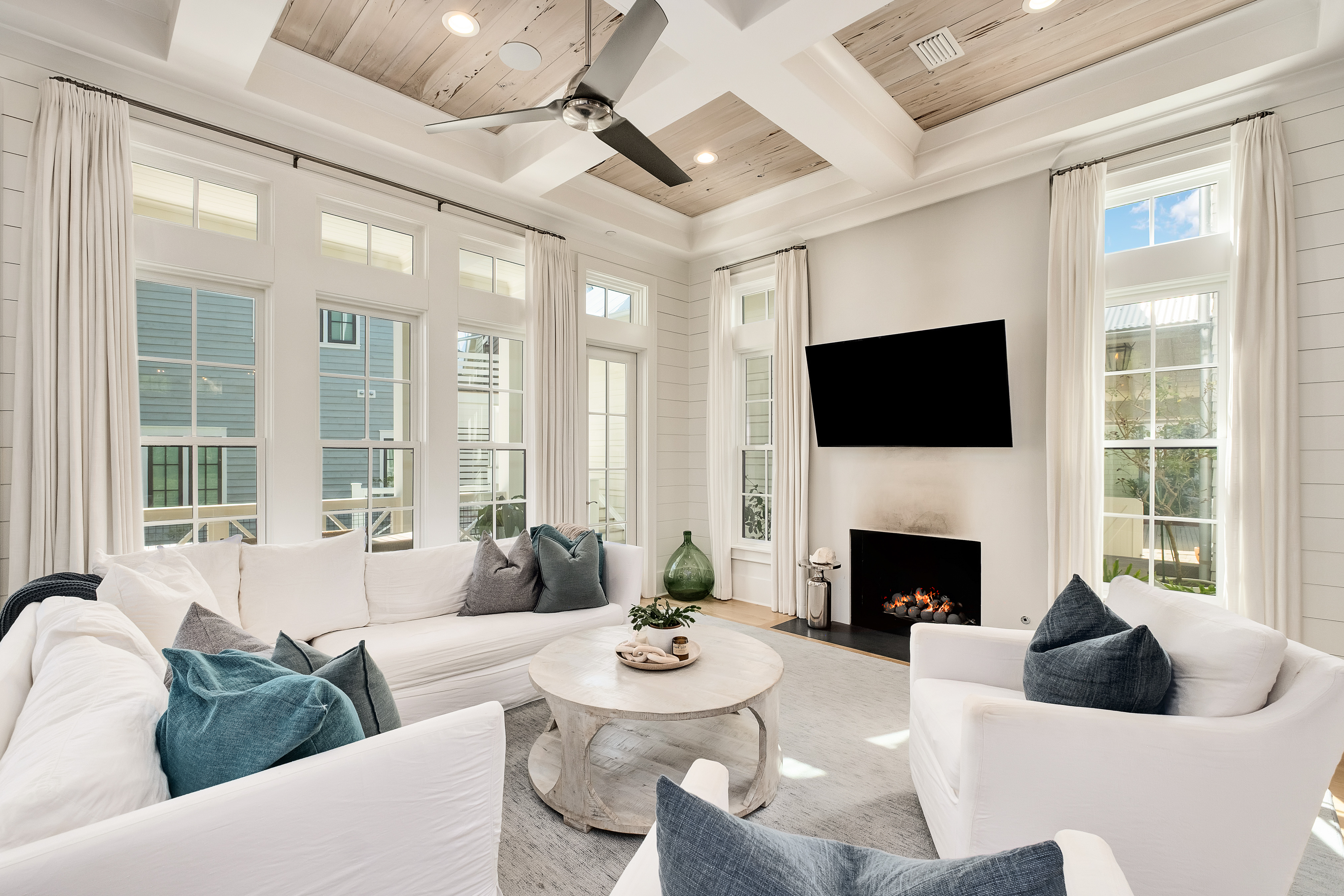 If you’ve been looking for the right home in Draper Lake Coastal Village, this home offers a compelling opportunity within the gated enclave. Designed by acclaimed architect Geoff Chick and built by Chris Clark, this 3,521-sq.-ft. residence offers four bedrooms, four-and-a-half baths, and the kind of approachable scale and thoughtful design that works equally well as a full-time coastal home or a second home you never want to leave. Walk through the front door, and a two-story foyer with floor-to-ceiling glass fills the entry with natural light. Hardwood floors lead into an open living area where 12-foot coffered ceilings with pecky cypress insets frame the space. The combined volume of the kitchen, dining, and living areas leaves a lasting impression. A marble-topped island anchors the kitchen with a professional-grade appliance package, while a fireplace brings balance to the living area. A first-floor guest suite, along with a powder bath, laundry, and two-car garage, completes the main level. Upstairs, vaulted ceilings define the primary suite, which features a soaking tub, walk-in shower, double vanity, and generous closets. A second guest suite, additional living area, and screened porch provide flexible space to unwind or work. Thoughtfully placed laundry on both the main and second floors for effortless day to day living. A detached carriage house with private exterior access offers a self-contained space with a kitchenette and ensuite bath, ideal for a guest suite, workout room or office space. Outside, a private heated pool and covered porches create an easy indoor-outdoor connection. Draper Lake Coastal Village is a gated community on Scenic Highway 30A inspired by the great camps of the Adirondacks and Lake Champlain. Designed by the planners behind Seaside, Florida, Rosemary Beach, and Alys Beach, the neighborhood is set along a rare coastal dune lake and offers pools, boathouses, trails, and a private beach cabana, all just moments from dining, shopping, and the 30A bike path.