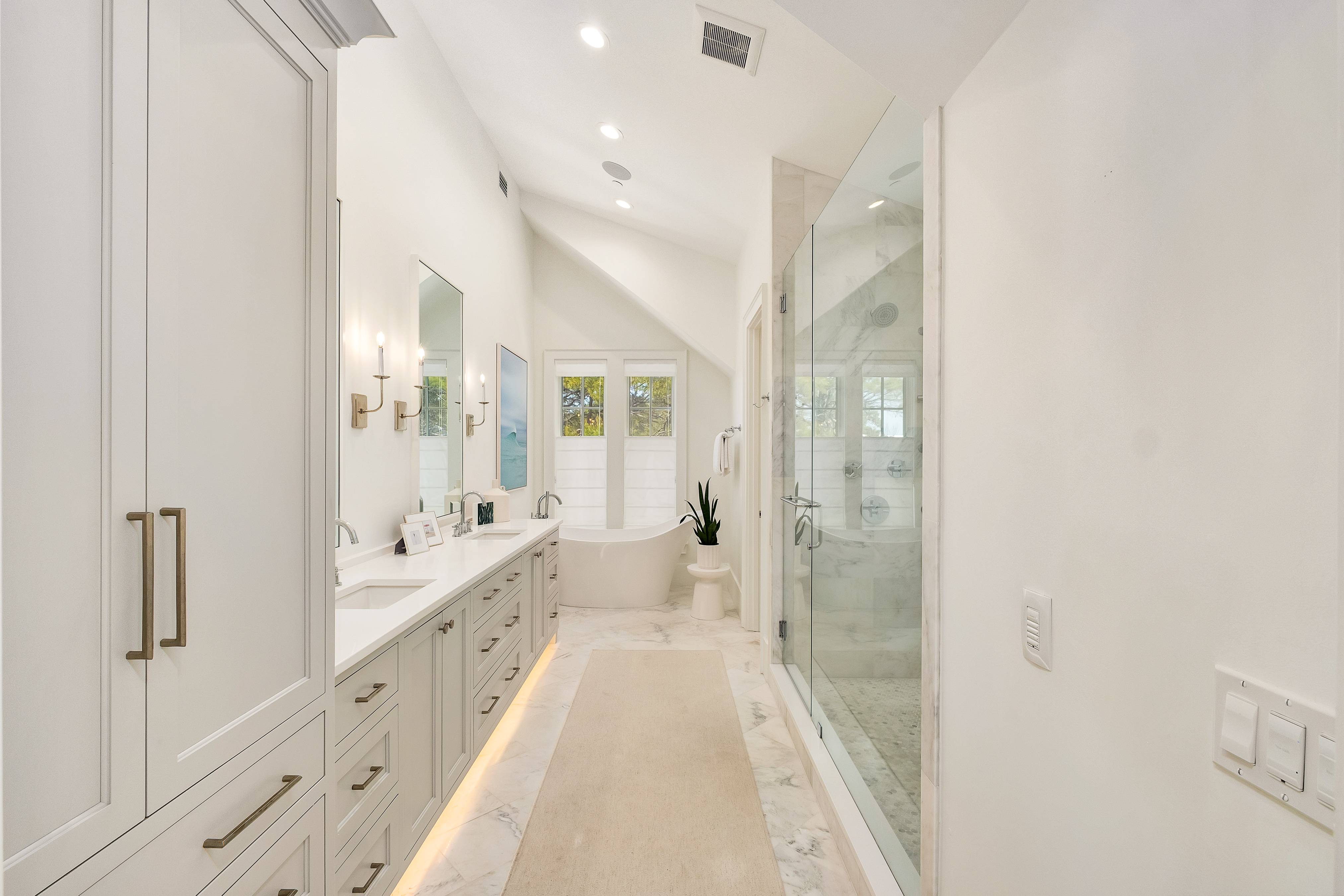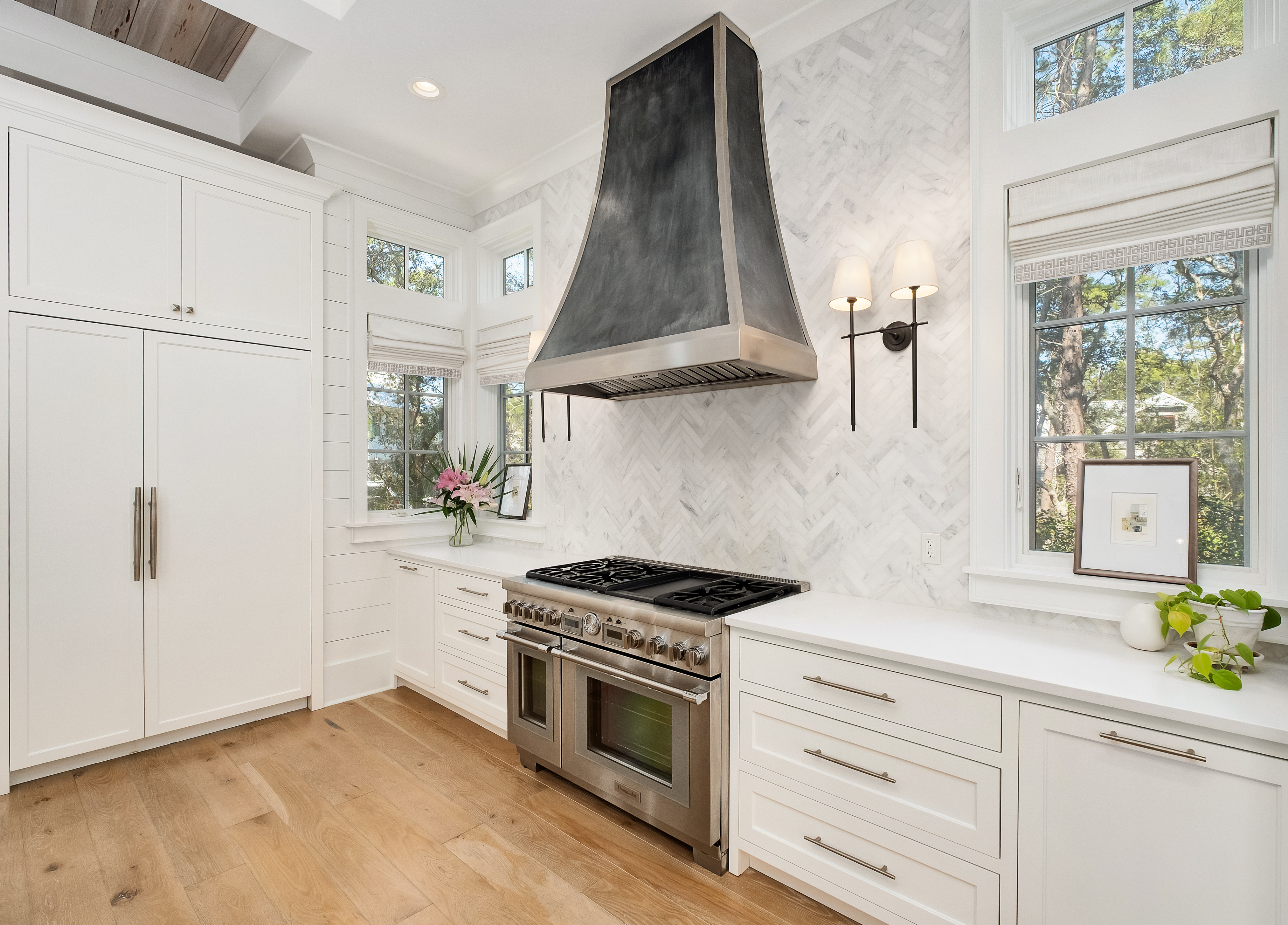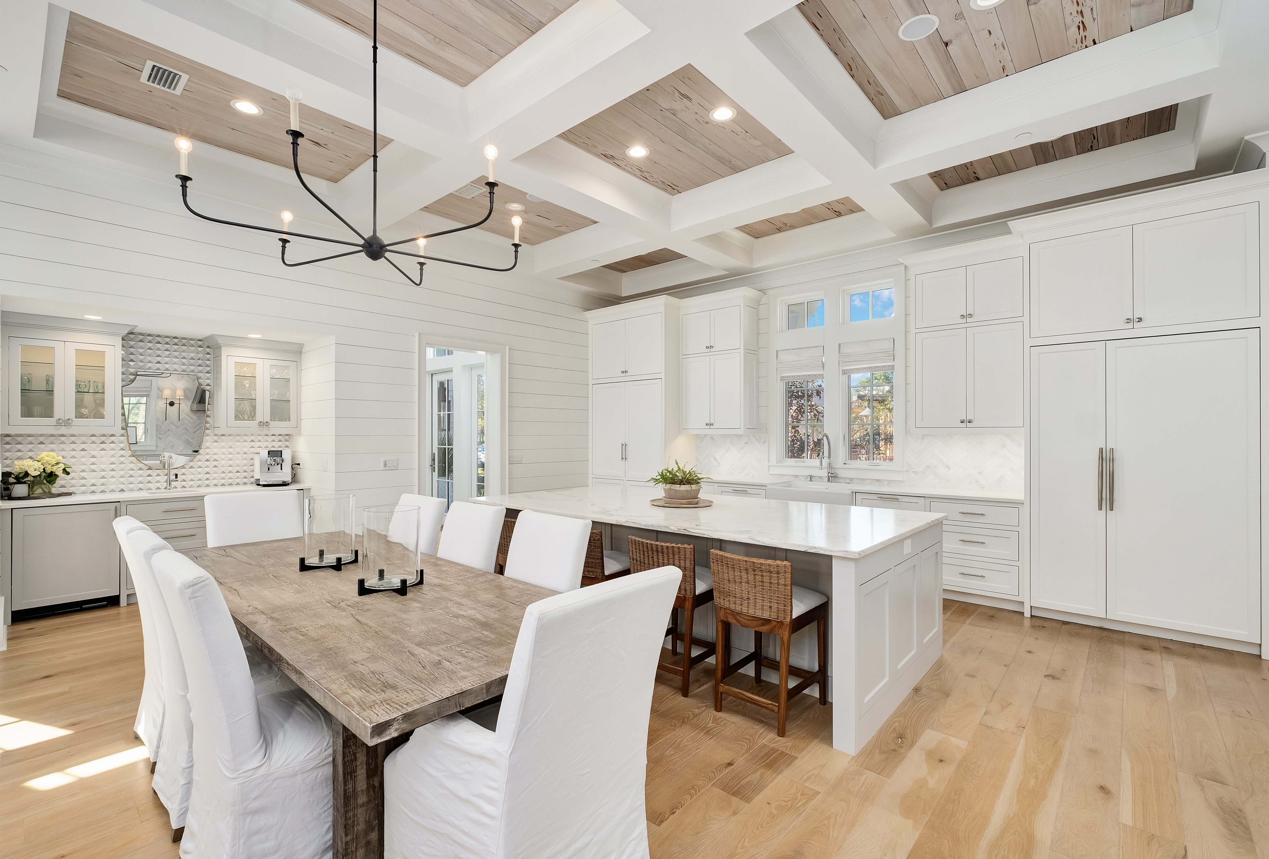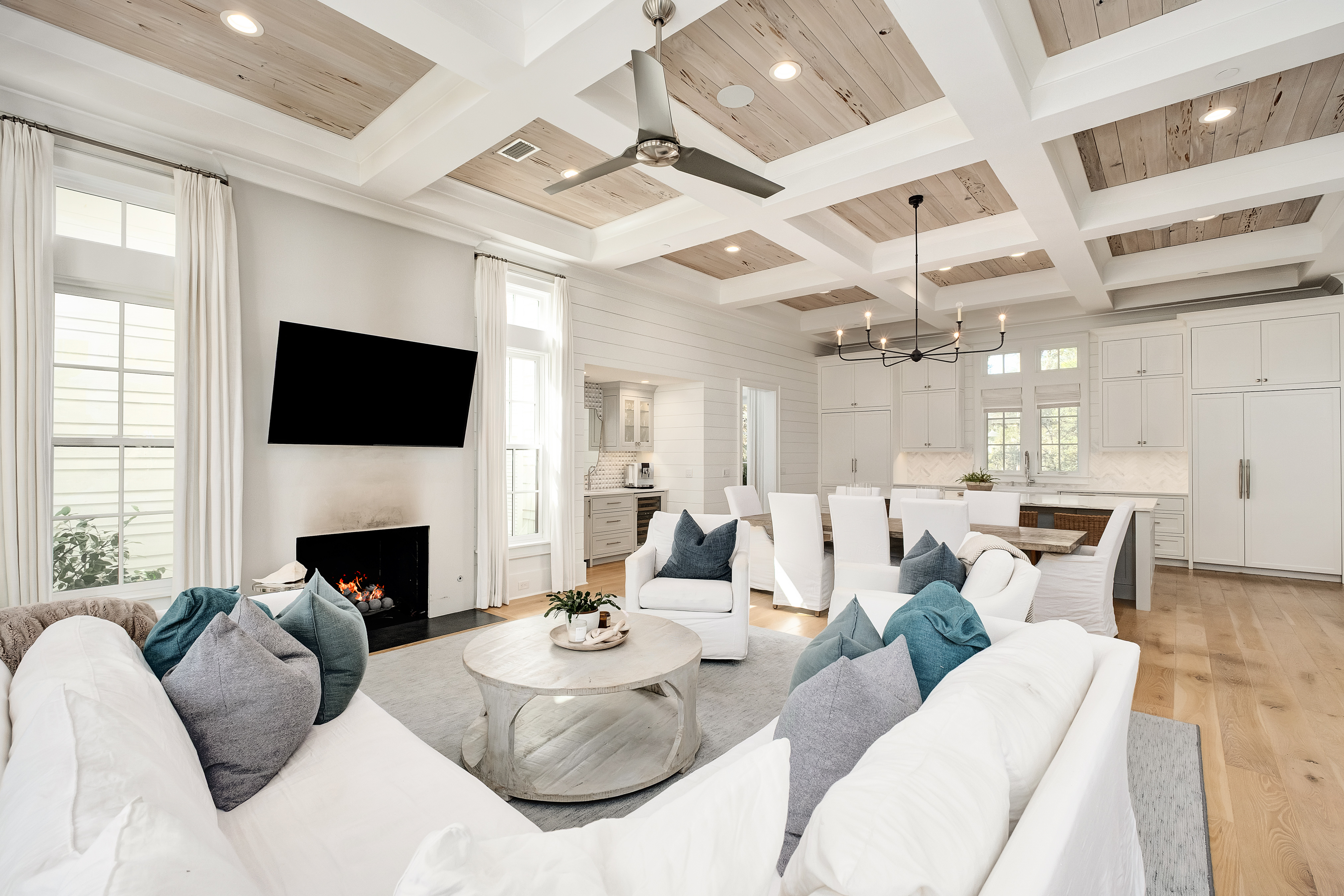 If you’ve been looking for the right home in Draper Lake Coastal Village, this home offers a compelling opportunity within the gated enclave. Designed by acclaimed architect Geoff Chick and built by Chris Clark, this 3,521-sq.-ft. residence offers four bedrooms, four-and-a-half baths, and the kind of approachable scale and thoughtful design that works equally well as a full-time coastal home or a second home you never want to leave. Walk through the front door, and a two-story foyer with floor-to-ceiling glass fills the entry with natural light. Hardwood floors lead into an open living area where 12-foot coffered ceilings with pecky cypress insets frame the space. The combined volume of the kitchen, dining, and living areas leaves a lasting impression. A marble-topped island anchors the kitchen with a professional-grade appliance package, while a fireplace brings balance to the living area. A first-floor guest suite, along with a powder bath, laundry, and two-car garage, completes the main level. Upstairs, vaulted ceilings define the primary suite, which features a soaking tub, walk-in shower, double vanity, and generous closets. A second guest suite, additional living area, and screened porch provide flexible space to unwind or work. Thoughtfully placed laundry on both the main and second floors for effortless day to day living. A detached carriage house with private exterior access offers a self-contained space with a kitchenette and ensuite bath, ideal for a guest suite, workout room or office space. Outside, a private heated pool and covered porches create an easy indoor-outdoor connection. Draper Lake Coastal Village is a gated community on Scenic Highway 30A inspired by the great camps of the Adirondacks and Lake Champlain. Designed by the planners behind Seaside, Florida, Rosemary Beach, and Alys Beach, the neighborhood is set along a rare coastal dune lake and offers pools, boathouses, trails, and a private beach cabana, all just moments from dining, shopping, and the 30A bike path.