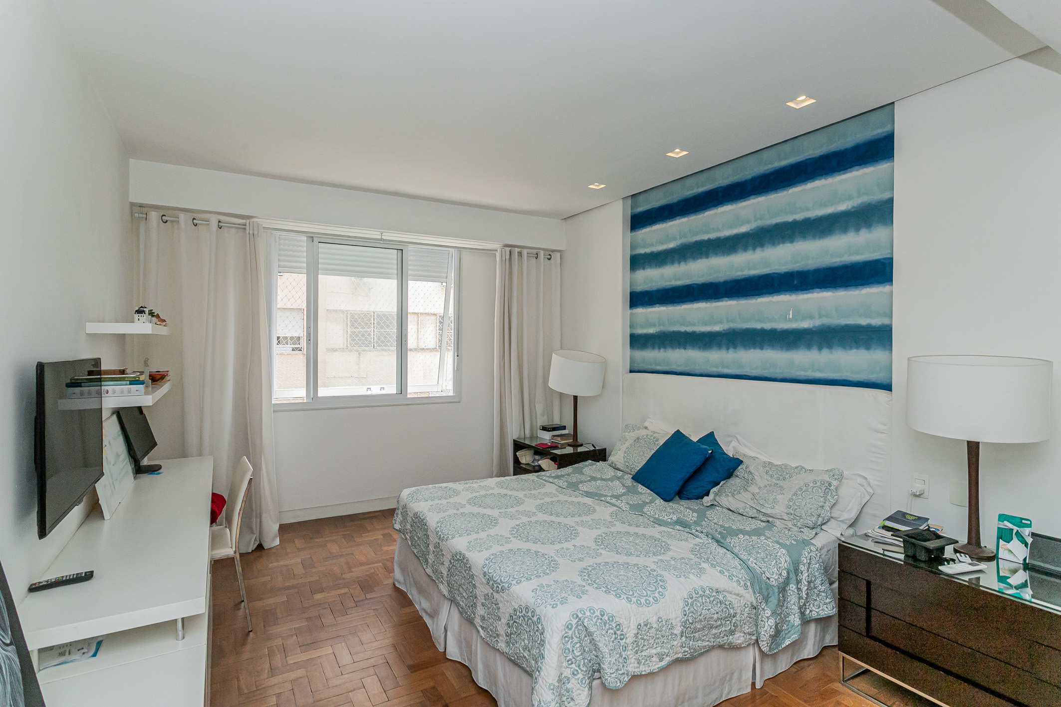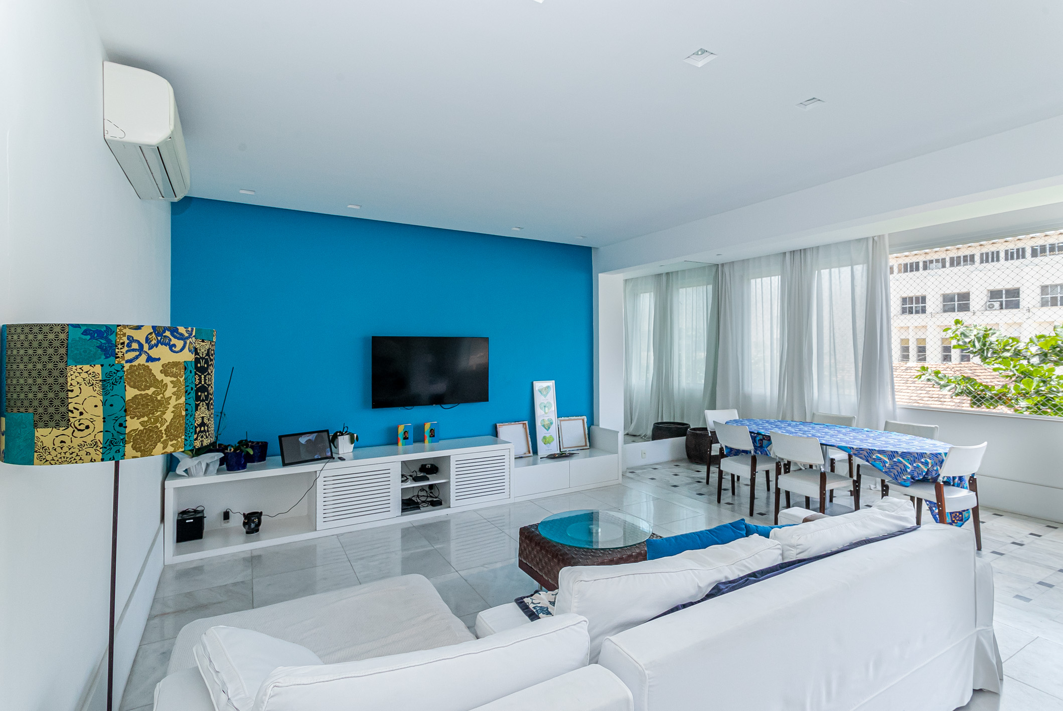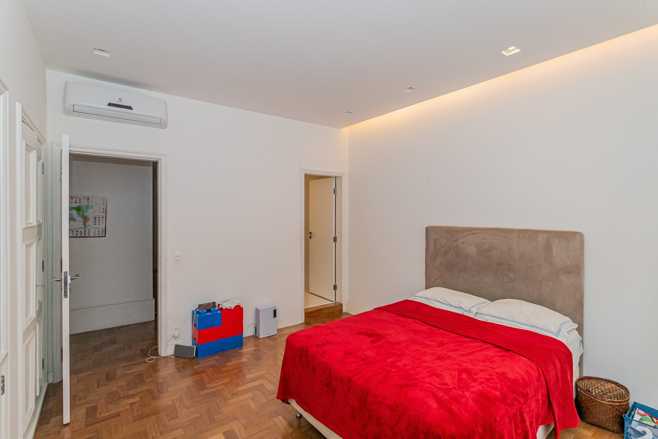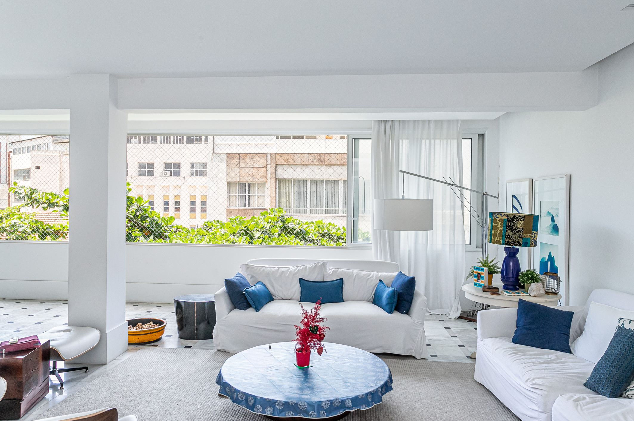 This renovated apartment offers approximately 3,111 sq. ft of well-distributed interiors and a lateral view of the ocean, ideally located near the Fasano Hotel. The living area is generous, arranged into three distinct environments and complemented by a powder room. The private quarters include four bedrooms, three of which are suites, in addition to a full bathroom. Marble flooring defines the social areas, while wood flooring extends through the private quarters. The kitchen includes a breakfast area and connects to the service area, which also features a service bathroom. All rooms are equipped with split air conditioning, including the kitchen. The property includes one deeded parking space, and the building offers 24-hour concierge service.