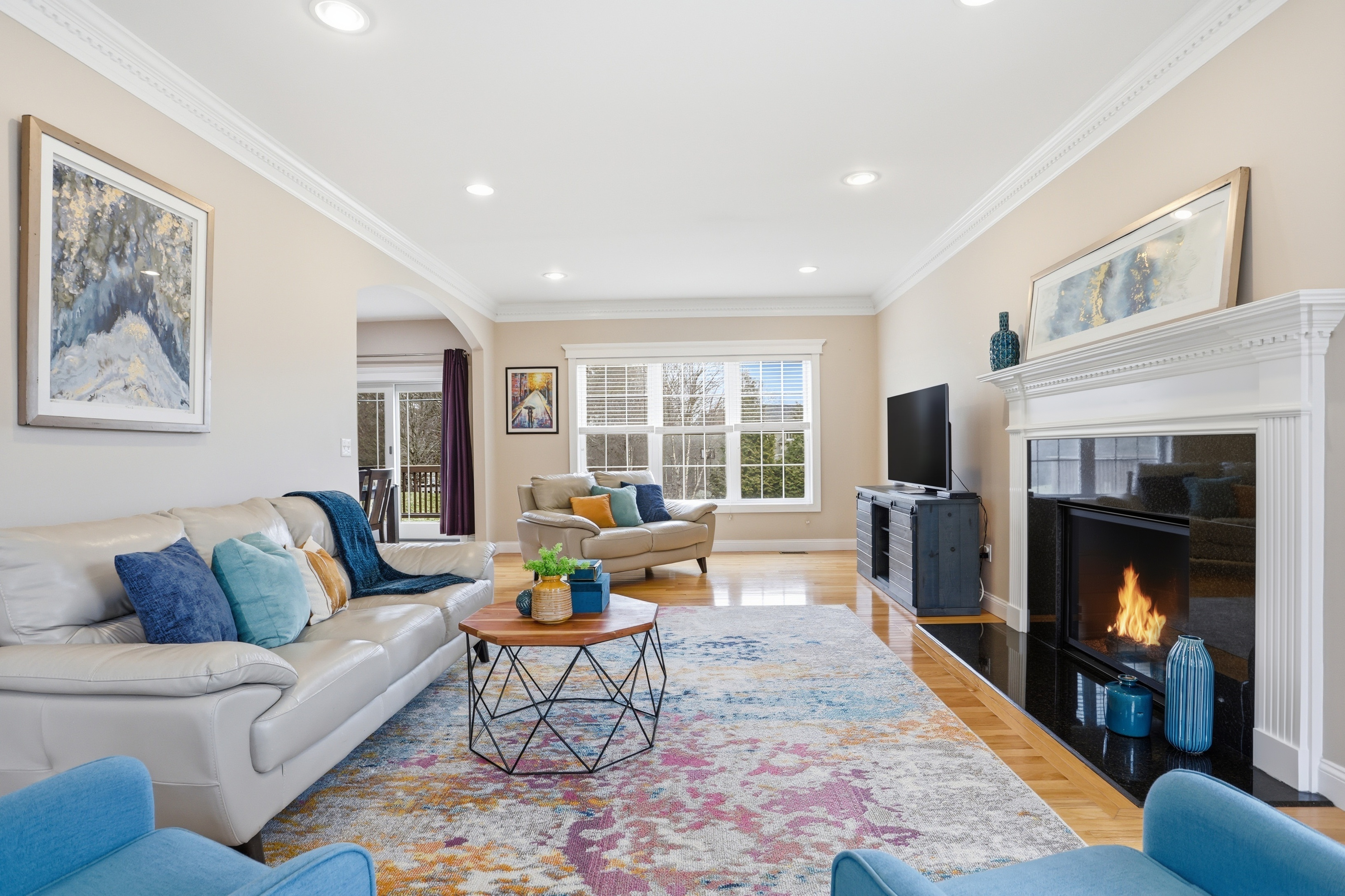 This young colonial, located on coveted Wood Lane on a dead-end street, is within .3 miles to historic Acton town center, the Arboretum hiking trails and town library, plus quick access to major commuter routes. This home offers abundant sunlight through its multiple exposures. The main level features wood floors, a spacious eat-in-kitchen w/center island with new SS appliances and sliders that lead to the large deck and backyard. The front-to-back LR has a gas FP & window surround and has plenty of space for entertaining. Also off the kitchen is the dining room that could easily be converted into a home office or quiet den/living room. The second level includes a gracious primary suite w/sitting room, spa like bath w/jetted tub & a large W-I-C. Two additional ample sized bedrooms share a double vanity bathroom. The third level includes a bonus space and 4th bedroom with an en-suite bathroom. Updates include new carpeting, gutters and a whole house water filtration system. A gem!