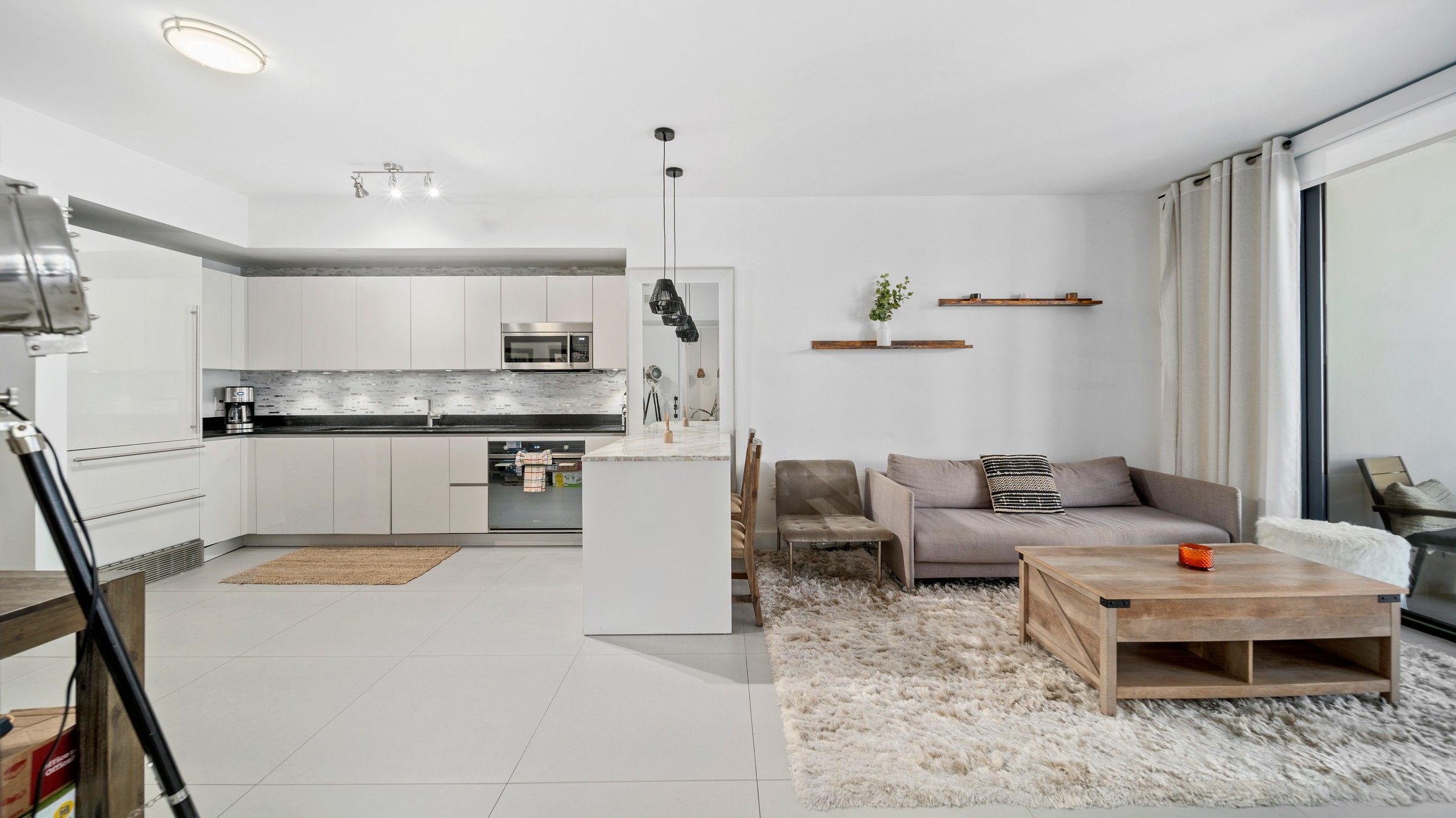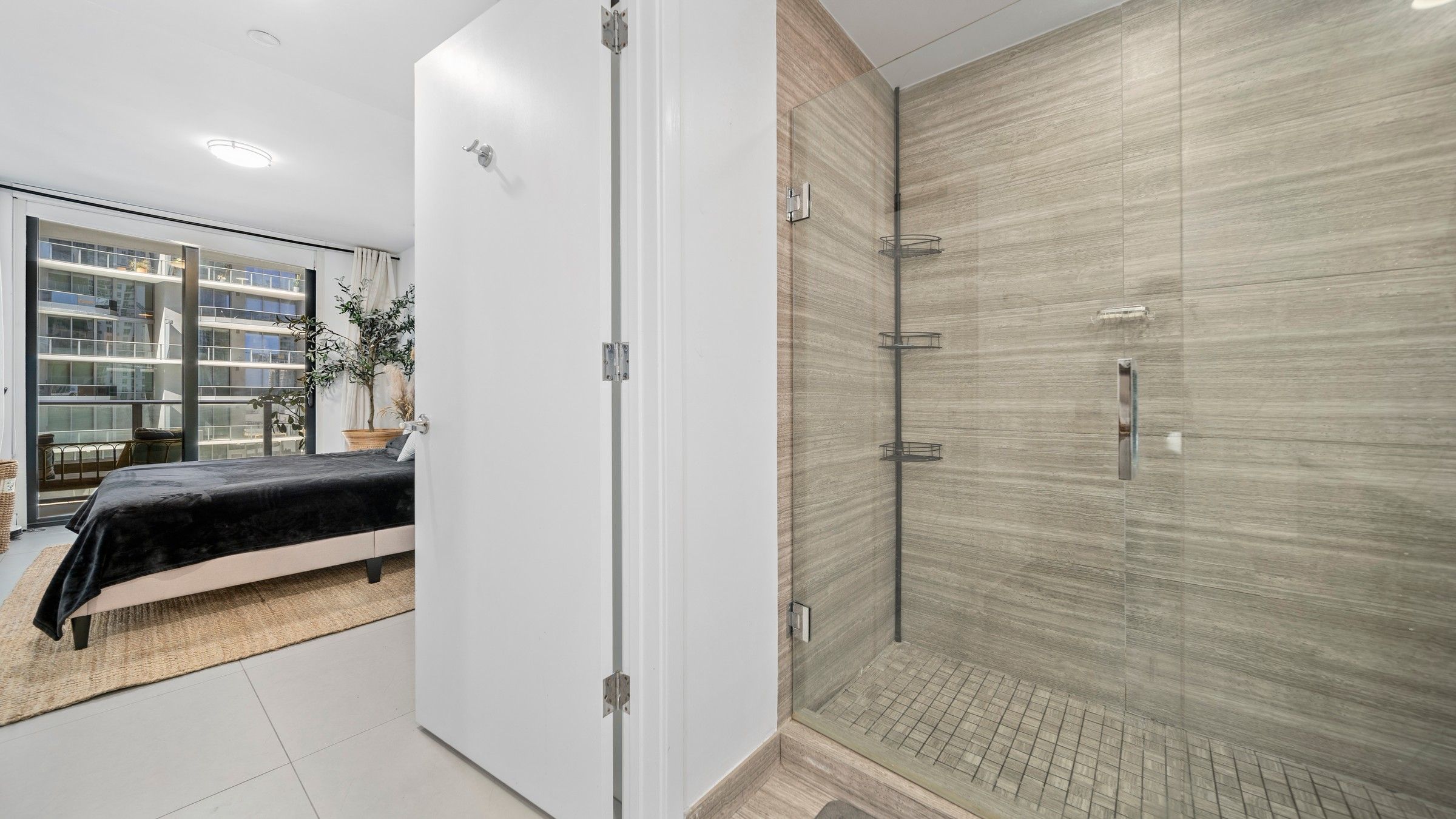This unit offers a comfortable 1 bedroom and 1.5 baths, featuring stone-like porcelain marble floors. The convenience of a glass-enclosed shower and custom-made closets enhances daily living, while windows equipped with blackout shades provide privacy. Functionality meets aesthetics with 9-foot ceilings, creating an open and spacious atmosphere. The well-equipped kitchen showcases top-of-the-line appliances for efficient and enjoyable cooking. Your day-to-day is made easy with the added perk of a designated parking space. Upgrade your lifestyle with this practical and functional living.