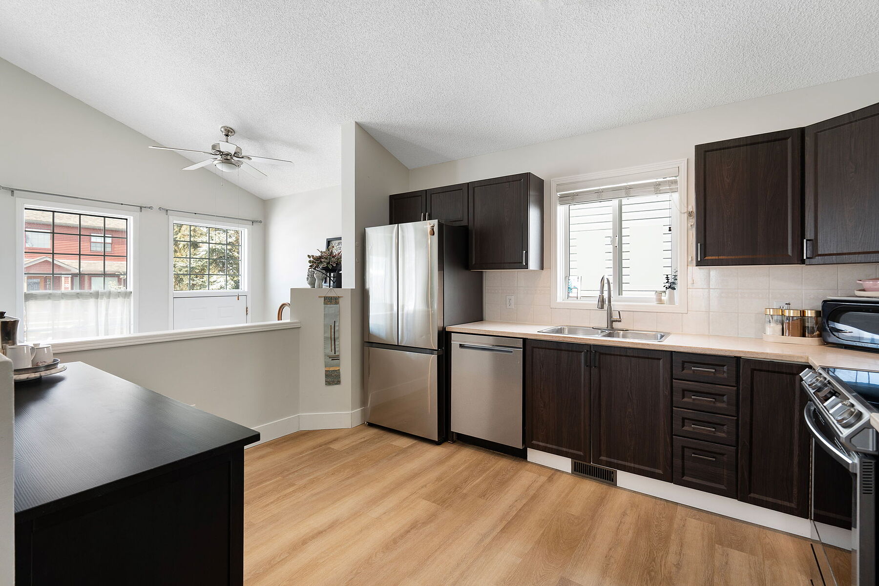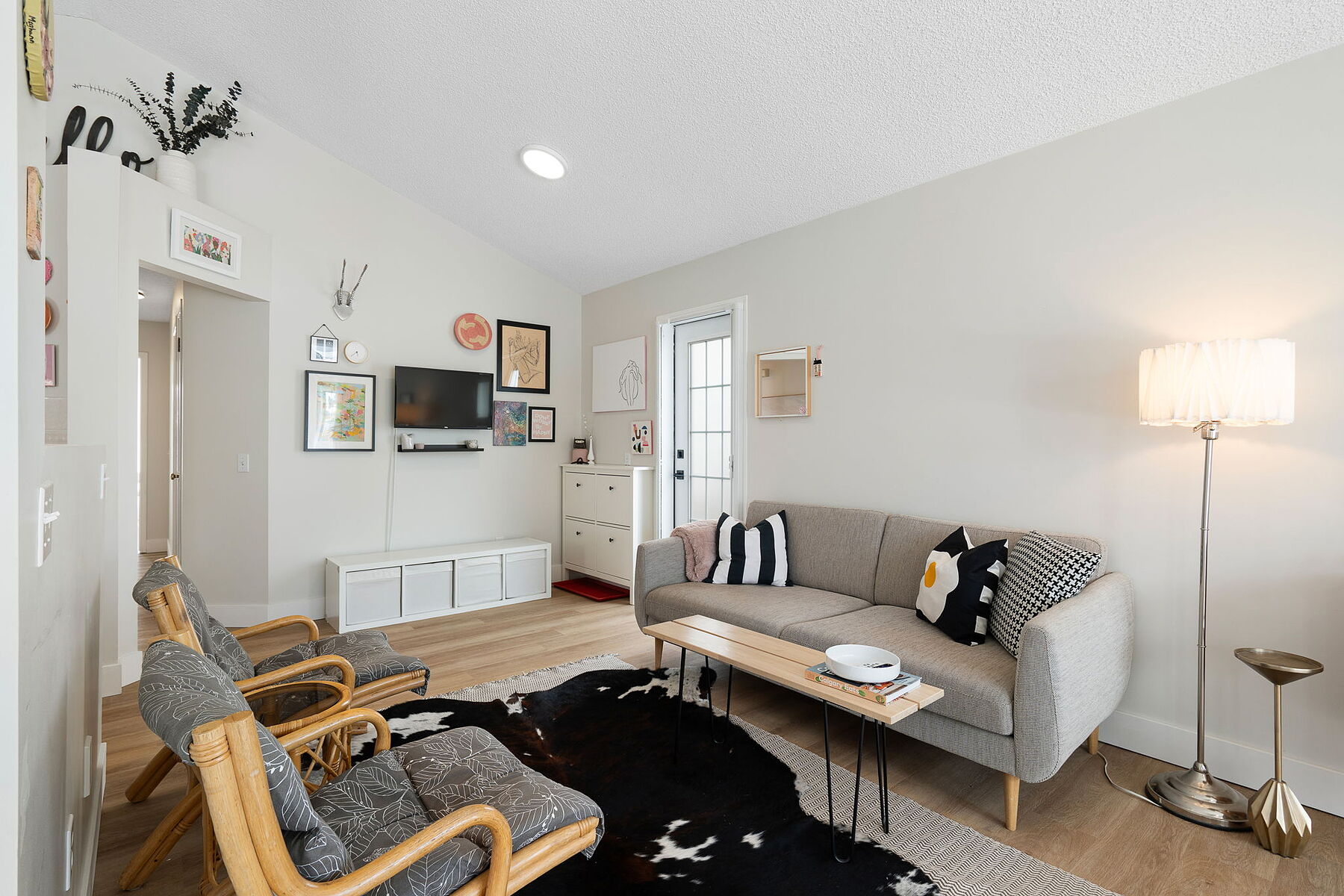 ** Open House Saturday, April 4, 12-2 pm ** Located on a quiet street in Riverbend, this bright, move-in-ready home offers over 2,000 sq. ft. of developed living space. The home is noticably brighter than your average home, with vaulted ceilings and large windows that make the home feel airy and vibrant. The home was recently finished in luxury vinyl plank flooring throughout (2026), with new beautiful and waterproof tile flooring at the entry (2026). The main floor features 3 bedrooms, a newly remodeled full bath (2022), and a spacious kitchen with stainless steel appliances including a new refrigerator, range and dishwasher (2021), a new range hood (2026), and new lighting (2026). The primary bedroom includes a walk-in closet, fresh paint (2021), and a full height bay window. The two other well-sized bedrooms have great closet space. The finished lower level has a separate entrance, a fourth bedroom, a second full bath, and a cozy fireplace. This level also includes a bright flex room/playroom with a window and impressive storage space, and new washer dryer in the utility room (2021). Outside, the sunny southeast-facing backyard is low-maintenance featuring new synthetic grass, patio stones and a deck with pergola with canvas overlay (2023) for enjoying long summer days. The property includes an extra-tall double detached garage, great for additional storage, and is backing a paved lane, meaning less dust and mud-free throughout the year. You’ll also benefit from street parking at the front which, being on a quiet residential street, is never crowded. This adorable home offers extensive access to the city's Bow River pathway system, providing residents with scenic, multi-use trails that connect to the broader regional network. With some of the best access to both Deerfoot and Glenmore, you’ll find living in Riverbend not only saves you time but makes you feel quickly at home in this quiet and established family community.