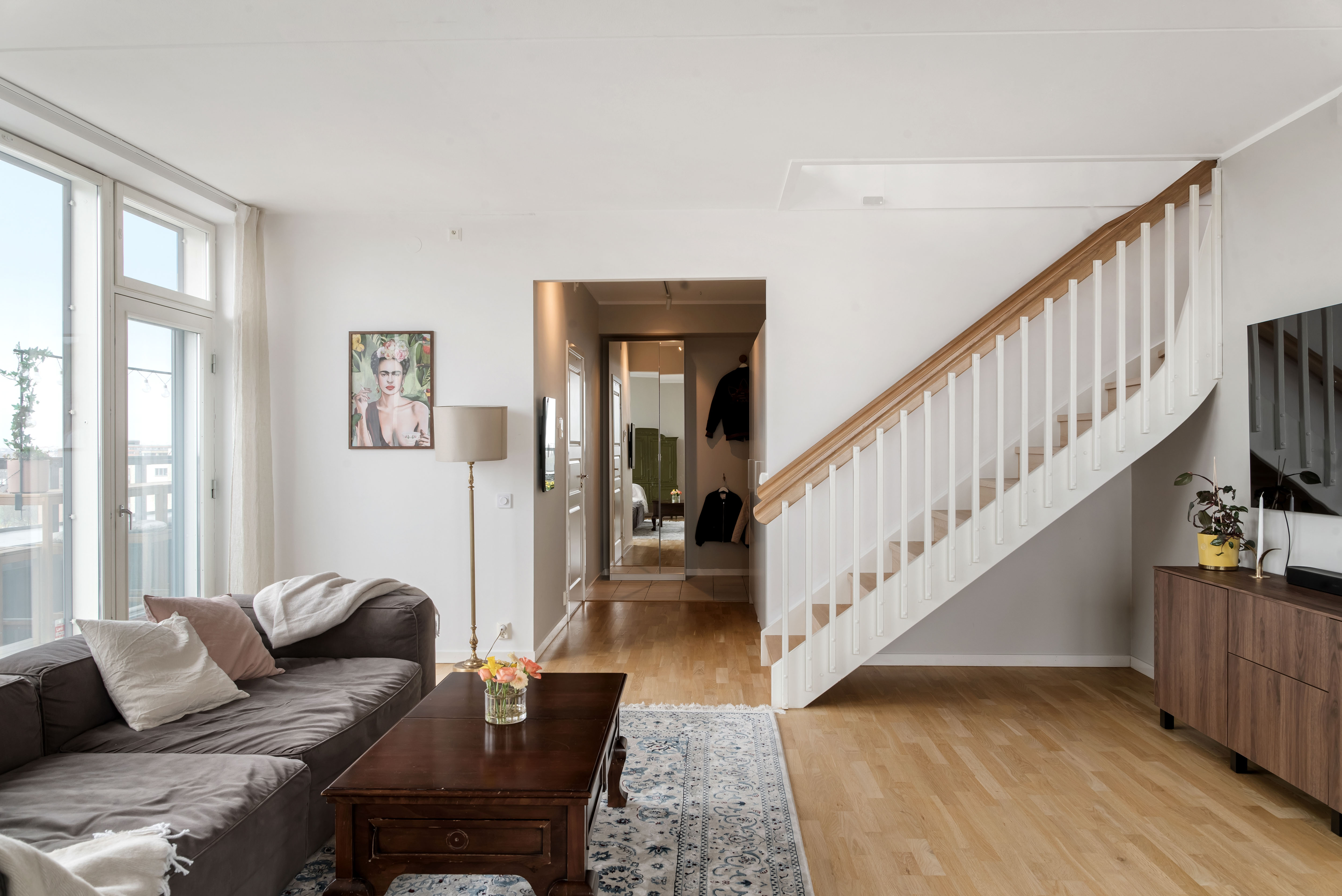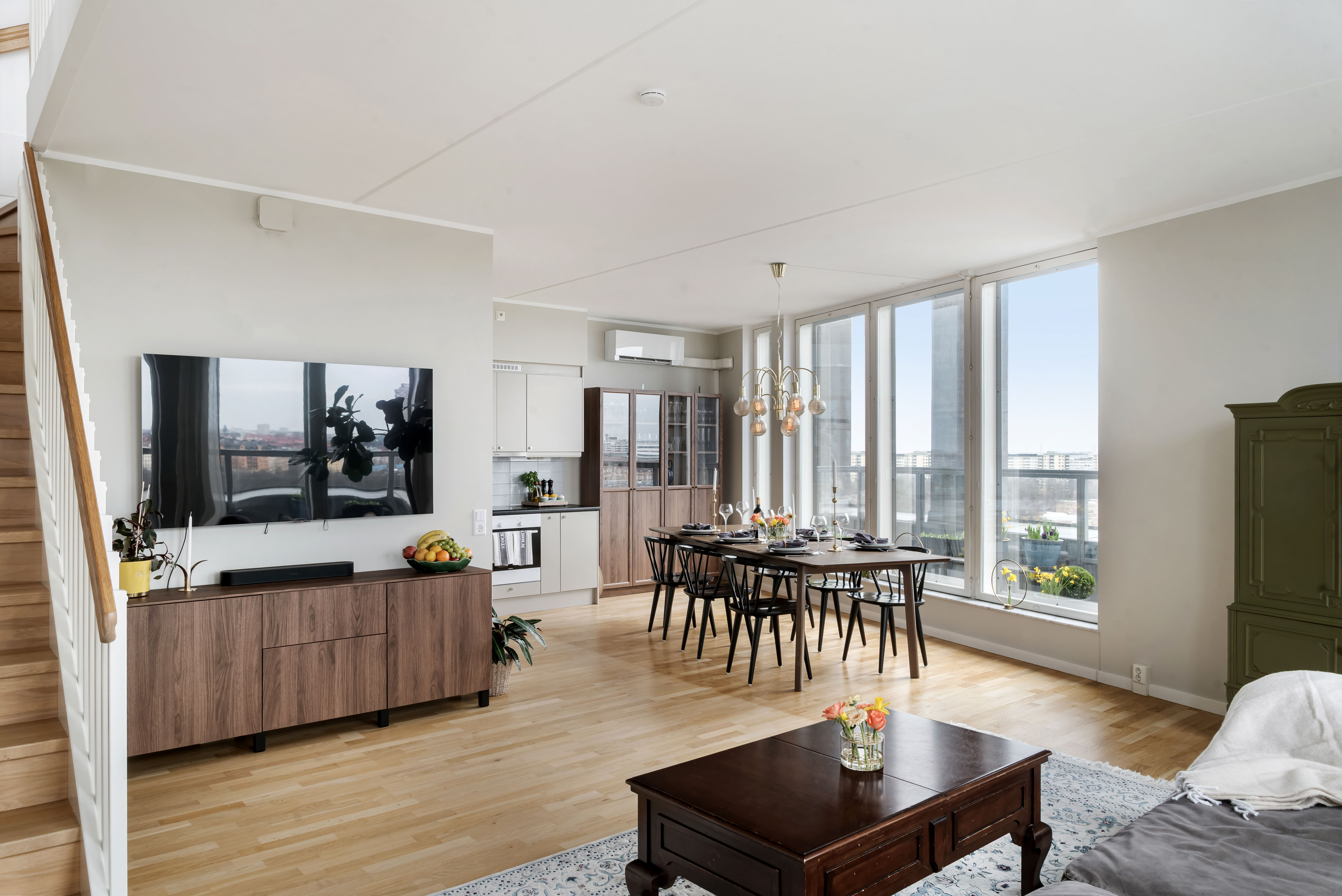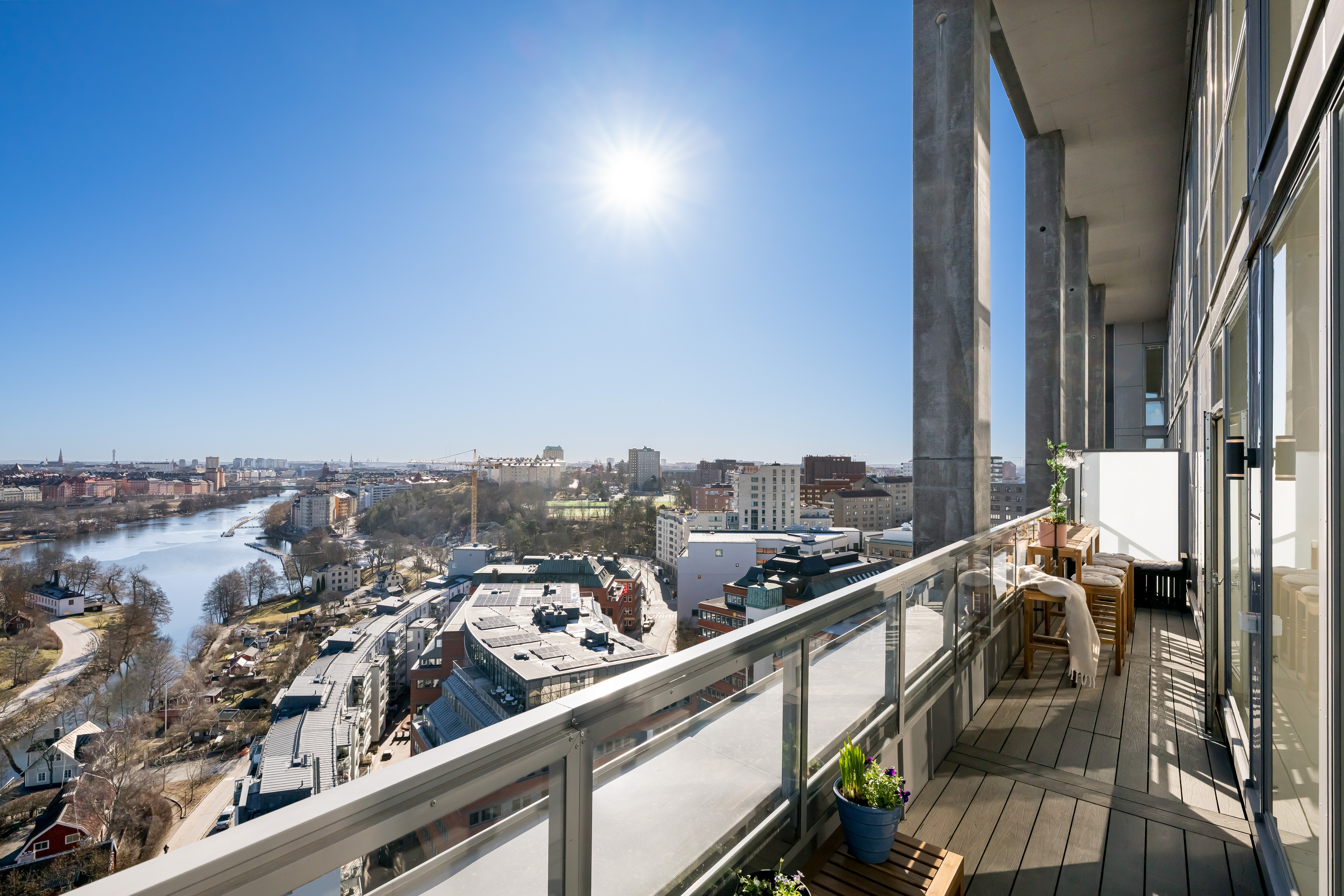 Welcome to this duplex apartment of 137 sqm, located at the very top of the building, offering breathtaking views over the water and across all of Stockholm. The apartment spans two levels at the highest point of the property.