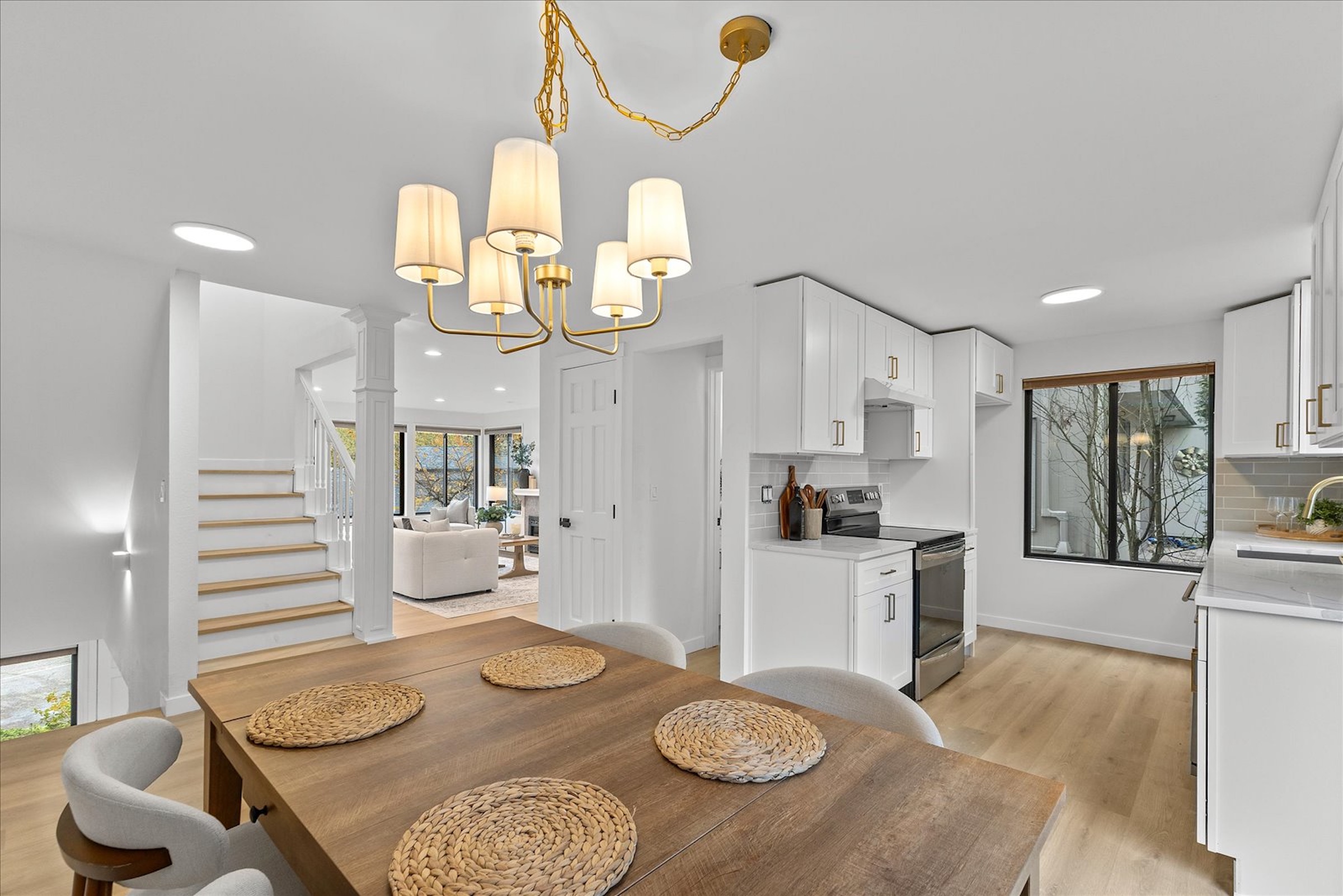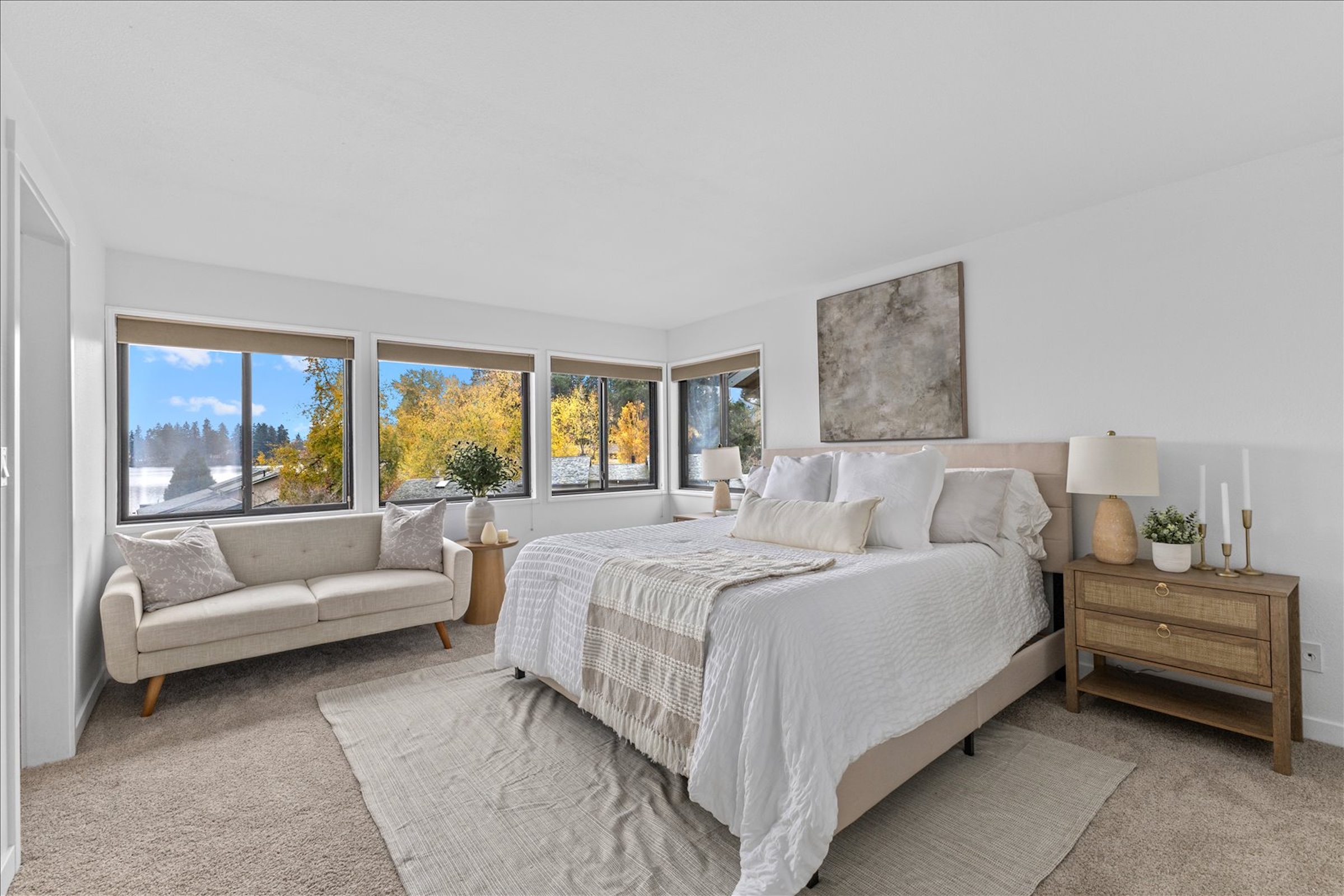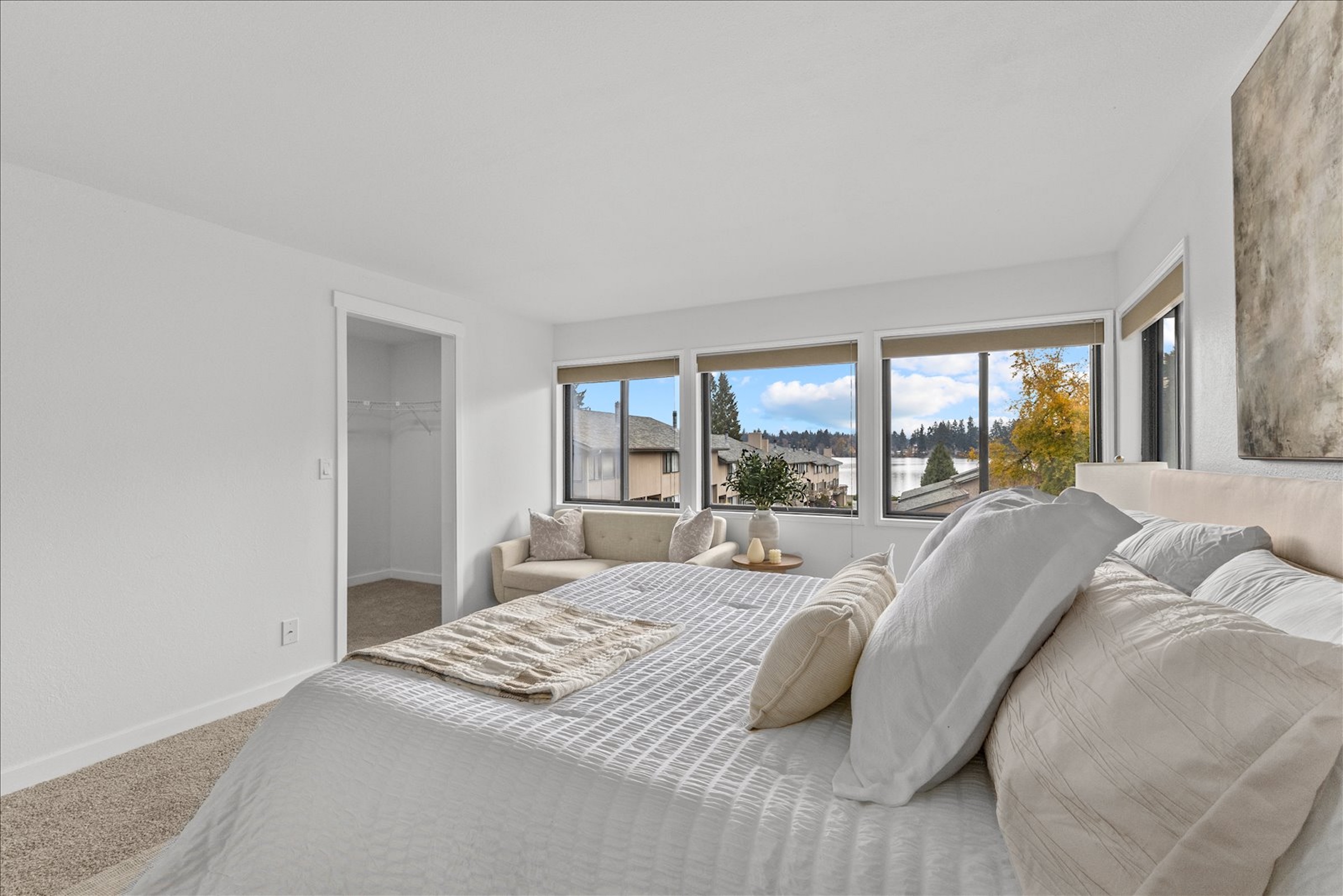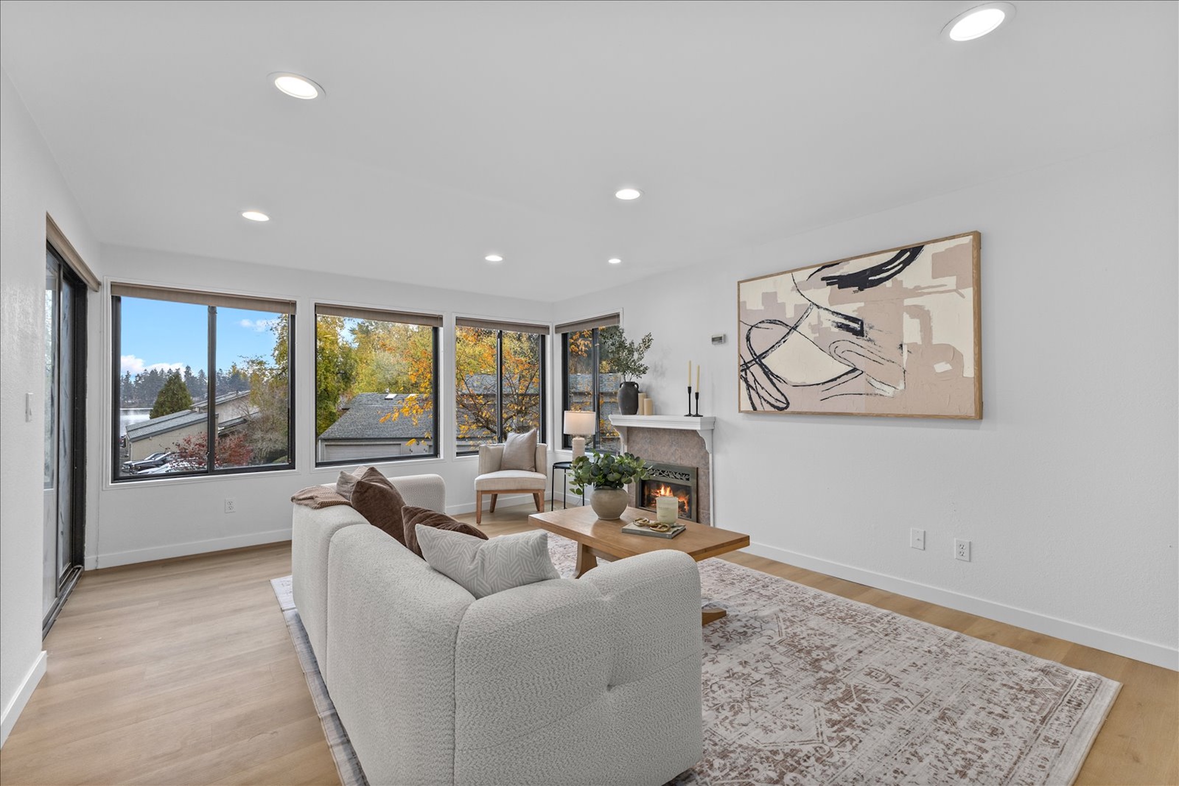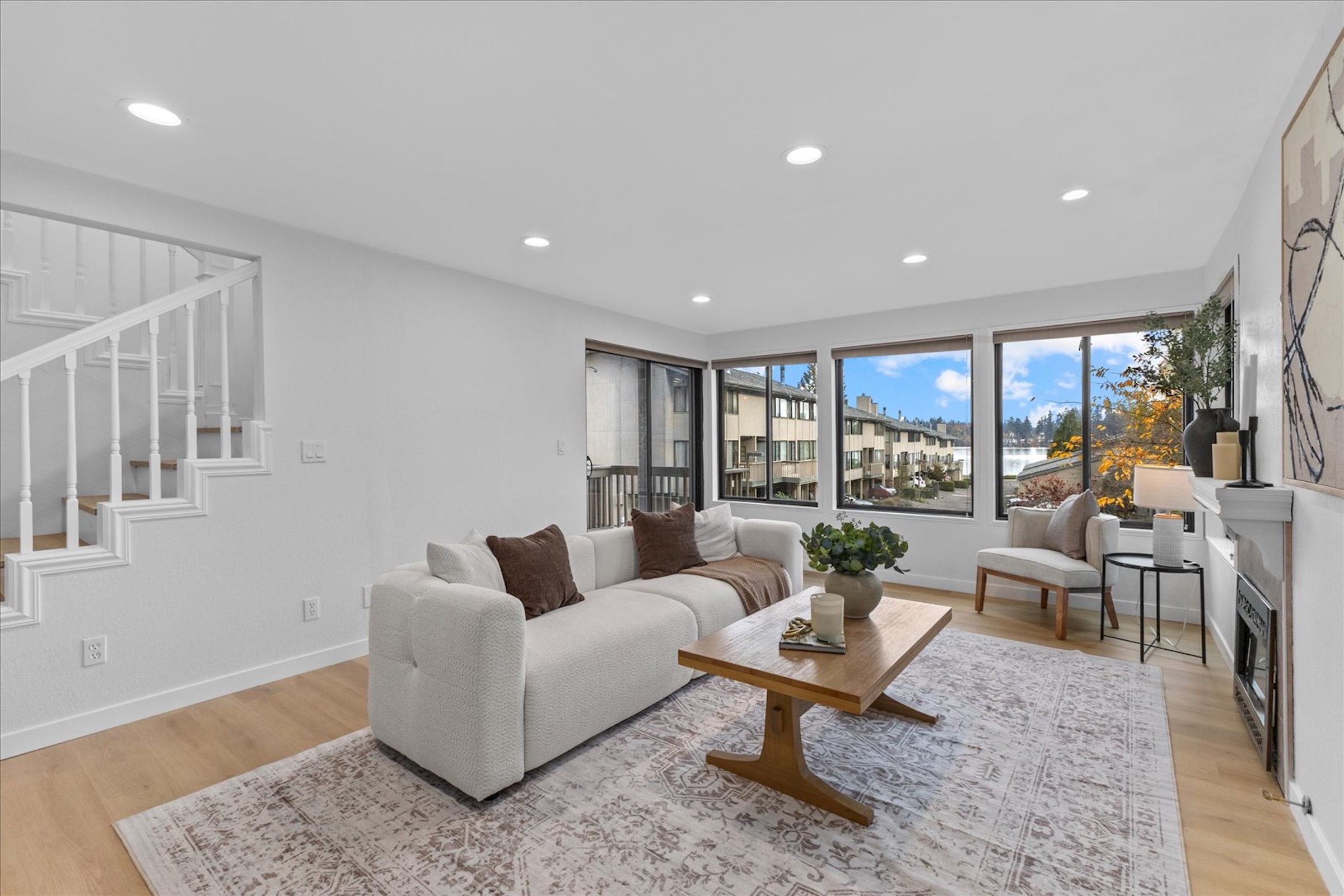 Lakefront Living! Welcome to this fully updated end-unit townhouse in a gated community on beautiful Spanaway Lake. Enjoy direct lake access, a cozy fireplace, & an expansive kitchen & dining area perfect for entertaining. This home features sleek quartz countertops, high-end appliances, & luxury flooring throughout. Upstairs, floor-to-ceiling windows fill the home w/ natural light & showcase water views, private backyard deck. Amenities include a dock, boat launch, clubhouse, RV/boat storage, tennis court, & swimming pool. Two parking spaces & every modern convenience, this rare end-unit seamlessly blends style, comfort, & lifestyle. Don’t miss the opportunity to experience lakefront living at its best. Welcome home!
