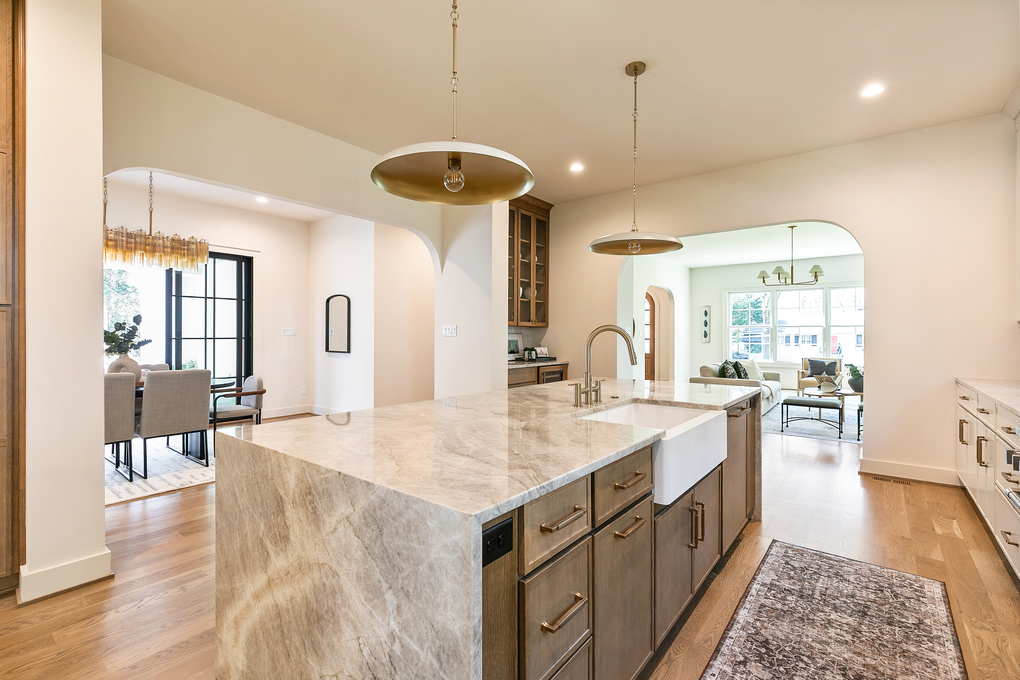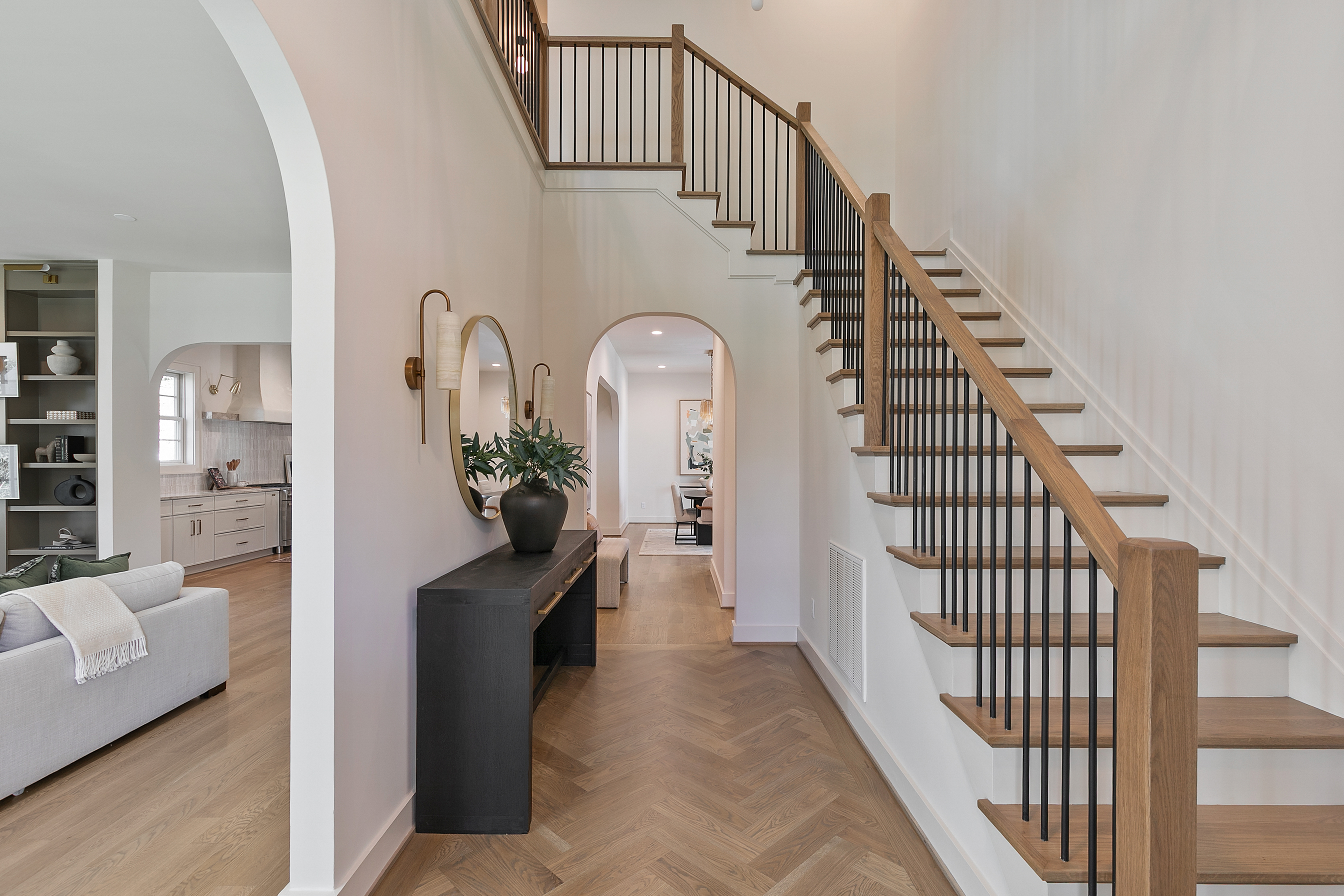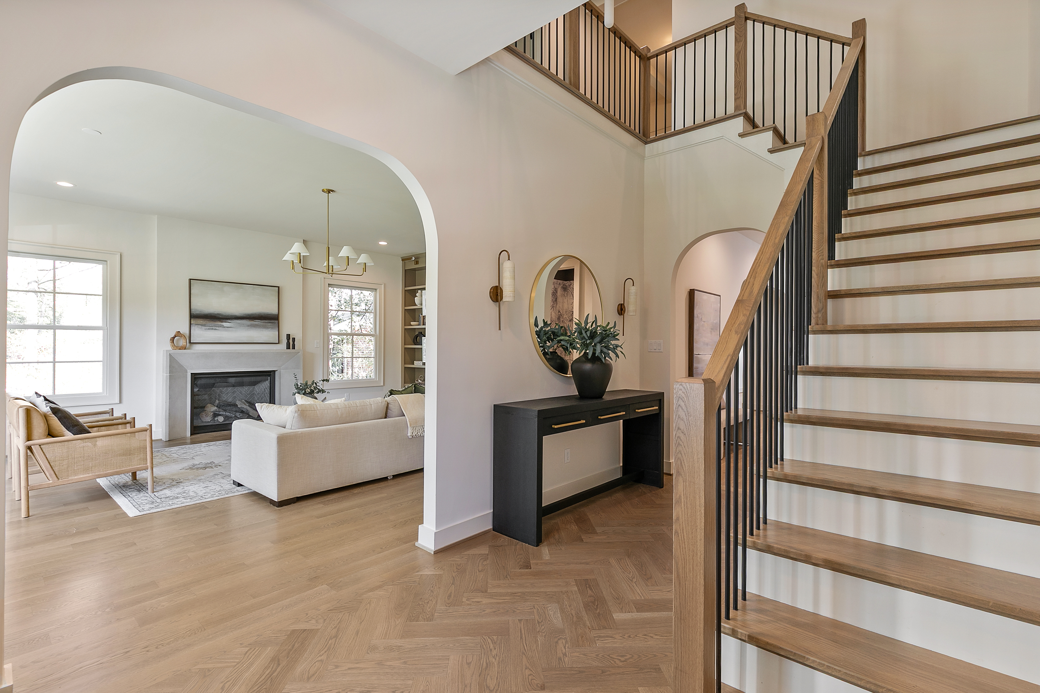Welcome to 1107 Essex Avenue, ideally situated in the sought-after University Heights neighborhood. An exceptional opportunity to experience luxury new construction within the coveted Tuckahoe school district. Thoughtfully designed with over 4,400 square feet of living space, this home blends refined craftsmanship with everyday functionality. Step through the arched entryway into a grand foyer with herringbone white oak flooring, setting the tone for the elevated finishes throughout. A sun-filled living room with custom built-ins flows into the stunning gourmet kitchen, the heart of the home, featuring quartz countertops, an oversized island with seating, a wet bar, a Venetian hood, a Monogram 48" side-by-side fridge, a 36" gas range, and an undercounter wine center. An arched opening leads to the dining room, where sliding doors extend your space outdoors to the covered porch and fireplace, creating a perfect indoor-outdoor lifestyle. The first-floor primary suite offers a serene retreat with an ensuite bath featuring a tile-entry shower, soaking tub, and a large walk-in closet. Upstairs, a turned staircase leads to a versatile loft overlooking the front of the home. A second primary suite includes its own ensuite bath and walk-in closet, while two additional bedrooms each have walk-in closets and share a hall bath with double vanity. An expansive upper-level family or recreation room, accessible via a second staircase, provides flexible living space. A 400-square-foot covered porch with fireplace and ceiling speakers allows year-round enjoyment. Additional highlights include white oak hardwoods throughout, a first-floor laundry room, a mudroom with custom built-ins off the two-car garage, and a large lot with full irrigation. Showcasing exceptional millwork and attention to detail, this home offers the perfect blend of luxury, comfort, and timeless design in one of the area’s most desirable locations.