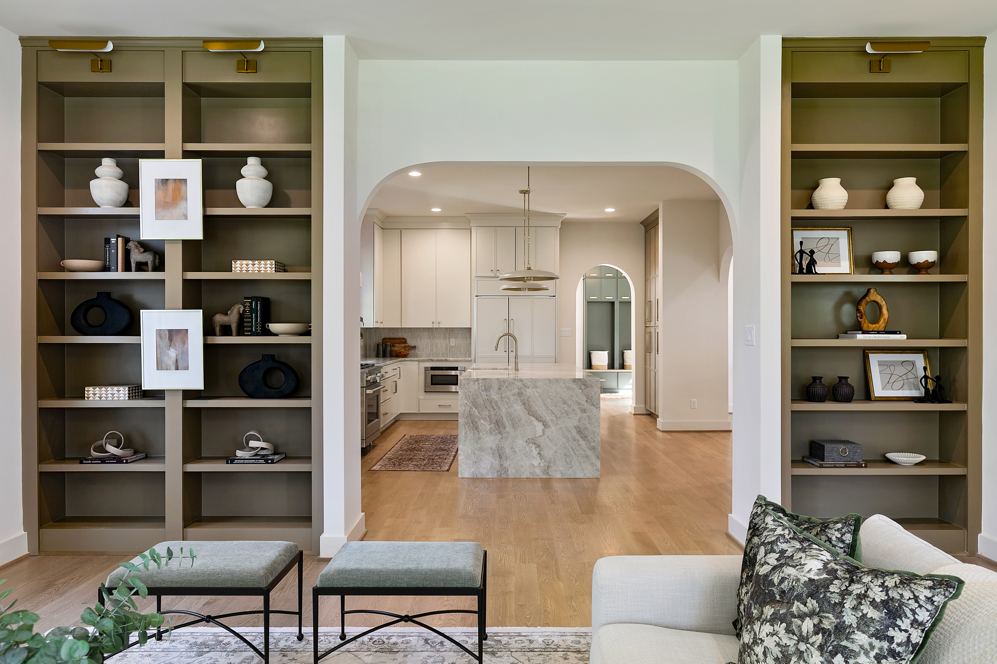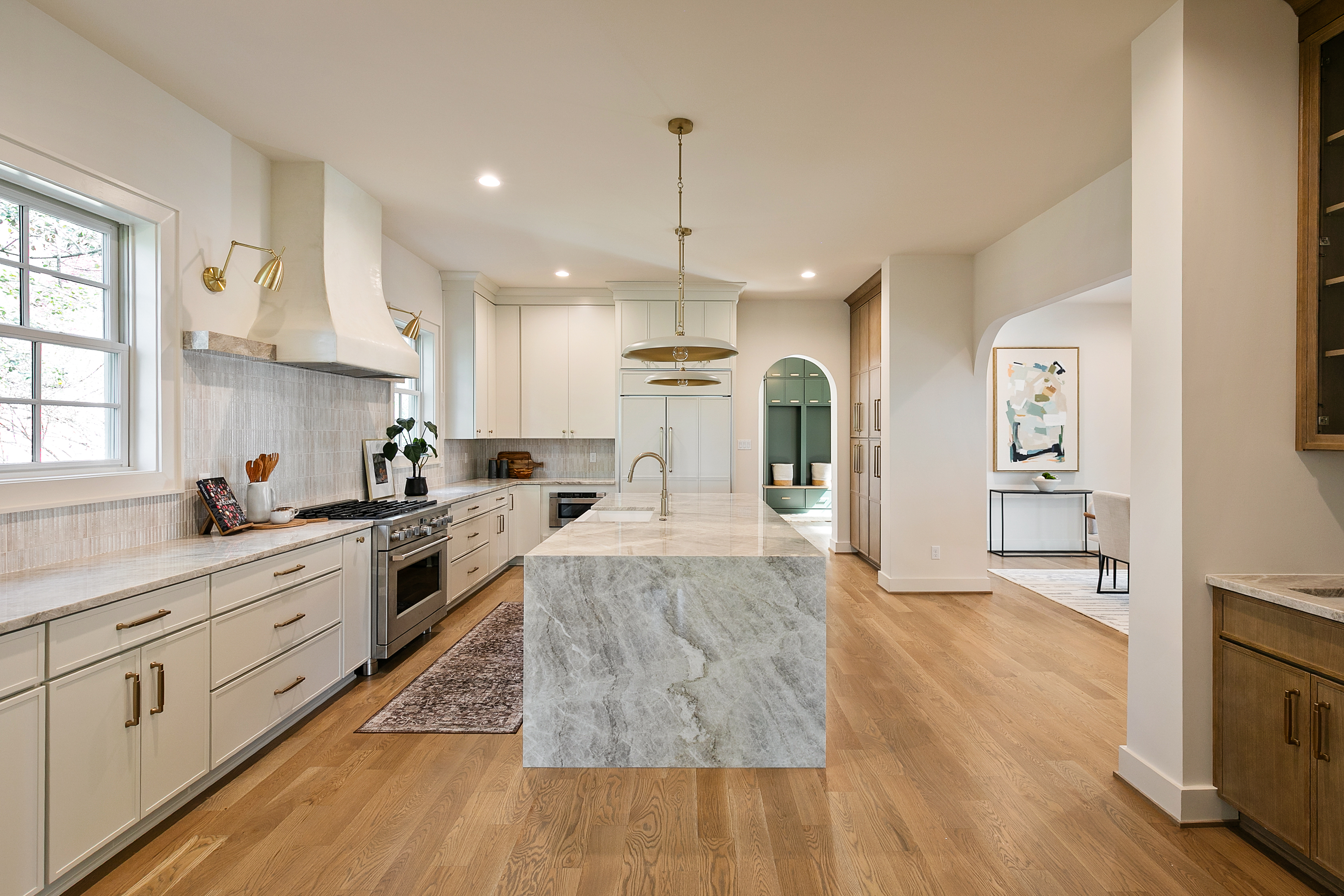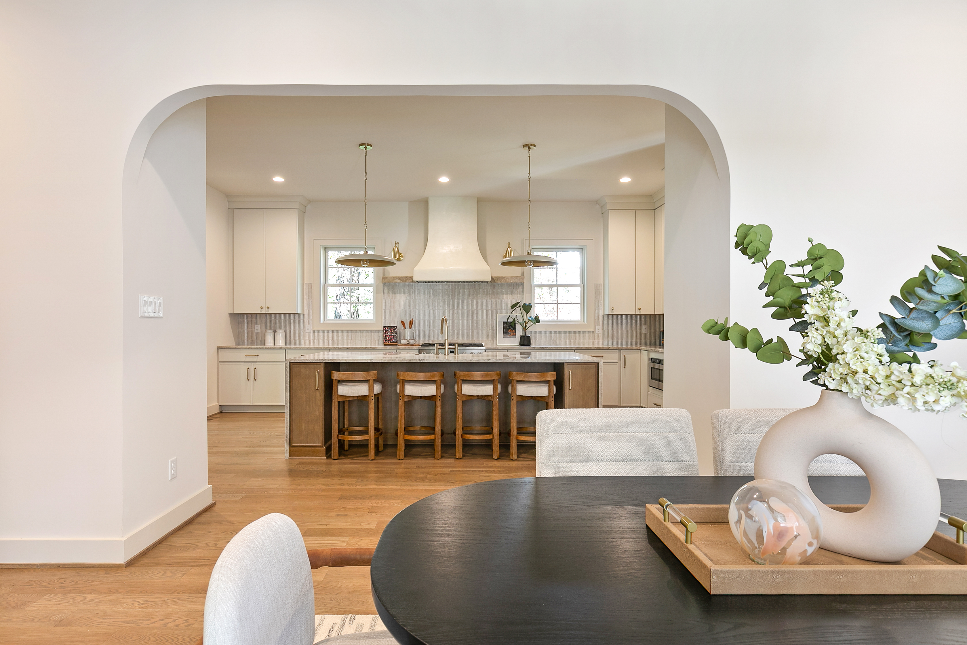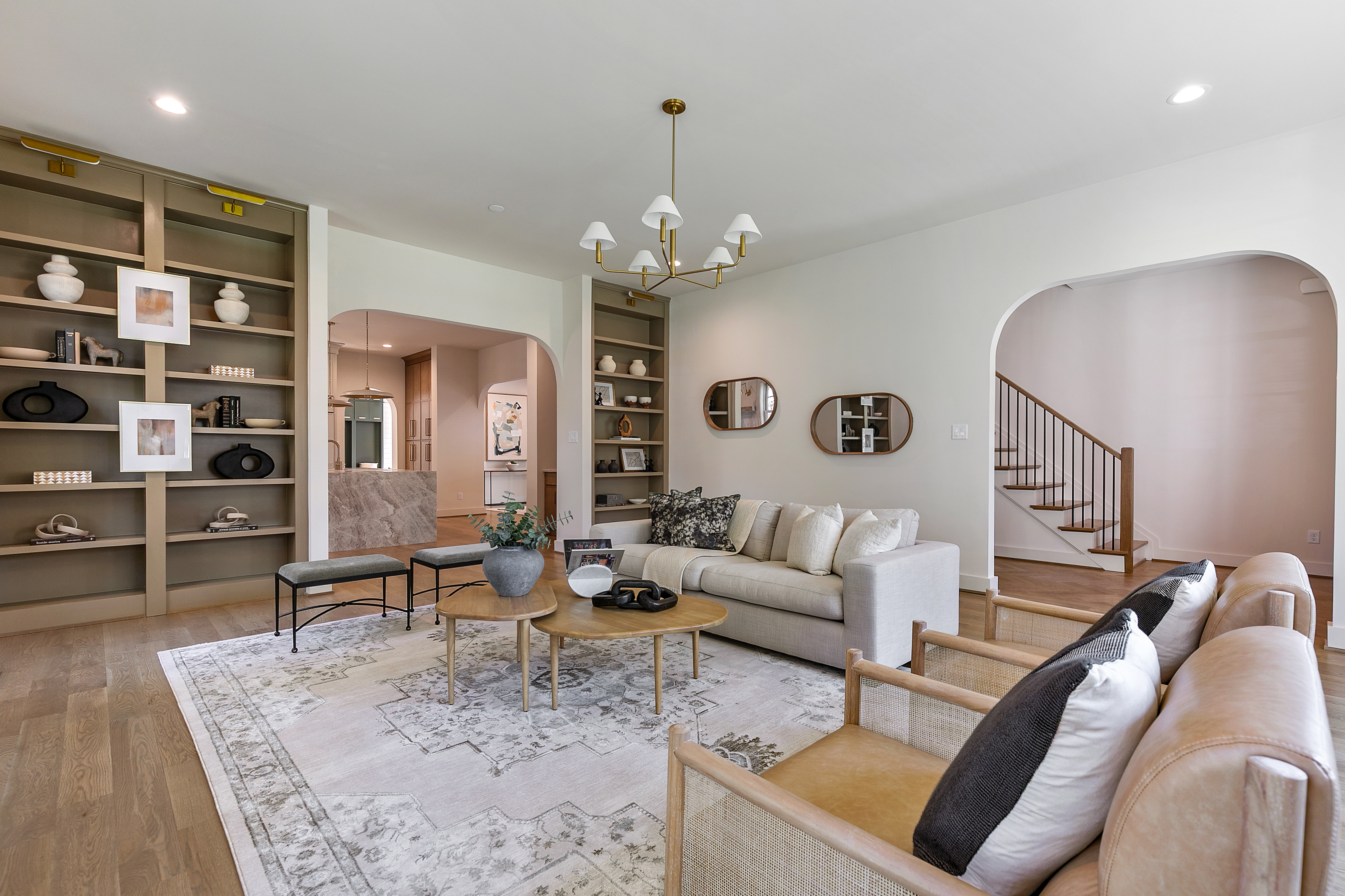Welcome to 1107 Essex Avenue, ideally situated in the sought-after University Heights neighborhood. An exceptional opportunity to experience luxury new construction within the coveted Tuckahoe school district. Thoughtfully designed with over 4,400 square feet of living space, this home blends refined craftsmanship with everyday functionality. Step through the arched entryway into a grand foyer with herringbone white oak flooring, setting the tone for the elevated finishes throughout. A sun-filled living room with custom built-ins flows into the stunning gourmet kitchen, the heart of the home, featuring quartz countertops, an oversized island with seating, a wet bar, a Venetian hood, a Monogram 48" side-by-side fridge, a 36" gas range, and an undercounter wine center. An arched opening leads to the dining room, where sliding doors extend your space outdoors to the covered porch and fireplace, creating a perfect indoor-outdoor lifestyle. The first-floor primary suite offers a serene retreat with an ensuite bath featuring a tile-entry shower, soaking tub, and a large walk-in closet. Upstairs, a turned staircase leads to a versatile loft overlooking the front of the home. A second primary suite includes its own ensuite bath and walk-in closet, while two additional bedrooms each have walk-in closets and share a hall bath with double vanity. An expansive upper-level family or recreation room, accessible via a second staircase, provides flexible living space. A 400-square-foot covered porch with fireplace and ceiling speakers allows year-round enjoyment. Additional highlights include white oak hardwoods throughout, a first-floor laundry room, a mudroom with custom built-ins off the two-car garage, and a large lot with full irrigation. Showcasing exceptional millwork and attention to detail, this home offers the perfect blend of luxury, comfort, and timeless design in one of the area’s most desirable locations.