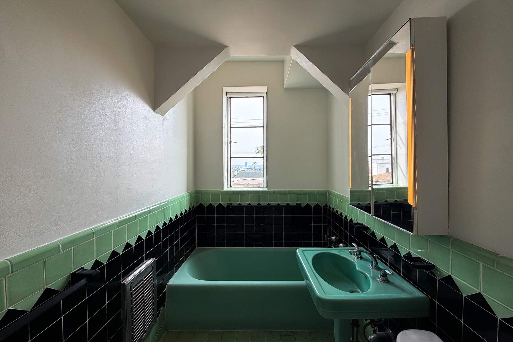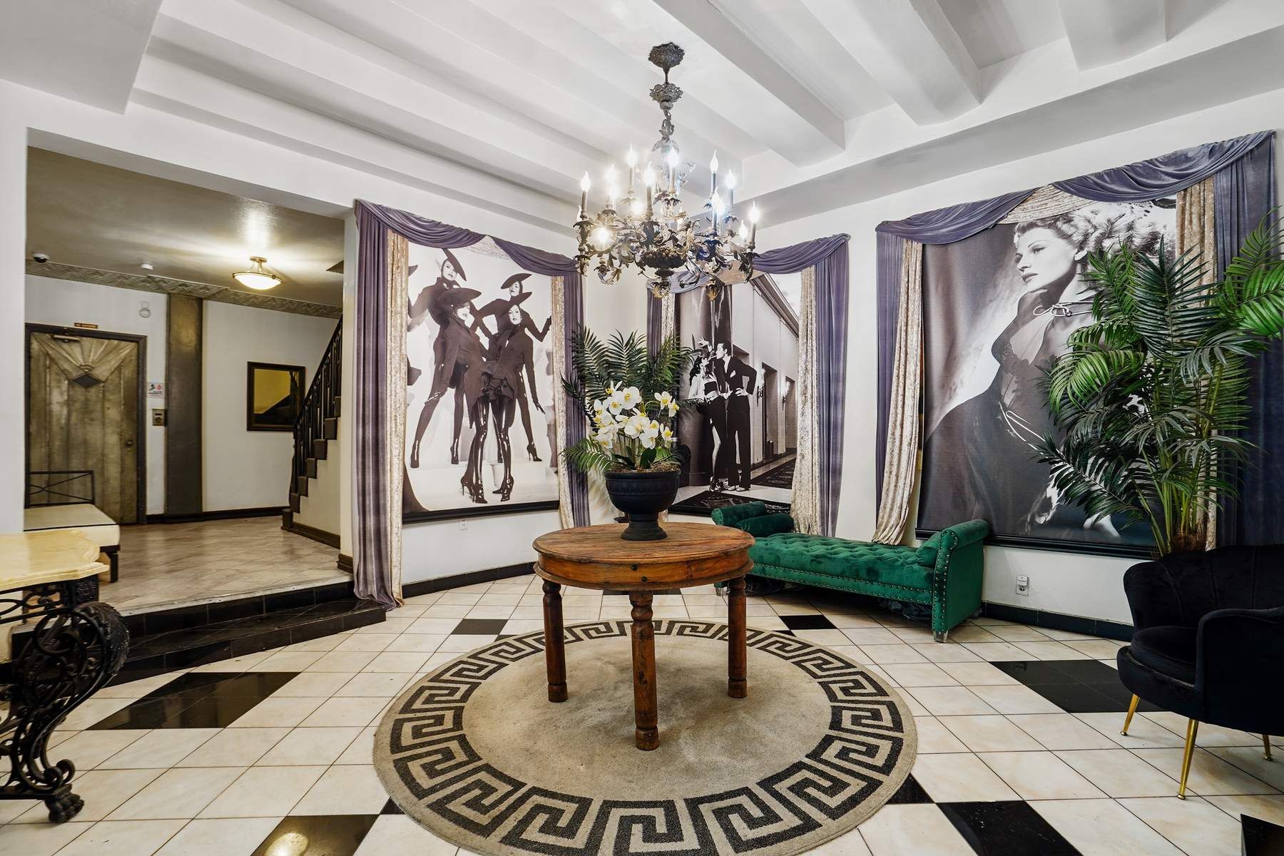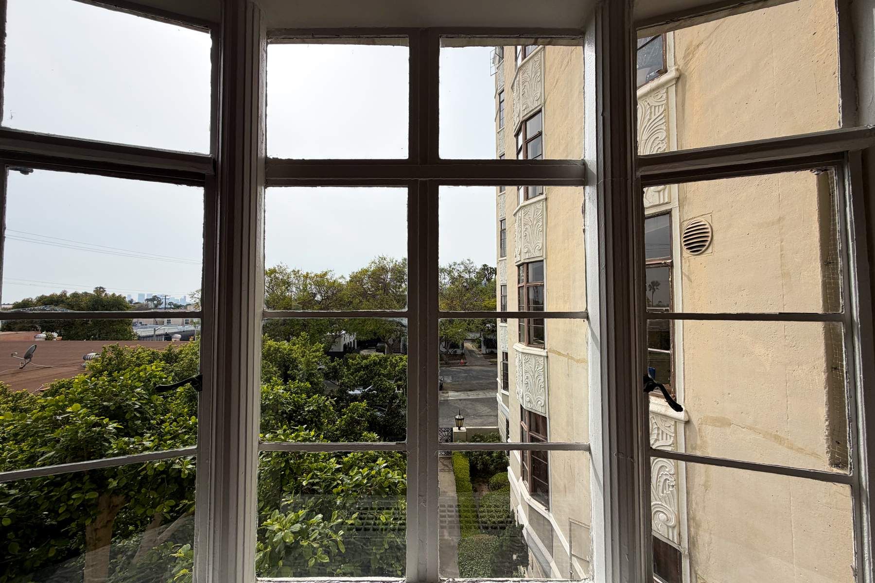 Hayworth Towers, built in 1931, is a fine example of old Hollywood Art Deco Living in the heart of West Hollywood. Restored and Historic, this building features original detail not found in properties of today. This beautiful spacious 3rd floor apartment with a formal foyer has incredible South Western light. The apartment has 2 Bed + 1 Bath - 1,100 + SqFt and great closet space. The very large and spacious living room has a large bay window with views looking West. The bedroom has Downtown Los Angeles skyline views. The hardwood floors are carried throughout along with a formal dining room, all on a tranquil tree-lined street. All utilities are PAID except for internet/cable. 2nd floor accesses a huge community terrace and sundeck. A separate special gated dog run for your 4 legged friends. In a registered historic Art Deco 7 story high rise building in the Center City neighborhood of West Hollywood with a short distance to all restaurants.