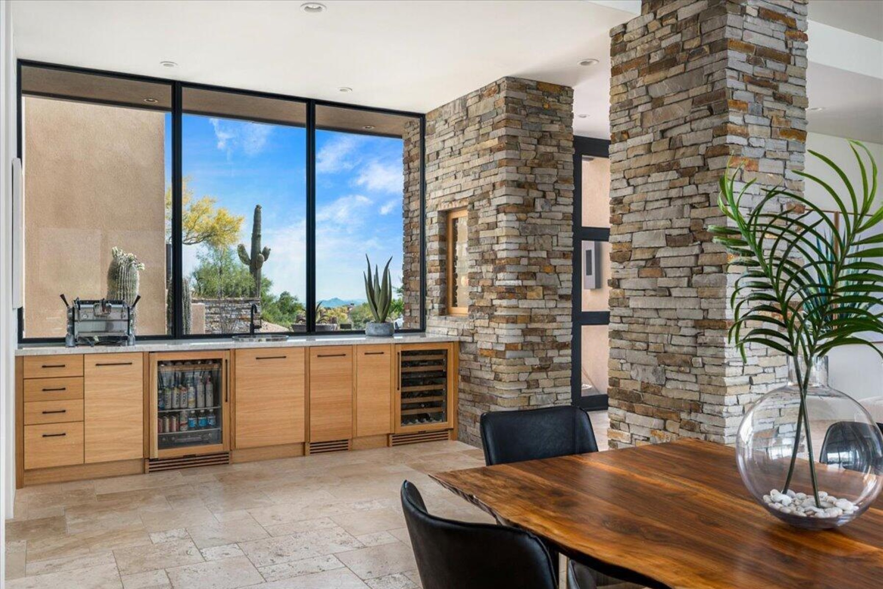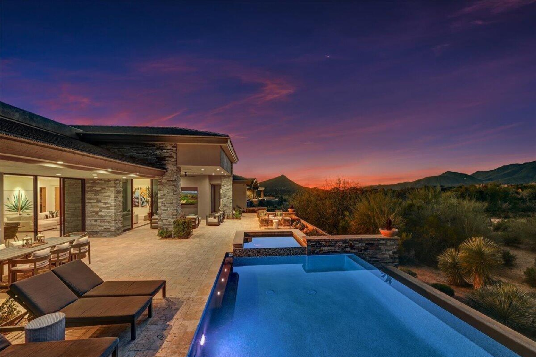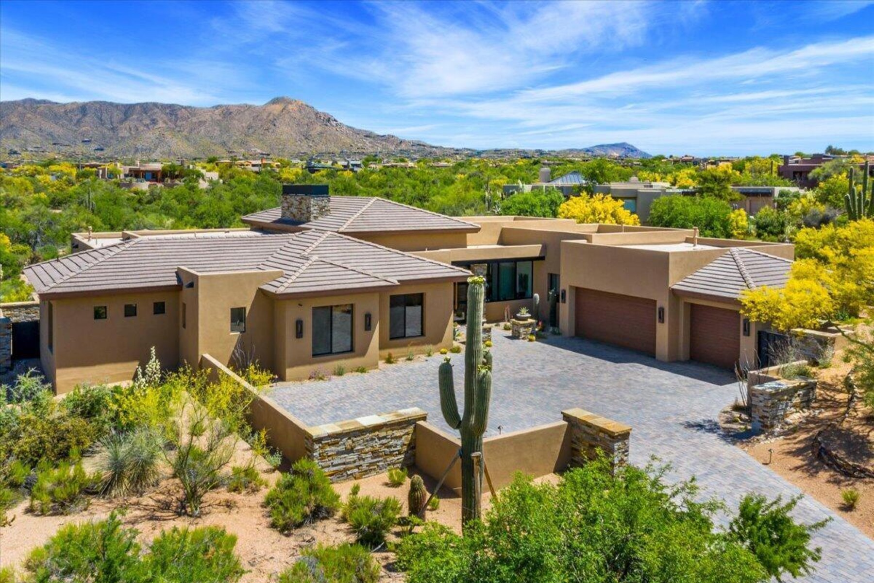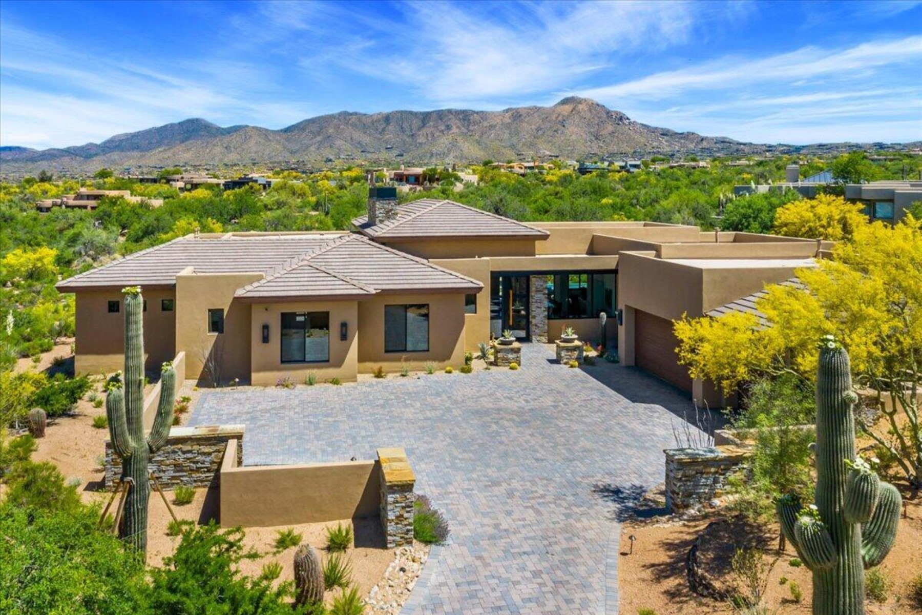 Full GOLF MEMBERSHIP available, providing immediate access to one of North Scottsdale's most coveted private golf experiences. Spectacularly positioned on a quiet cul-de-sac within the prestigious Desert Mountain community, this exceptional residence offers the perfect blend of refined elegance and effortless livability. Thoughtfully designed for both grand entertaining and serene everyday living, the home showcases exquisite craftsmanship throughout. Rich, custom cabinetry and finely curated finishes create a sense of sophistication while offering exceptional functionality and organization. The gourmet kitchen is a true showpiece - designed for the culinary enthusiast -with premium appliances, expansive prep spaces, and a striking wine cellar that adds both drama and distinction. The .. intelligent floor plan features a handsome en suite guest retreat, a dedicated office, and a versatile flex space just off the primary suite--ideal as a private fitness room, yoga studio, or peaceful extension of the owner's retreat. Spa-inspired bathrooms elevate the experience with luxurious materials and calming design. Outdoors, the home transforms into a private desert sanctuary. Backing to open space for enhanced privacy and tranquility, the expansive backyard is designed for year-round enjoyment. A stunning heated pool and spa anchor the setting, while generous patios provide multiple areas for lounging and entertaining--complete with a built-in BBQ, and media space perfect for hosting under the Arizona sky. As part of Desert Mountain, residents enjoy access to world-class amenities, including the renowned Sonoran Clubhouse with exceptional dining, a state-of-the-art fitness center, full-service spa, and an unmatched lifestyle surrounded by breathtaking Sonoran Desert beauty.