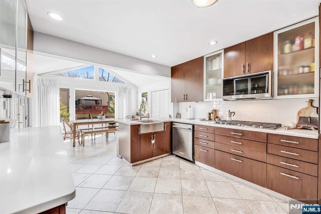 Completely renovated and expanded bi-level in the heart of Paramus, offering a rare combination of space, style, and functionality. With a substantial rear addition, this home stands out as a truly oversized and unique option in todayaEURs market, featuring 4 bedrooms and 3 full bathrooms. The main level features a spacious living room, dining room, and eat-in kitchen with gorgeous cabinetry, brand new countertops, and a large breakfast nook, plus convenient laundry on this floor. A bright and sunny deck, accessible from both the kitchen and dining room, overlooks the beautiful flat backyard, fully fenced for privacy and outdoor enjoyment. This level also offers 3 nicely sized bedrooms and 2 full bathrooms, including a primary suite with its own en-suite bath. The lower level includes a 4th bedroom, 3rd full bathroom, inviting family room, huge gym area, and access to the attached 2-car garage. Large driveway. Absolutely nothing to do but move right into this fantastic Paramus home. Paramus is home to an amazing school system, great shopping, and easy access to major highways and transportation. Do not miss!