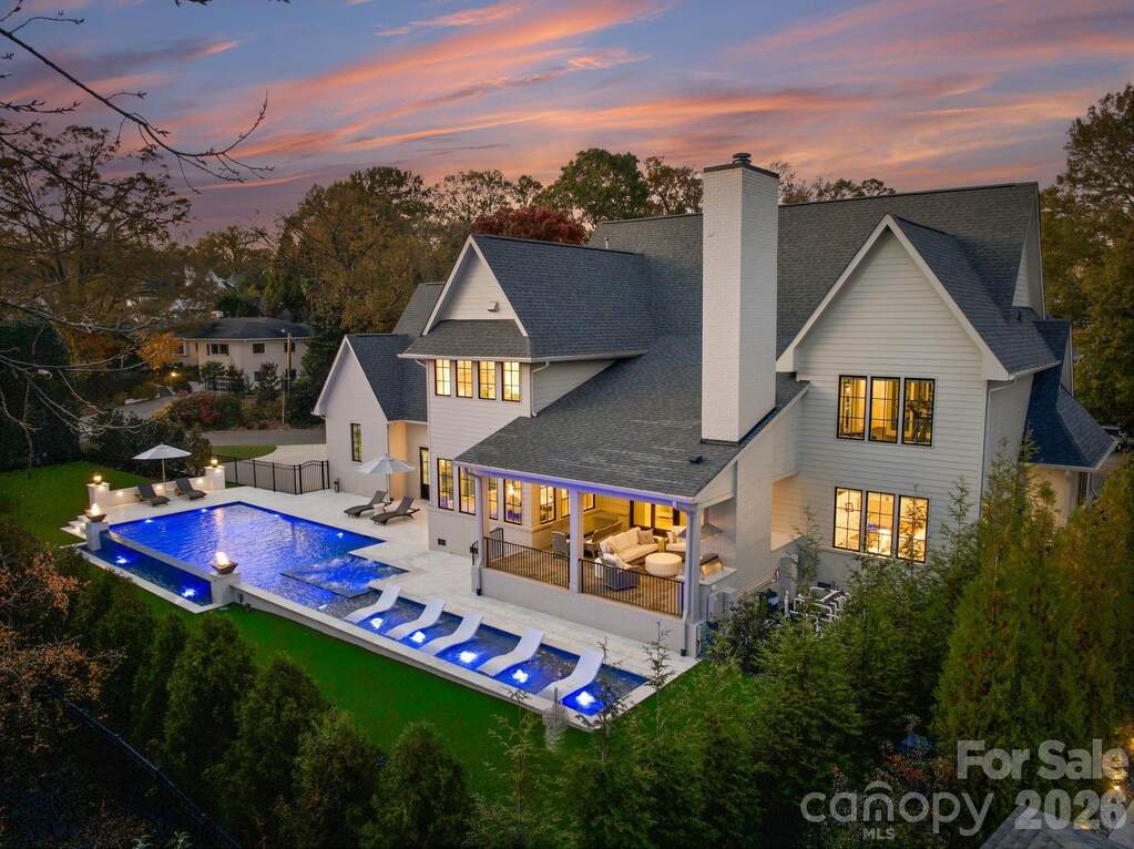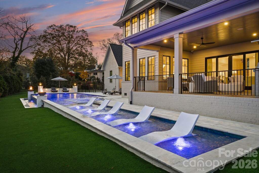 Welcome to an extraordinary modern estate, completed in 2023, in the heart of Myers Park, where refined architecture and modern elegance converge. A grand, light-filled interior unfolds through an expansive open floor plan, anchored by a main-level primary suite and private guest retreat, each designed with a sense of quiet luxury. The primary sanctuary is complemented by a spa-caliber bath, featuring a sculptural soaking tub, marble walk-in shower, dual vanities, and an impeccably designed bespoke dressing room. The culinary space is both striking and functional, centered around a statement white oak island with luminous quartz surfaces and appointed with a suite of professional-grade appliances by Thermador, Wolf, and Sub-Zero. White oak floors extend throughout, while soaring vaulted and coffered ceilings, tailored millwork, and curated designer lighting create a layered and sophisticated aesthetic. Walls of glass invite abundant natural light, enhancing the home's seamless flow and sense of scale. Upstairs, four beautifully appointed bedrooms are complemented by a private study, media lounge, and a flexible fitness or wellness space. Designed for elevated living and effortless entertaining, the covered outdoor terrace features a built in grill, beverage refrigerator, ice maker, fireplace, and integrated heating for year-round enjoyment. The grounds have been transformed with animal friendly turf, a 90-foot in-ground heated saltwater, Pebble Tec, Infinity edge swimming pool, surrounded by sandblasted textured marble and exquisite fire bowls adding a touch of elegance. Home equipped with a WHOLE HOUSE GENERATOR and fully integrated with a Control4 smart home system, offering a seamless and intuitive living experience. Welcome Home! Please see attached features for complete list of extraordinary details!