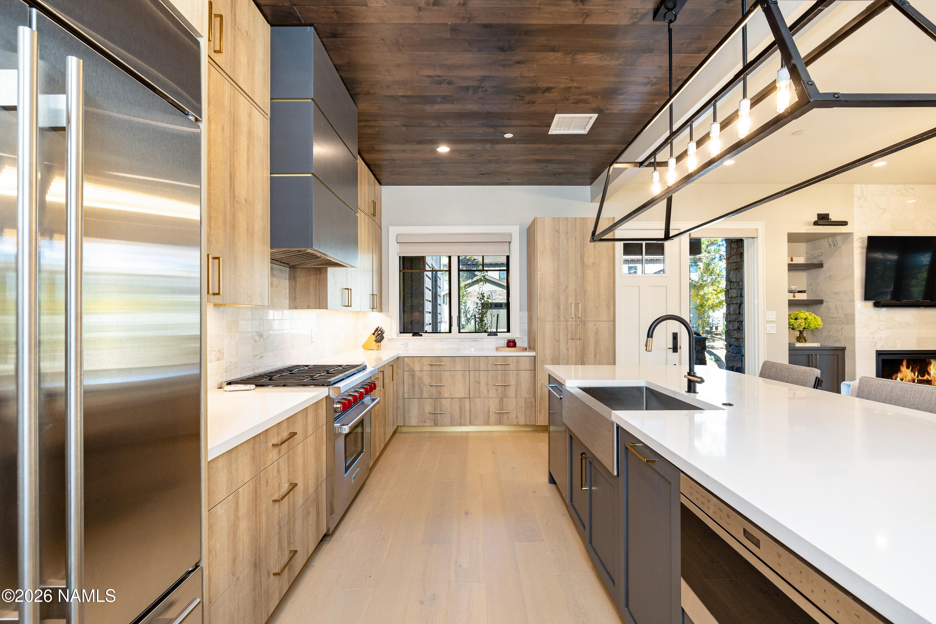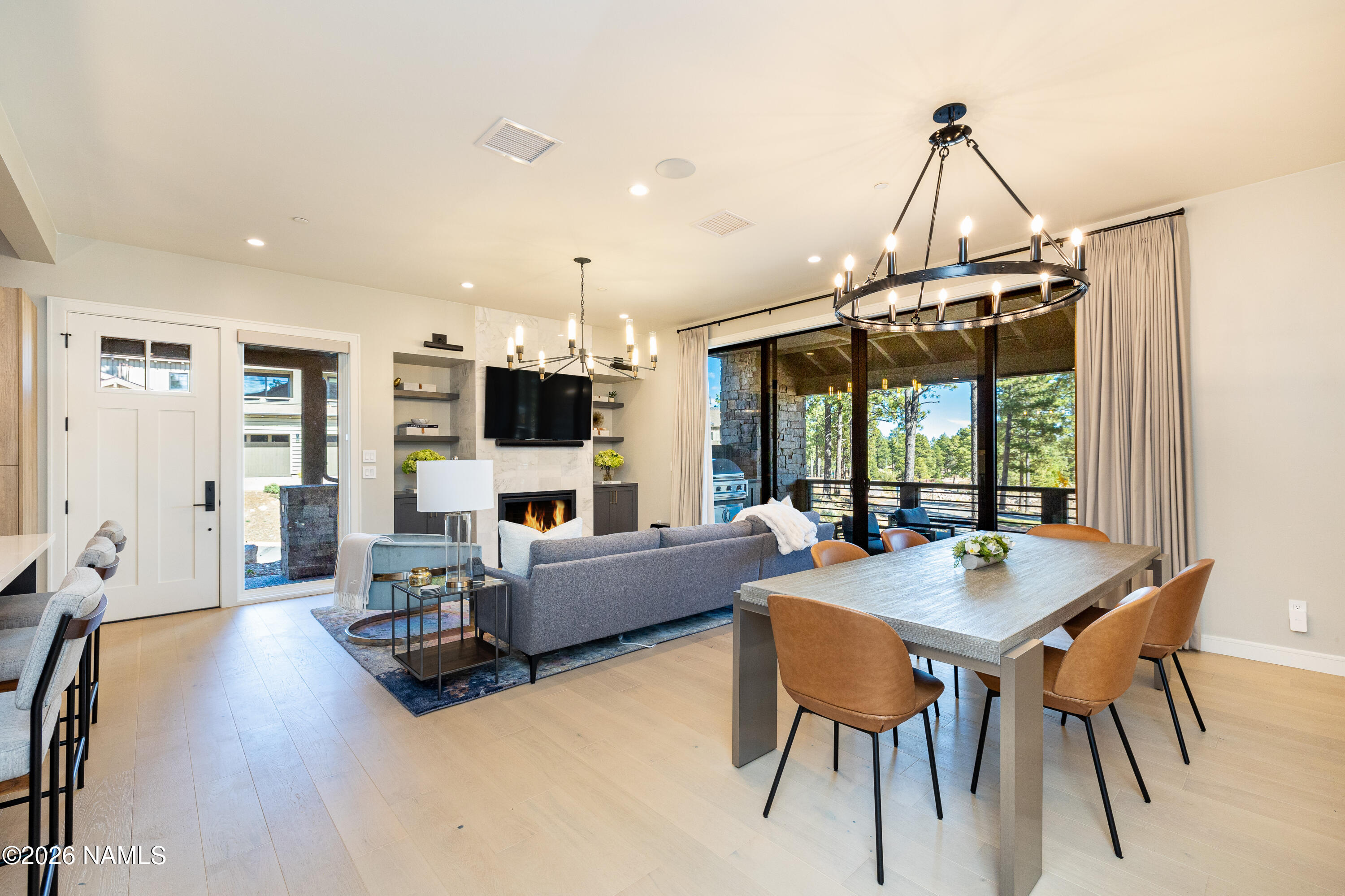 2993 S. Tourmaline Dr Unit #33, Flagstaff, AZ 86005. Welcome to summer! The grass is GREEN and the temps are perfect high 60's and blue skies! Guard gated beautiful Pine Canyon, Mountain Vista delivers a turnkey lightly lived in mountain modern. Two bedrooms including the generous primary with open space, grass and trees separate with an abundance of natural light. The secondary bedroom ensuite and guest casita provides ample space for guests or family. The residence features rock natural gas fireplace, quartz counters, luxurious cabinets and a luxury feel throughout. The two-car garage is attached for all single level living. The covered patio is perched up high for privacy with stainless steel gas BBQ and granite tops, a dog gate for your pets and walking distance to the Clubhouse!