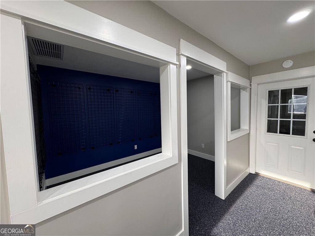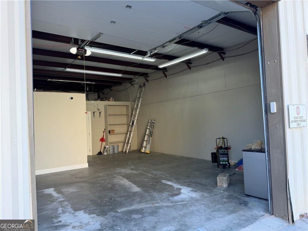 Rarely does a commercial property become available in this area-making this a standout opportunity and an exceptional value. This commercial condo features two showroom style rooms in the front with a bathroom. New commercial carpet squares in showrooms. Entering into the warehouse, there is an Office with door featuring keypad entry. A new 220V electrical panel box installed in garage. Also includes a 10-foot electric roll-up door and AC unit in garage. Monthly Skylane Spaces Association dues are $300 and cover water/sewer, dumpster service, exterior and structural insurance, mailbox kiosk, and common area parking lots. This unit is located on the highly coveted south end of St. Simons Island, where commercial opportunities are exceptionally limited. Easy to show!