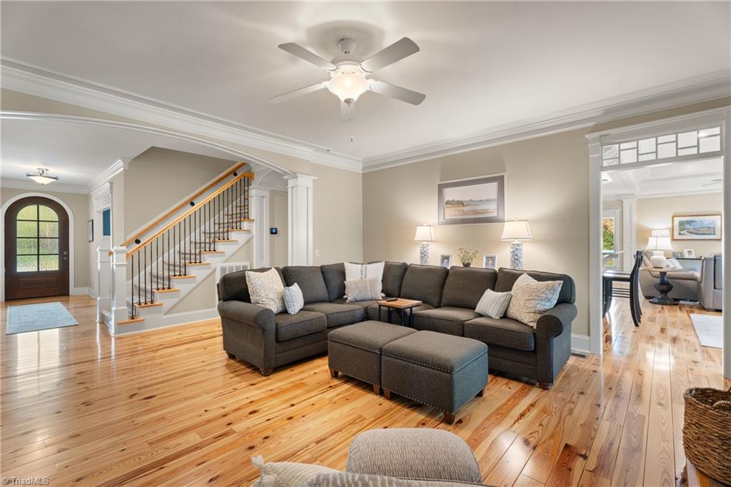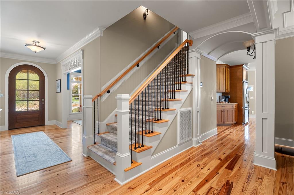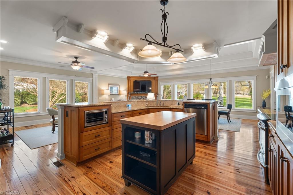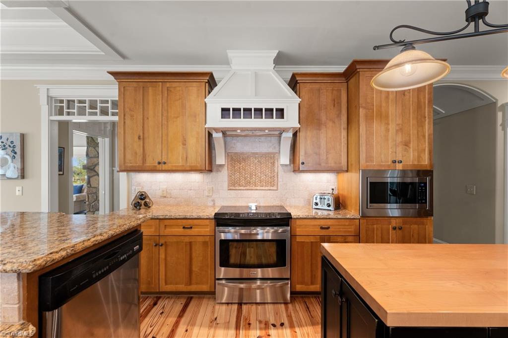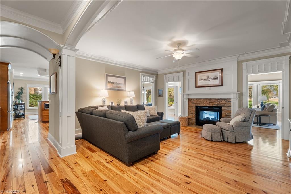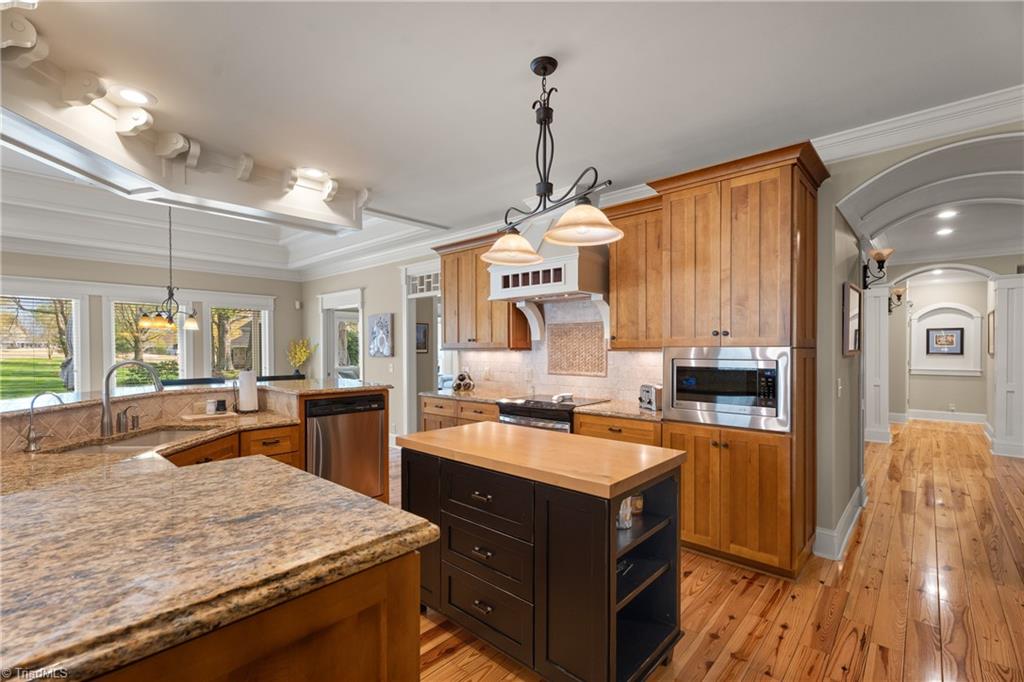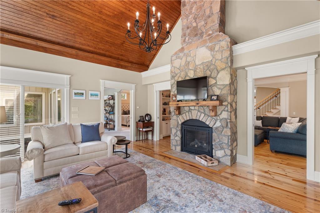 Incredible custom home built by Kent Parker has all of the custom upgrades & finishes he is known for! Stunning pine floors & exemplary custom millwork throughout welcome you into over 3500 SF of MAIN level living. Featuring two, connecting, main level ensuites this floorplan is one of a kind. Luxurious yet comfortable, living room features custom built-ins & double sided gas fireplace shared w/sunroom, where soaring stone fireplace comes to a peak at a vaulted wood ceiling. Open kitchen, keeping & breakfast area features two islands, stone fireplace, walk-in pantry, custom hood, raised dishwasher & two walls of casement windows overlooking the .75 acre lot. Dedicated office, exercise or hobby room, & large walk-in closets w/custom built-ins. 2nd floor features 3rd ensuite! Huge attic for storage and/or expansion. Bonus room w/built-ins. Whole house Generator, barrel & trey ceilings, Roof 2024, 2 HW heaters, Incredible stone patio! BRCC membership NOT reqd. Agent related to seller.