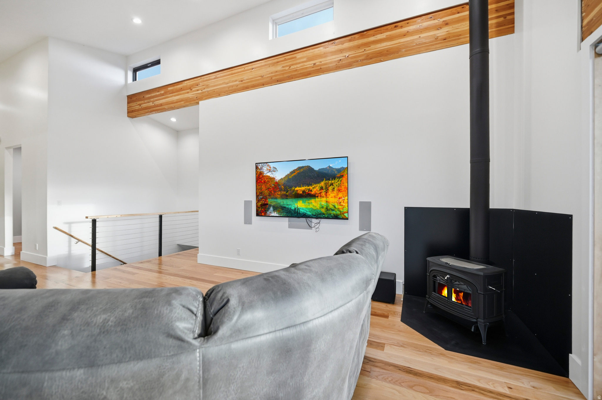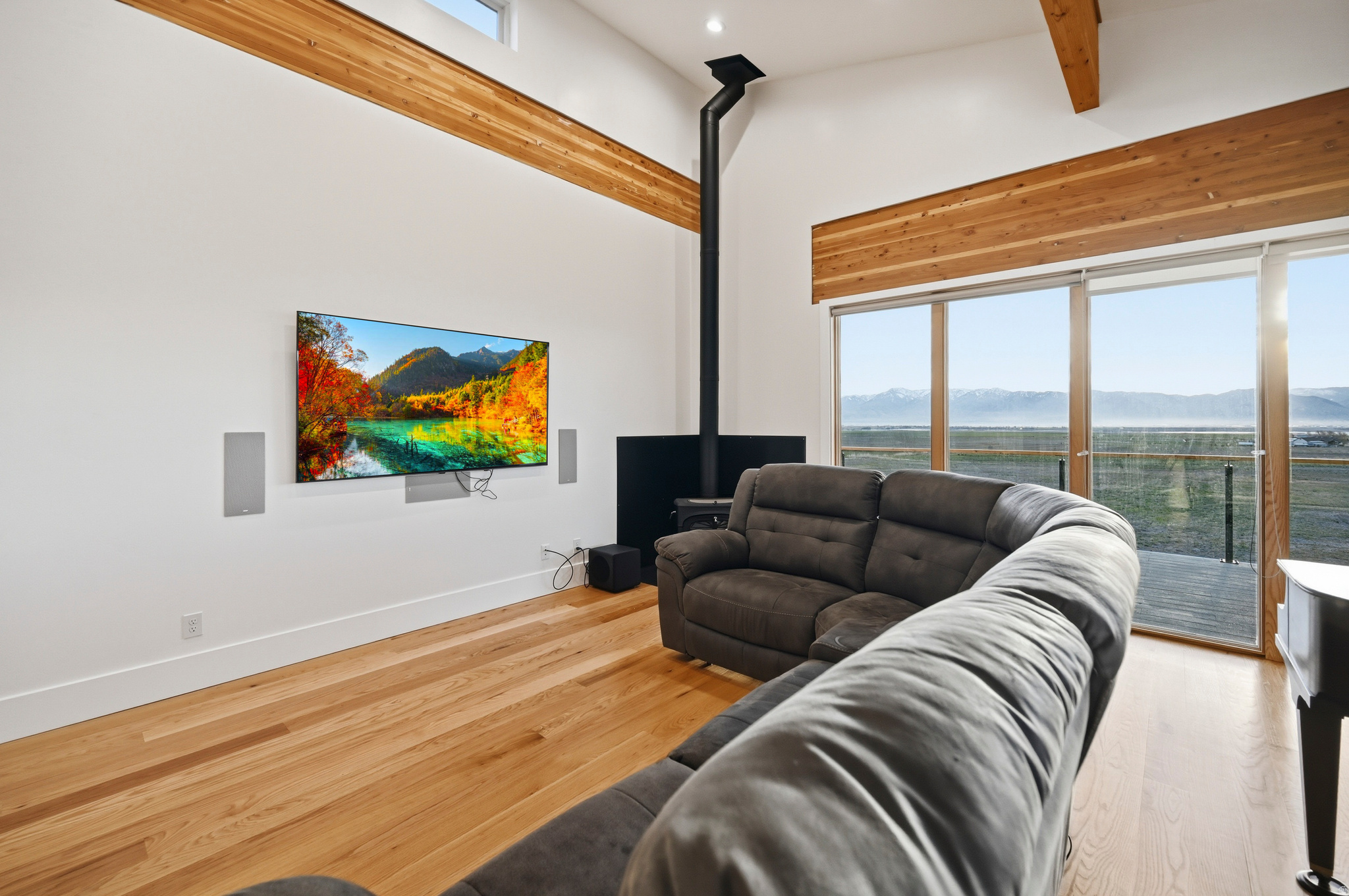 Stunning modern style rambler on 6.05 acres with sweeping views! Thoughtfully designed 4,021 sq ft home with 3/4" thick red oak hardwood flooring, vaulted ceilings, and an open great room with abundant natural light is anchored by a Vermont Castings wood burning stove perfect for both everyday living and entertainment. Gourmet kitchen includes quartz countertops, 6-burner gas cooktop with pot filler, double ovens, and a butler pantry for added storage and functionality. Spacious owner's suite with walk in closet, has a bath with dual vanities, LVP flooring, separate water closet, and walk in shower. Bedroom 2 offers ample room as well as a walk in closet. Oversized 3 car attached garage is wired for EV charging. Unfinished basement offers room to expand; proposed plans available. The exceptional 2,400 sq ft heated shop: 2x6 construction on monolithic slab, 12' walls, fully insulated (R 60), bathroom, W/D hookups, 400 amp power, and two 10' x 10' bays ideal for hobbies, business use or serious storage needs. Covered RV parking with hookups. This home is a rare blend of modern comfort, quality construction, and wide open space with unbeatable views. Buyer to verify all.
