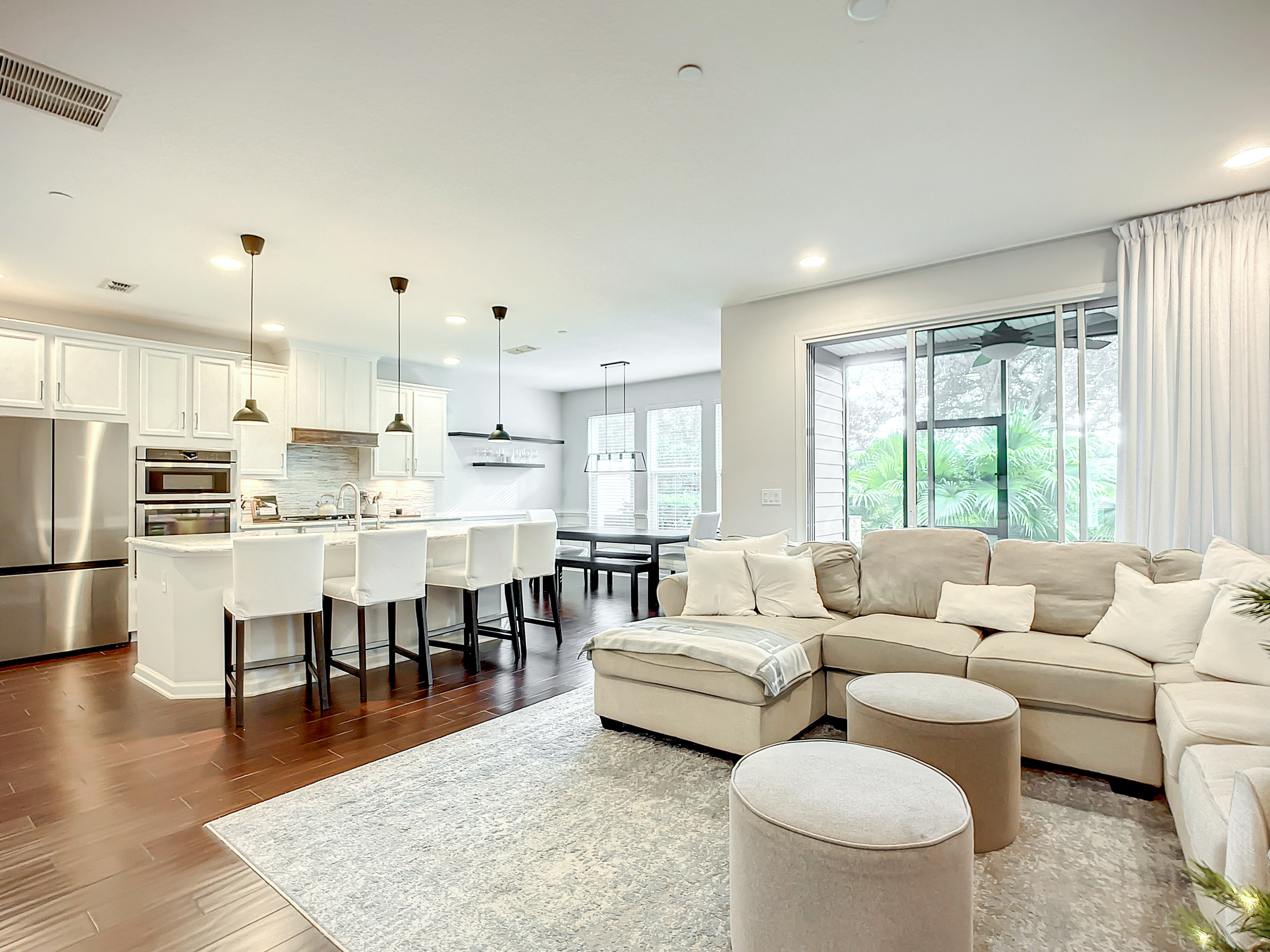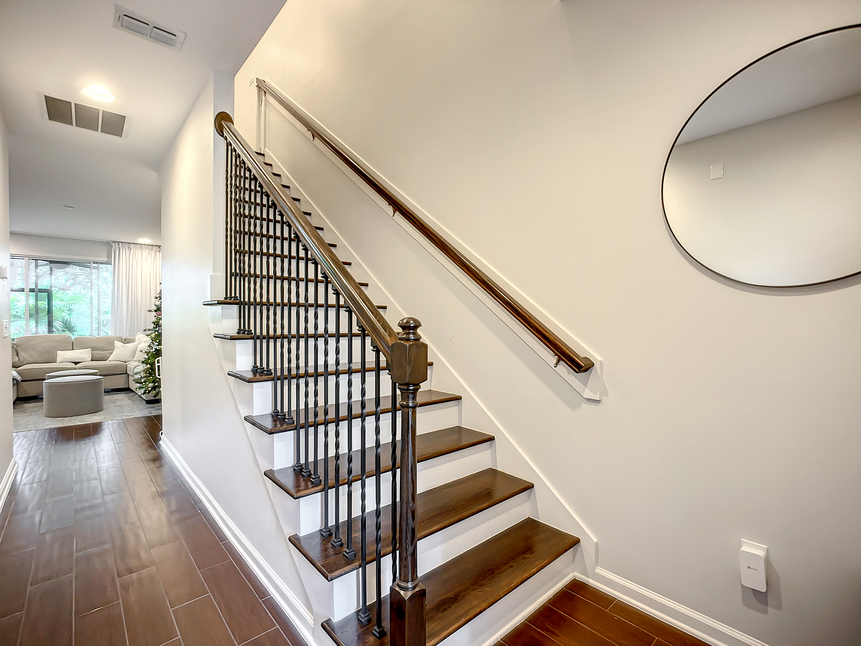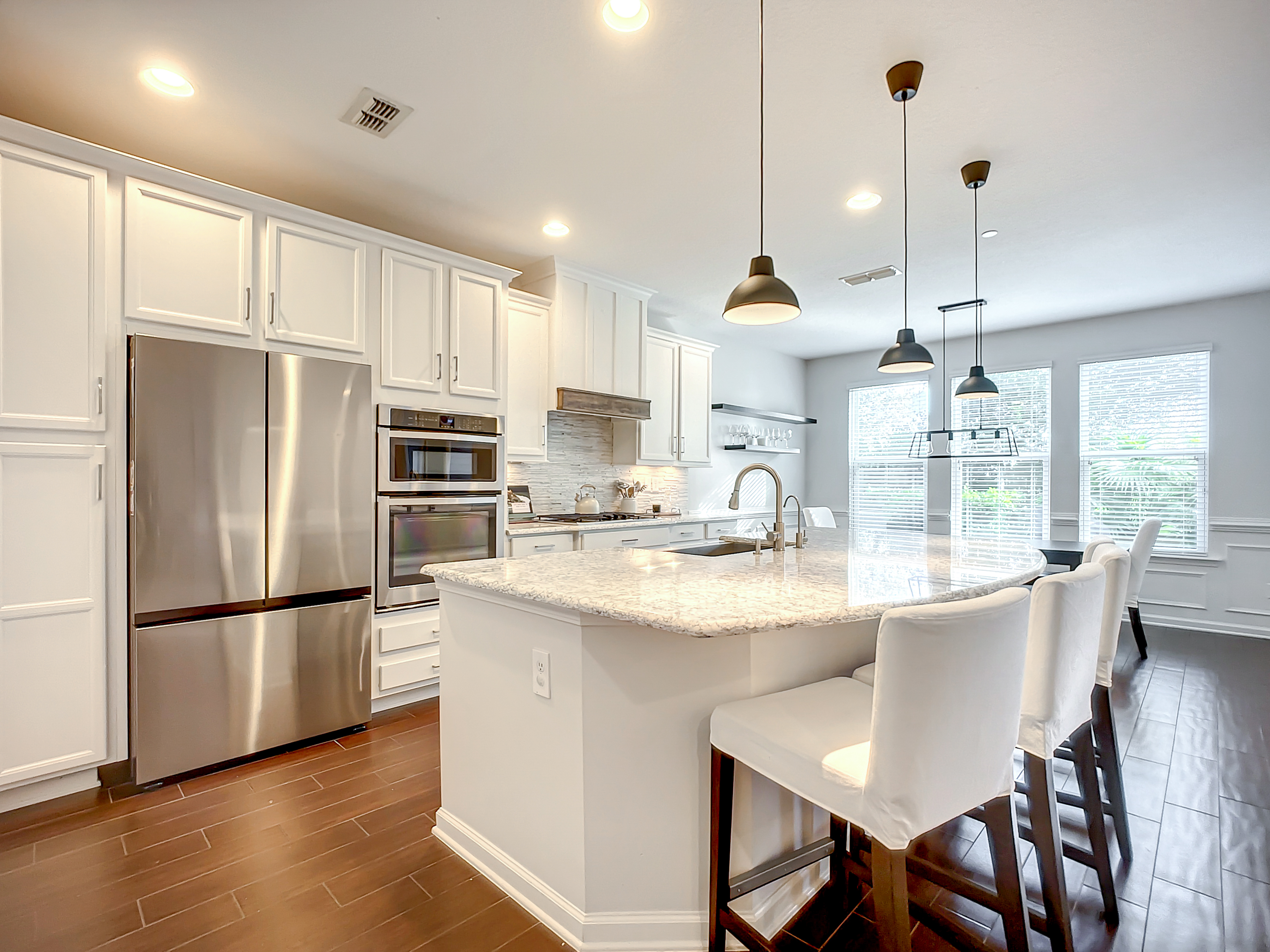 Experience elevated living in this beautifully upgraded 3-bedroom, 2.5-bath townhome located in Willowcove at Nocatee, one of Ponte Vedra's most sought-after master-planned communities, zoned for top-rated Palm Valley Academy.Designed with both style and functionality in mind, this residence features an open-concept floor plan enhanced by wood-look tile flooring, designer trim details, and a cozy gas fireplace that anchors the main living and dining spaces. The chef-inspired kitchen showcases granite countertops, stainless steel appliances, natural gas cooking, 42-inch custom cabinetry, and a spacious walk-in pantry -- ideal for everyday living and effortless entertaining.Upstairs, a versatile loft provides flexible space for a home office, media lounge, or play area. The spacious primary suite offers tray ceilings, a spa-like ensuite bath with soaking tub, separate walk-in shower, and a large custom walk-in closet system. Two additional bedrooms and a well-appointed laundry room with built-in cabinetry, washer, and dryer included complete the second level.Enjoy private outdoor living from the screened lanai overlooking a serene park setting with walking trails and a playground, creating a rare sense of privacy and green space. Additional highlights include a two-car garage, extended driveway parking, and an installed Tesla charging port.Ideally positioned within walking distance or a short golf cart ride to Nocatee Town Center, Splash and Spray Water Parks, community parks, dining, shopping, and fitness amenities, this home offers a true resort-style lifestyle in Northeast Florida's premier community.