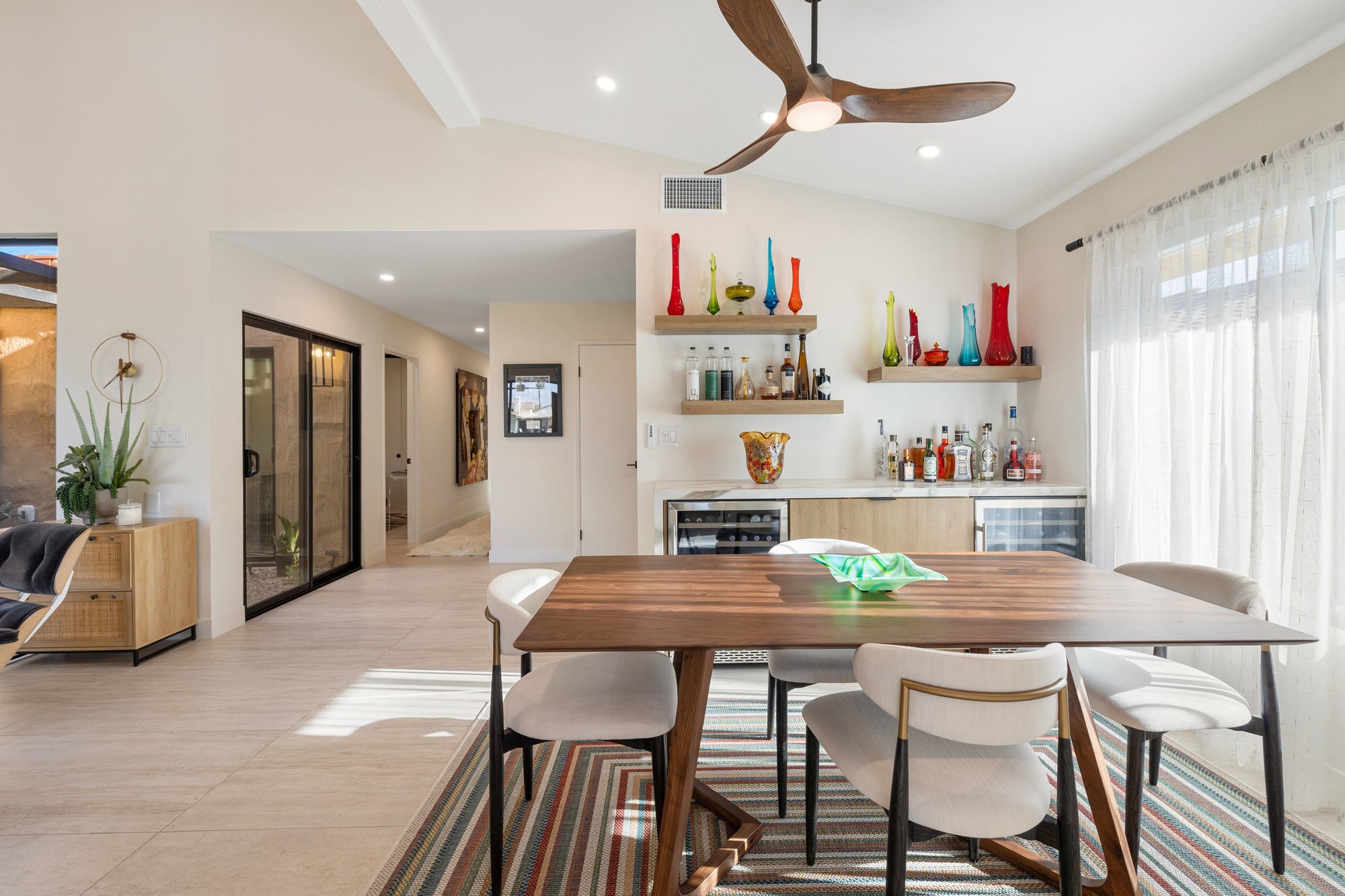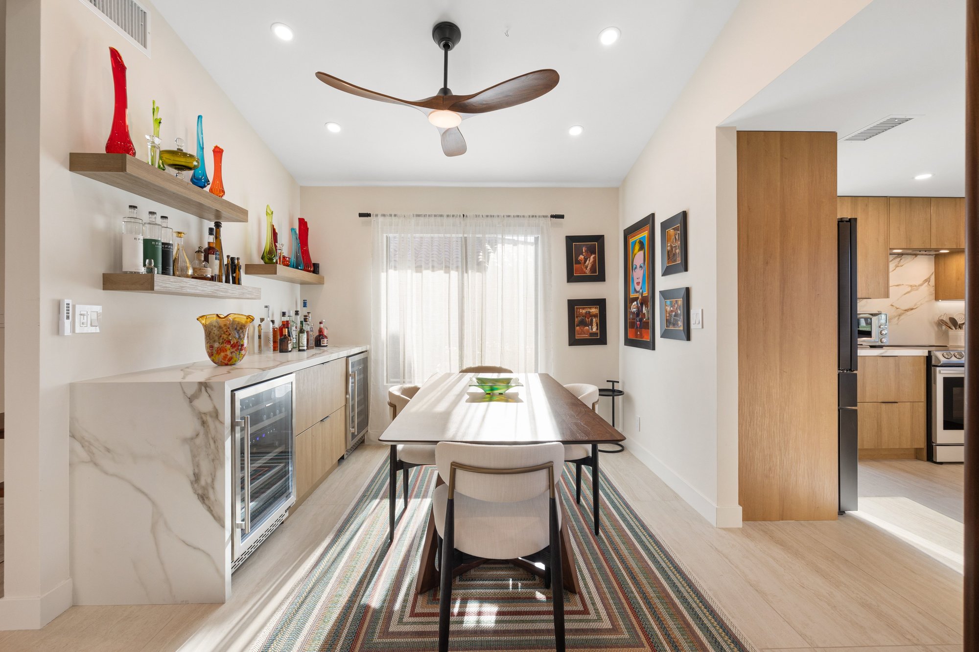 Additional upgrades include a custom dry bar with dual wine refrigerators, floating bathroom vanities,