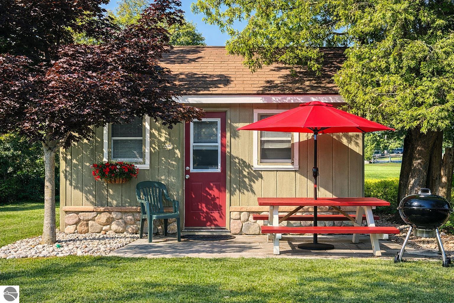 Cedar Ridge Cabins is a charming 8-unit cabin resort located in the village of Honor, just minutes from Sleeping Bear Dunes National Lakeshore and the Lake Michigan shoreline. The property features a mix of studio and one-bedroom cabins across three buildings, offering updated interiors with classic Up North appeal. Amenities include private decks, outdoor seating areas, WiFi, DIRECT ACCESS TO THE PLATTE RIVER and a welcoming setting for guests seeking a Northern Michigan getaway.----- The improvements total approximately 3,700 square feet and include a large office area, game room, and a front garage space with potential for retail or additional business use. Situated on nearly 5 acres, the property offers a spacious, park-like environment with plenty of room for the guests.---- Ideally located near the Platte and Betsie Rivers, Crystal Lake, and within easy driving distance to Traverse City, Frankfort, Glen Arbor, and Empire, this property benefits from strong tourism traffic and repeat clientele. The area is known for its outdoor recreation, scenic beauty, and vibrant seasonal economy. Offered at $750,000 for the cabin resort, with the option to purchase the adjacent owner/manager home for a combined price of $950,000 and a total of almost 10 Acres, providing a complete live/work Northern Michigan investment opportunity.