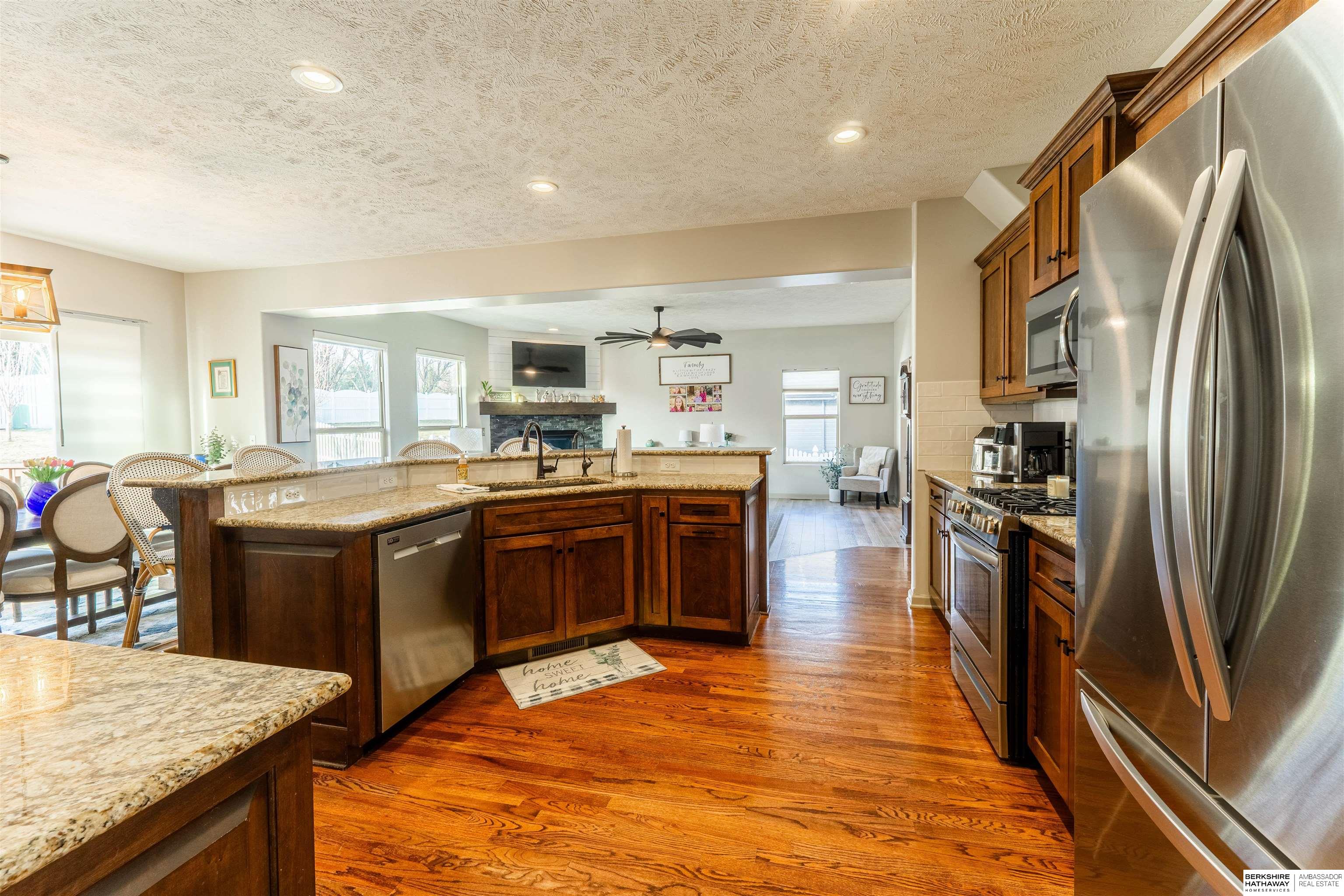 OPEN HOUSE Saturday 4/4 ,115p-245PM* Expect to be impressed w/ this impeccably well cared for & loved 5 br in popular Millard West that backs to no neighbors & boasts large fenced yard w/ huge composite deck perfect for entertaining & kids/dogs! You'll love the open flr plan! Kitchen has granite, an abundance of cabinets, stainless apps & HUGE walk-in pantry! Large/functional mudroom for a busy and large family off the oversized 3 car garage. 2nd flr laundry, large primary suite w/ his/her walk-in closets, nice size kids rooms w/ walk-ins. Incredible lower level has 5th conforming guest suite, wetbar, stunning 3/4 bath w/ ample amount of built-ins. High efficient hvac &water softener round out some of the functional features of this gem! MUST SEE!!