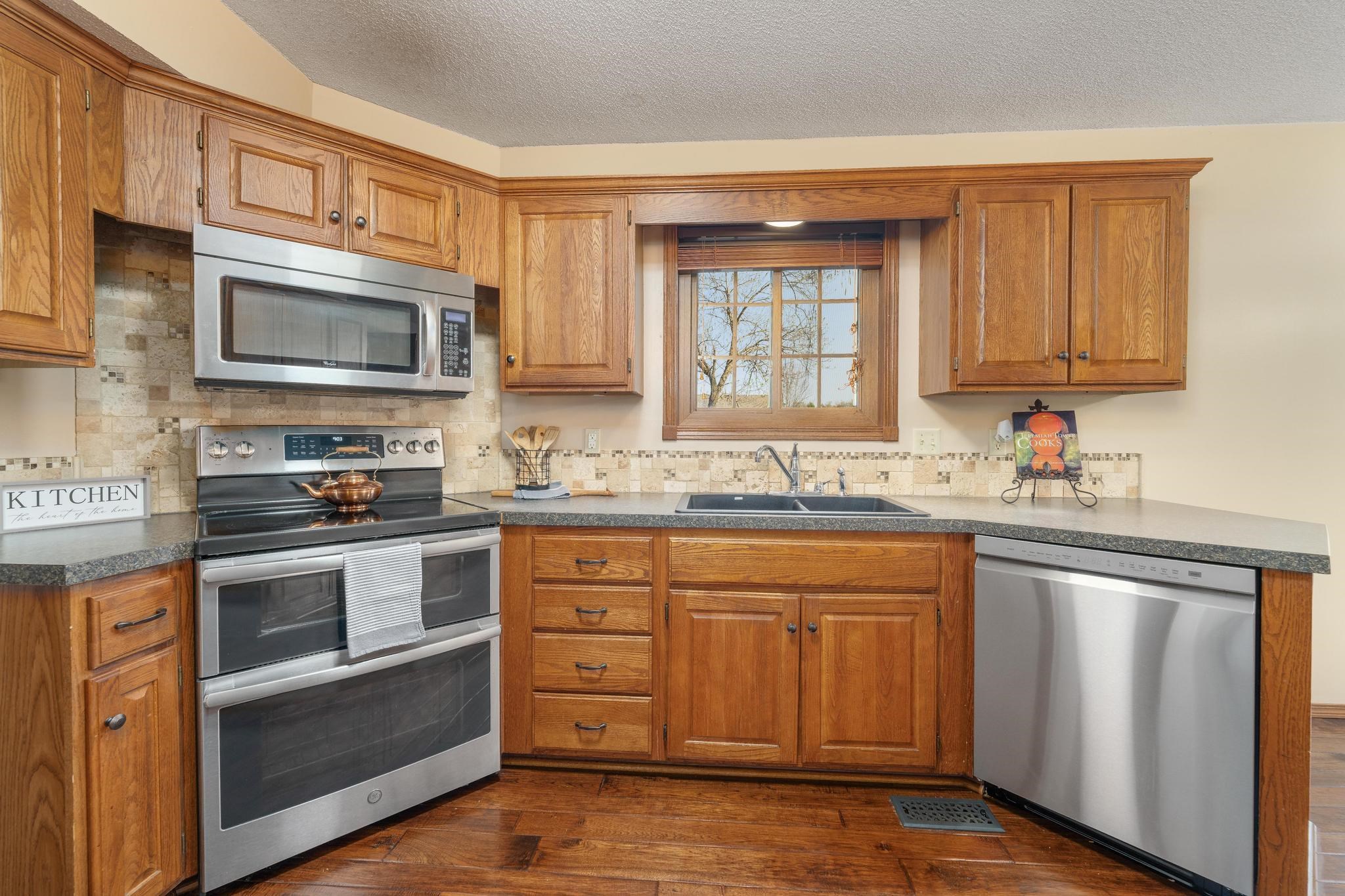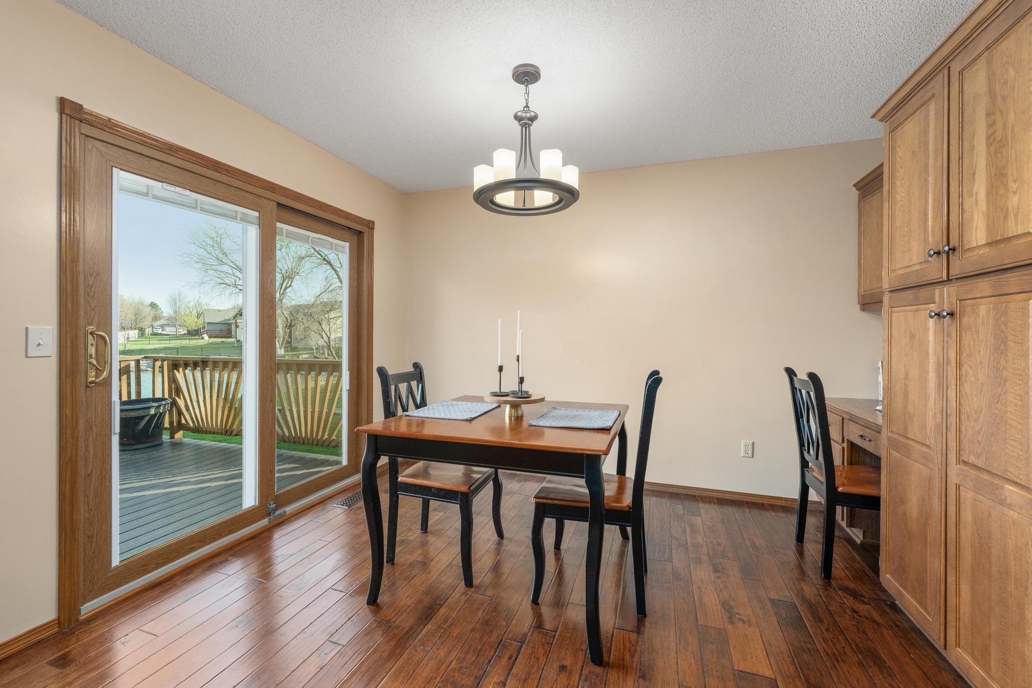 Welcome to your serene lakeside retreat lovingly maintained by a single owner and ready for its next chapter! This spacious 4-bedroom, 3-bath home offers the perfect blend of comfort, functionality, and scenic beauty. Inside you'll find fresh interior paint throughout, including the garage, and a thoughtful layout that includes convenient main floor laundry, a generous living space, and two dining spaces designed for both everyday living and entertaining. Enjoy peace of mind with a brand-new roof scheduled for installation next week, along with a deck that was beautifully replaced just three years ago. Ideally located just minutes from Derby High School, as well as restaurants and shopping, this home offers the perfect balance of peaceful lakeside living with quick access to everyday conveniences.