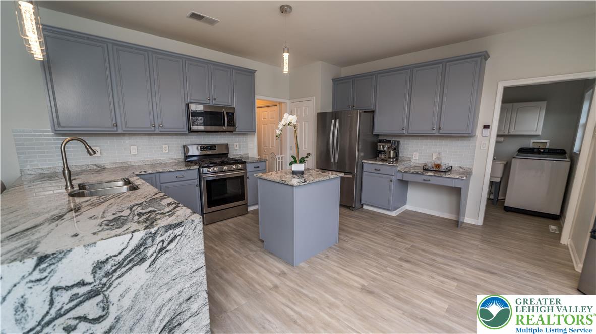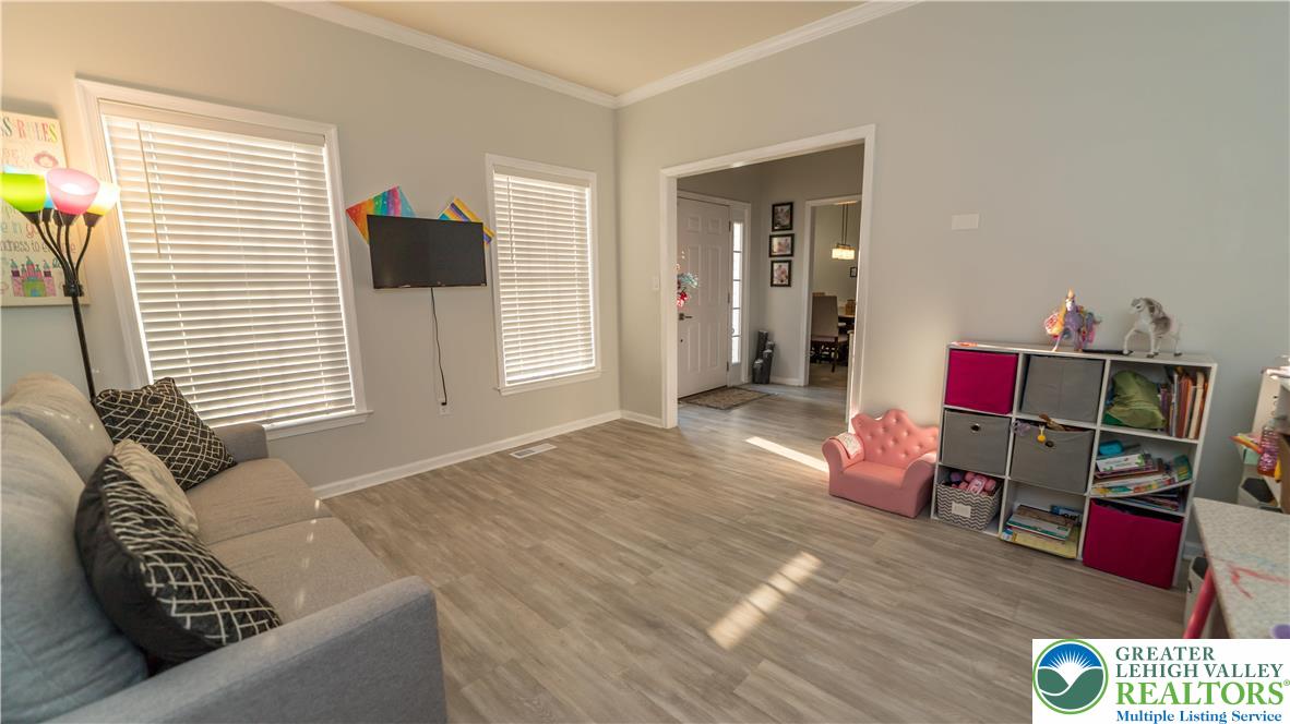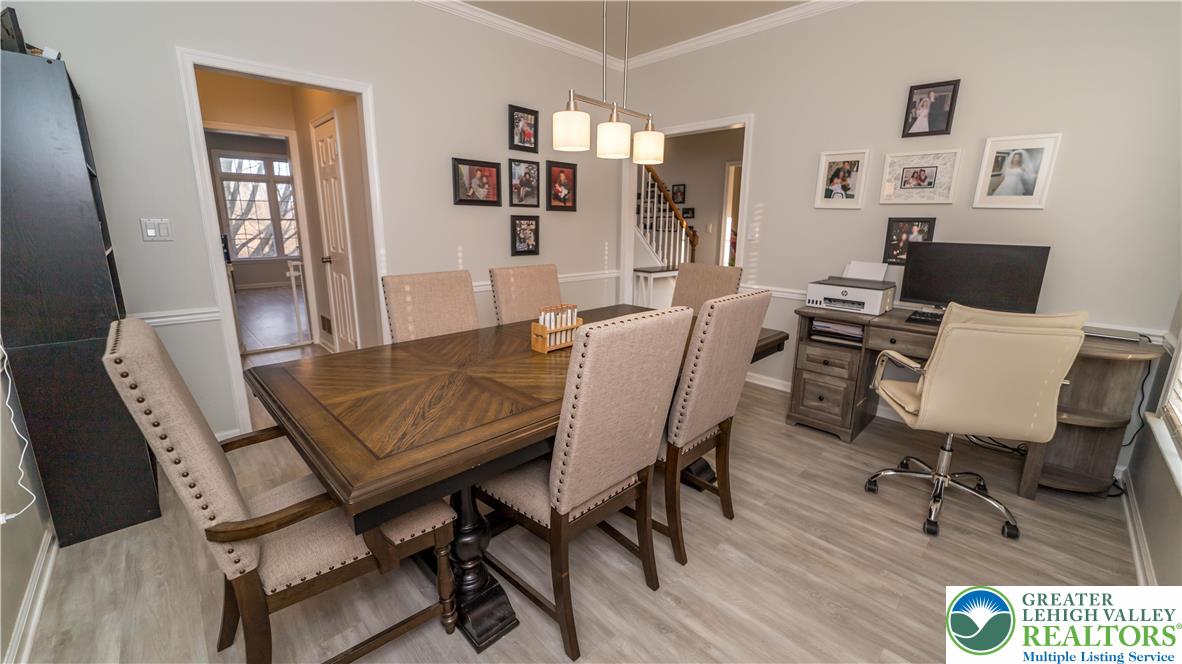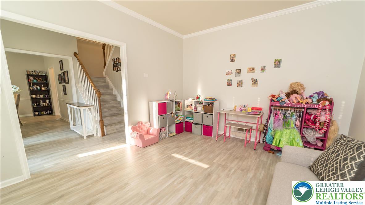 Imagine coming home to a quiet street in desirable Forks Township, where space, updates, and lifestyle come together seamlessly. This beautifully updated 4-bedroom, 2.5-bath colonial offers a layout designed for both comfortable living and effortless entertaining. The heart of the home is the updated kitchen featuring GRANITE countertops, tile backsplash, STAINLESS steel appliances, refreshed cabinetry, and a striking WATERFALL-EDGE peninsula with seating, complemented by a separate center island for additional prep space. The kitchen flows naturally into the family room, highlighted by a cozy GAS FIREPLACE insert, creating the perfect gathering space. A separate dining room and front flex room offer versatility for work-from-home needs, playroom, or additional living space. Upstairs, retreat to the spacious primary suite, complete with a walk-in closet, a spa-like bath featuring a JACUZZI jetted tub, a separate shower, and dual sinks with waterfall faucets. Three additional bedrooms provide flexibility for family, guests, or an optional office/flex space. New hardwood flooring extends throughout the entire second level, adding warmth and elegance. The unfinished DAYLIGHT BASEMENT offers approximately 1,100 square feet with triple windows and 9-foot ceilings, providing abundant natural light and flexible space already usable for recreation, storage, or future finishing. Bump-out areas maximize storage flexibility. Step outside to the fully FENCED BACKYARD with beautiful VIEWS, 6-foot vinyl privacy fencing, and a deck - perfect for entertaining, relaxing, or enjoying outdoor space. This home has been extensively updated, including NEW ROOF (2022), updated kitchen and bathrooms, new flooring throughout, fresh interior paint, updated lighting and fixtures, gas fireplace insert, security system with cameras, and more. NATURAL GAS heating and cooking add additional comfort and efficiency. Located just minutes from parks, shopping, dining, commuting routes, and approximately 13 miles of walking and biking trails, this move-in ready home offers the perfect combination of convenience, comfort, and lifestyle.