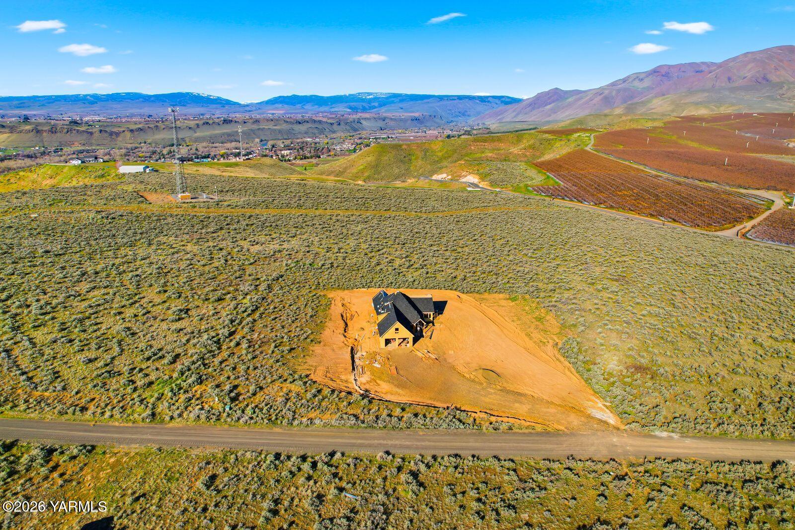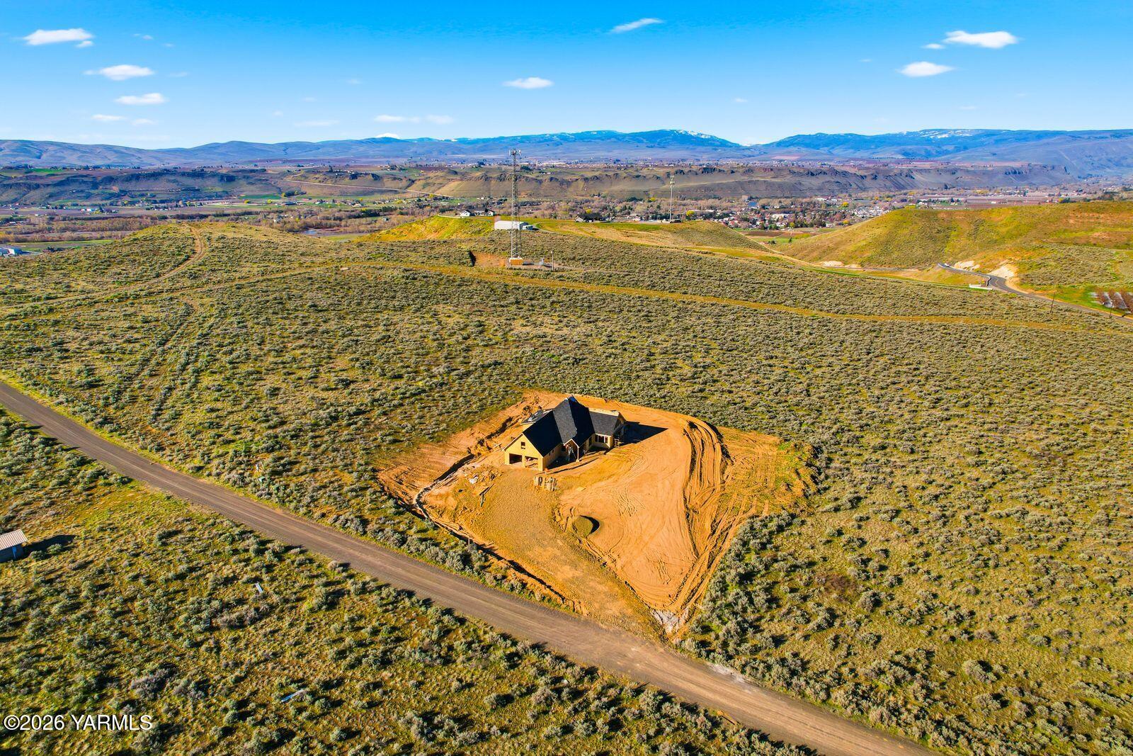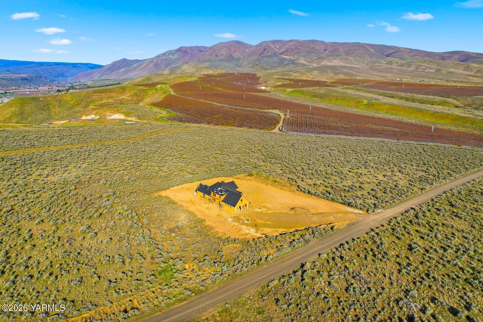 Located in the newly established Harvest View Estates, this custom home offers an exceptional blend of luxury, privacy, and convenience. Situated on 2 acres perched atop the grade between Naches and Selah, the property captures breathtaking 360-degree views, including surrounding mountain passes and Mt. Clemans, while remaining just 3 minutes to Naches and 12 to Yakima, but it feels like a world away.This thoughtfully designed floor plan features just shy of 3,000 square feet with vaulted ceilings in the open-concept kitchen, living, and dining areas, complemented by 10-foot ceilings throughout the remainder of the main level. Expansive windows and sliding glass doors in the living room create a seamless indoor-outdoor connection and frame the surrounding views, with both front-facing and covered patio space for year-round enjoyment.The gourmet kitchen is equipped with high-end appliances, a gas range, a large island with seating, and a walk-in pantry. A nearby wet bar enhances the home's functionality for entertaining. The main level includes a split-bedroom design, with a private primary suite offering a spa-inspired bathroom featuring a dual vanity, a custom copper grounding soaking tub, steam sauna shower with LED lighting, and a spacious walk-in closet. An additional bedroom, full bath, utility room with sink, and office complete the main floor, while the upper level provides a third bedroom, full bath, and bonus living space.Additional features include luxury vinyl plank flooring in main living areas, tile bathrooms, carpeted bedrooms, an oversized two-car garage with extra depth for storage or recreational vehicles, and attractive stucco and stone exterior finishes with cedar tongue and groove inlaid ceilings at the entry and covered patio. Estimated completion is July, with the opportunity for buyers now to work with the builder on selecting and customizing finishes. Contact a Realtor today for more information about this home or the future development