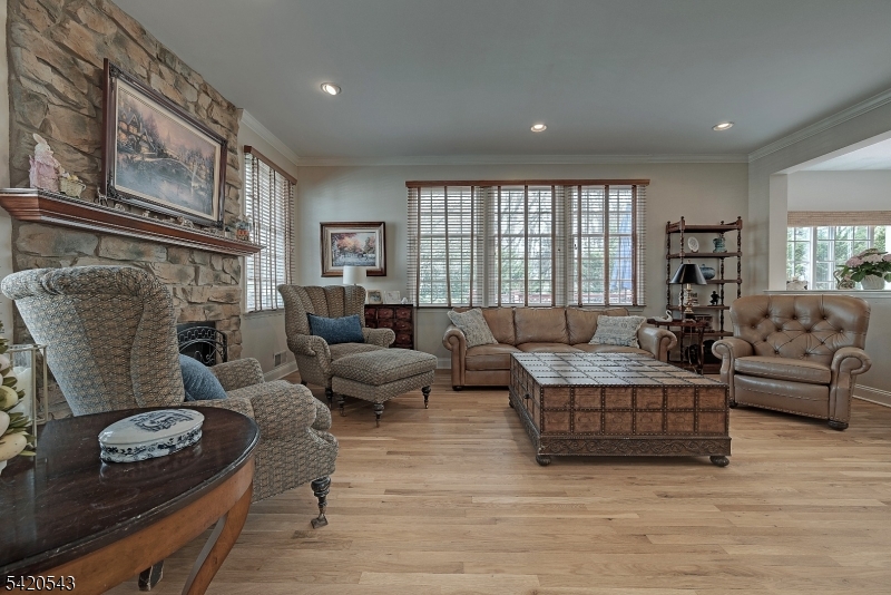 Nestled on a cul de sac, this stately and beautifully maintained colonial perched on meticulously manicured grounds is not to be missed. The dramatic 2 story entry (gorgeous walls are painted not wallpaper) welcomes you into this 5 bedroom, 3 full bath home perfect for entertaining. Brand new hardwood floors on first floor (Feb 2026), eat in kitchen with island and granite countertops, formal dining room, living room, and family room with fireplace. A bedroom/den, full bath and laundry room completes the first floor. Primary bedroom with high ceiling, updated bath (3 yrs) and walk in closet with door to additional storage. Large finished basement spans width of the house and offers plenty of storage. . **BRAND NEW ROOF AND GUTTERS just installed on 3/29/2026 with lifetime guarantee. This beauty is located close to school, parks, shopping, town pool.