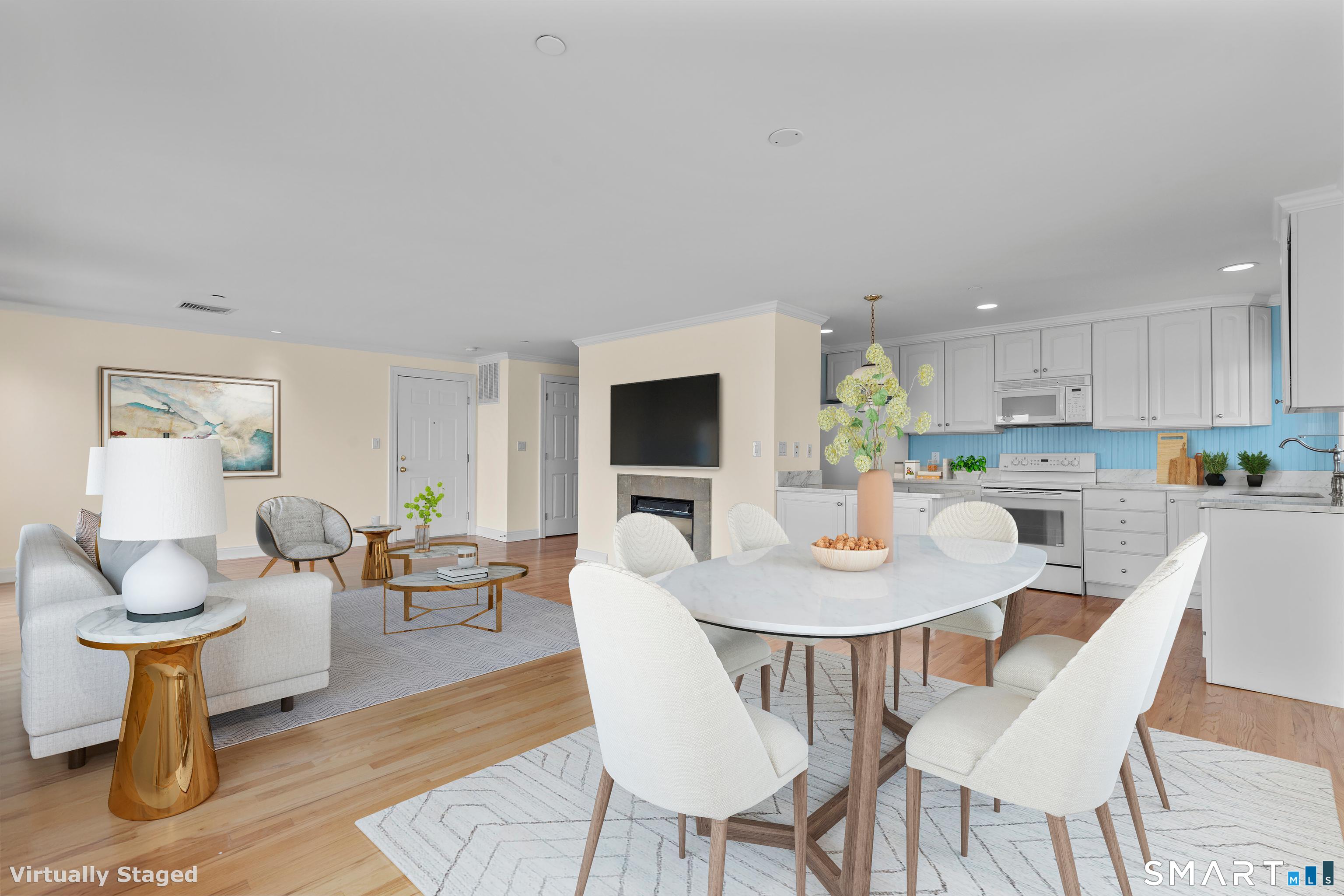 Indulge in exceptional coastal living at Villa D'Oro! Set on a private sandy beach, a boutique waterfront community offering sweeping views of the Long Island Sound. Built in 2001, this well-maintained building combines modern comfort with an effortless shoreline lifestyle. This sun-filled end unit showcases an open-concept design, where the living room, dining area, and kitchen flow seamlessly together, all framed by expansive windows capturing breathtaking water views. Hardwood flooring runs throughout the main living spaces, while the bedrooms feature brand-new carpeting.The primary suite serves as a peaceful retreat, complete with a spacious ensuite bath featuring a soaking tub, separate shower, and double sink vanity. A generously sized guest bedroom and an additional full bath provide ideal space for family or visitors. Step outside to your private balcony to enjoy the coastal breeze, perfect for morning coffee or sunset cocktails. C/A and gas heat ensure year-round comfort. Additional amenities include elevator access, a two-car tandem garage with extra storage, and direct access to the beach. Conveniently located to shops, restaurants, I-95, Merritt and train station (2.5miles) this is a rare opportunity to own along one of the area's most sought-after stretches of coastline, where everyday day feels like a getaway!