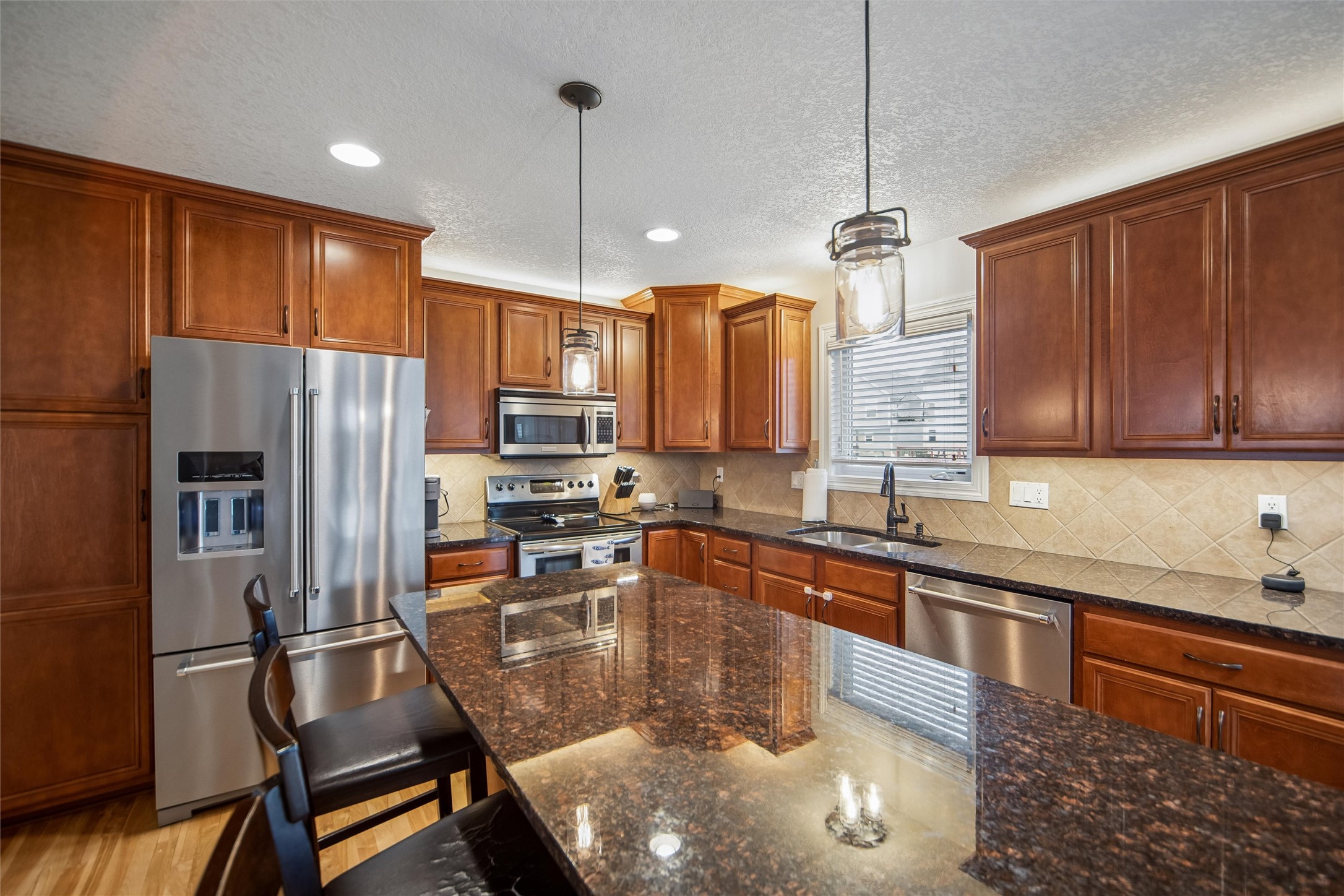 Welcome to modern comfort in this impeccably maintained 2-story home, perfectly situated in a prime Urbandale location near Webster Elementary and Des Moines Christian, Boasting over 2450 sq ft of finished living space, this 4-bedroom, 4 bath residence greets you with a charming covered porch and sundrenched tiled entry. The heart of the home features rich hardwood floors connecting a spacious living area to a chef-inspired kitchen - complete with premium granite countertops, a subway tile backsplash, and stainless appliances. Retreat upstairs to the primary suite, where tray ceilings and a spa-like ensuite with a dual-sink granite vanity and custom tile shower await. The finished lower level is an entertainer's dream, featuring a recently remodeled family room with a wet bar and full bath. Peace of mind comes standard with a newer roof installed in 2021 and a whole home air purifier. Step outside to your expansive deck (new in 2025) and flat, private and fully fenced backyard, ready for summer gatherings!