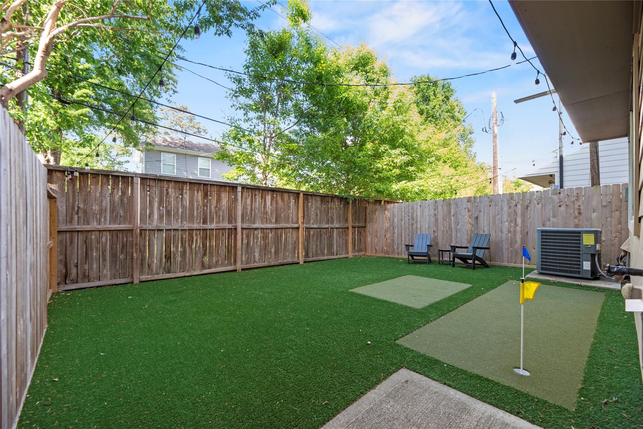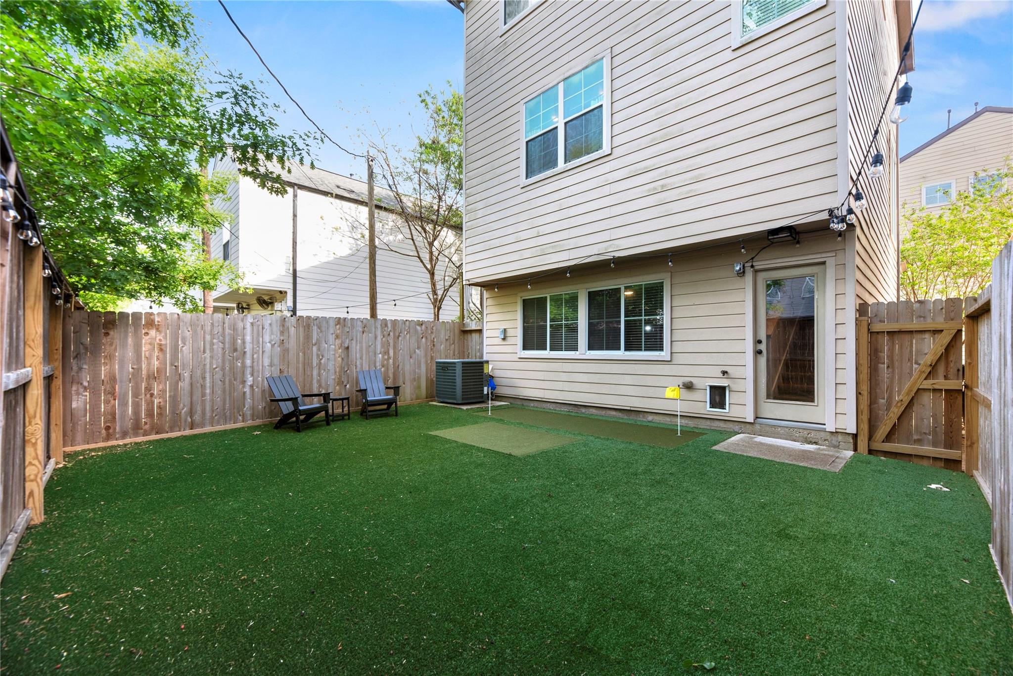 Nestled in a charming gated community, this stunning 2 bed/2.5 bath home is just steps away from top-tier dining, breweries, shops, and scenic trails. With high ceilings and ample natural light, the spacious layout is perfect for entertaining. The third floor boasts two large bedrooms with private baths, while the first floor offers a versatile room leading to a fenced backyard. Ideal for an office, playroom, or guest quarters. Enjoy the video tour and photos of this never-flooded property. Zoned for Garden Oaks Elementary, with a cozy turf field backyard and your own putting green for a relaxing evening.