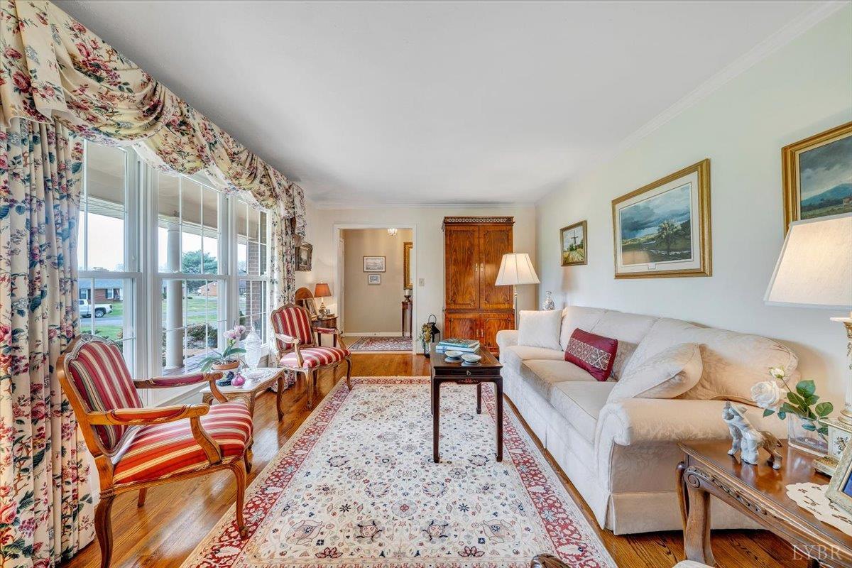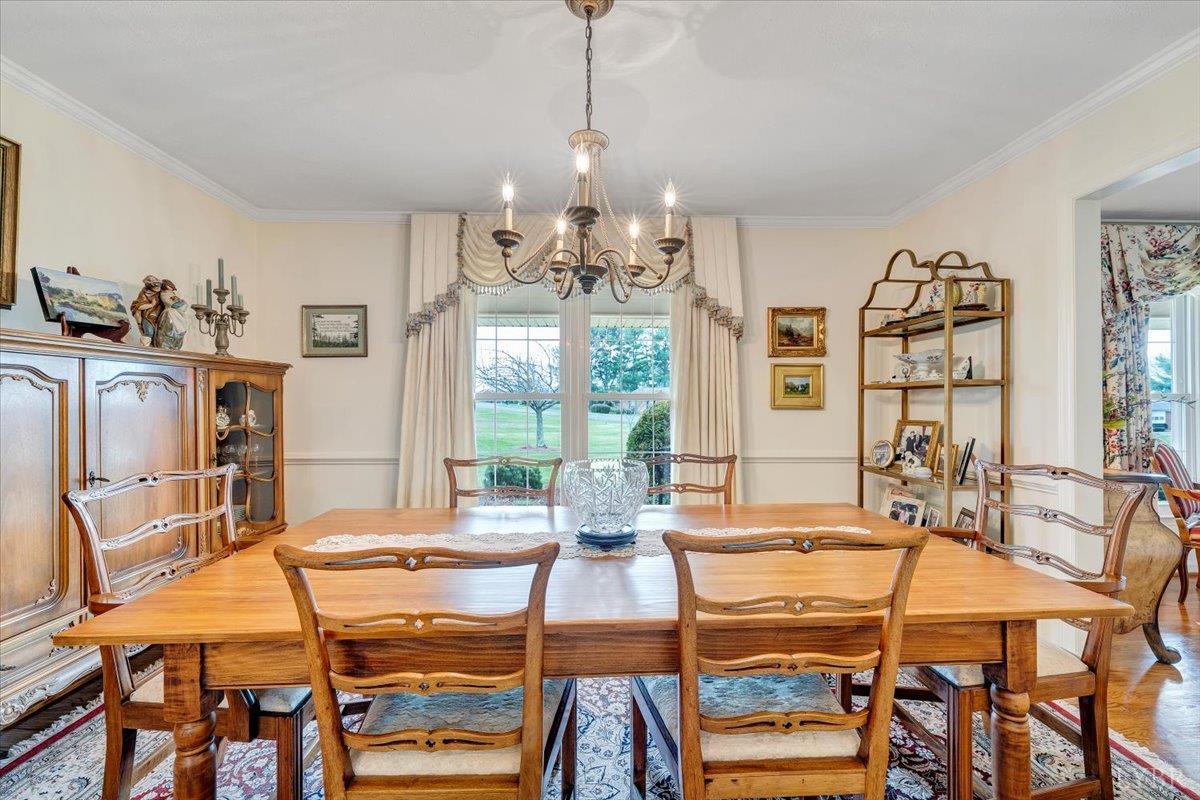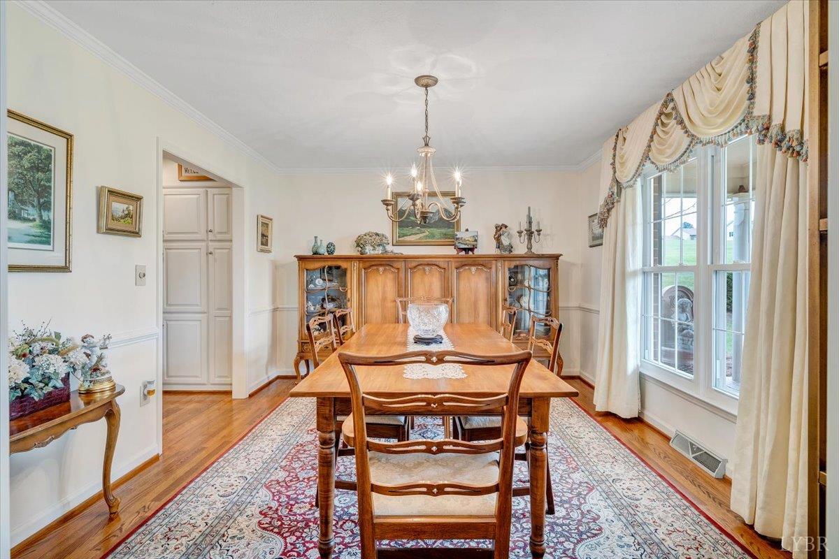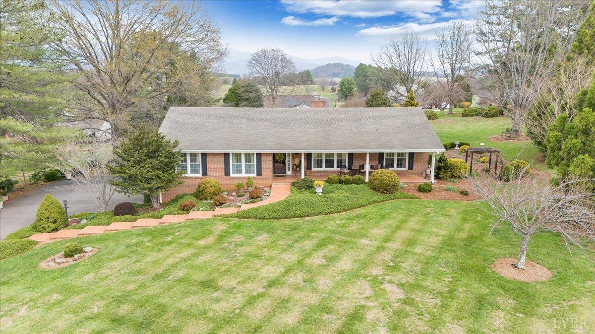 Nestled on a spacious, park-like acre in an in-town setting, this beautifully maintained brick ranch offers the perfect blend of comfort and timeless appeal. The inviting interior features formal living and dining rooms, along with a warm and welcoming family room with a fireplace- ideal for relaxing or gathering with guests. The kitchen provides generous space for everyday living and casual dining (there's even a laundry closet), while the adjoining sunroom is filled with natural light, creating a peaceful retreat year-round. The primary suite offers a private escape with its own bath, while additional space on the lower level includes a large rec room with fireplace, built-ins, ample storage and a dedicated laundry area- perfect for entertaining, hobbies or convenience. Step outside to enjoy the backyard with beautiful mountain views, offering the perfect setting for gatherings or quiet evenings. This well-cared-for home is ideally located close to town amenities.
