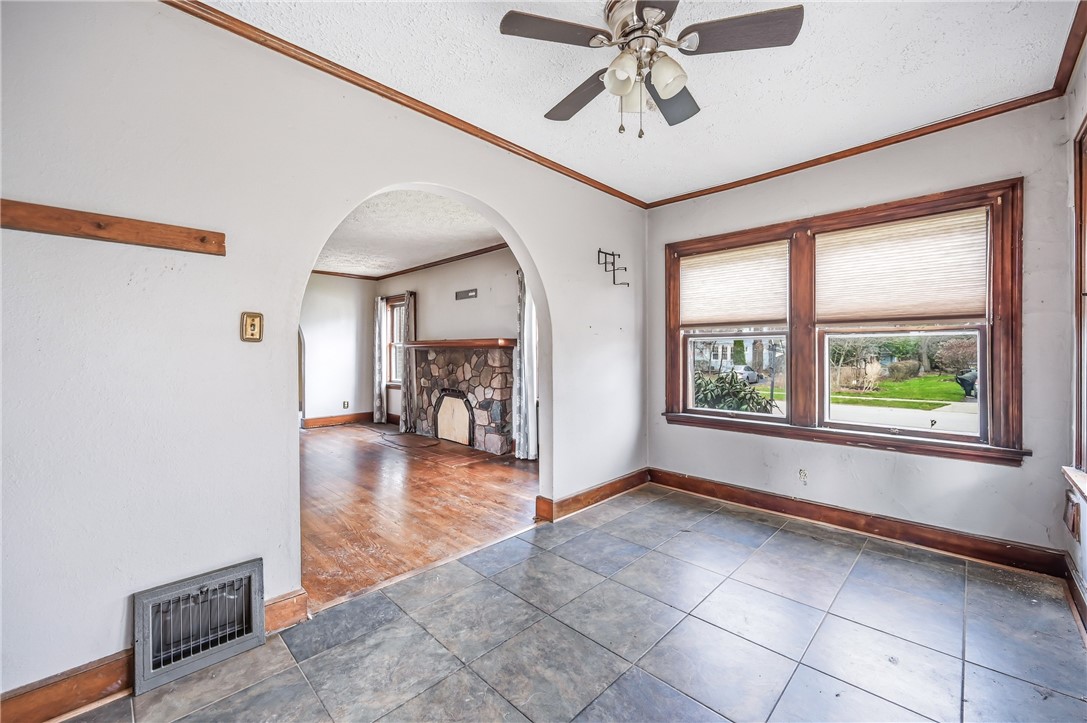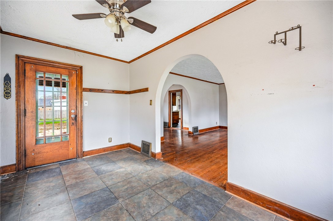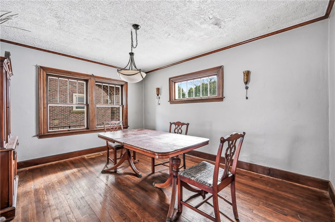 Welcome home to this classic brick 4 bed 2.5 bath home in the heart of Sharon just blocks from Buhl Park! You'll be greeted by a charming rounded doorway that opens to a home filled with original hardwood floors and beautiful woodwork. The foyer leads to a spacious living room with a sunroom - perfect for an office or playroom - with a charming door to a quaint side porch. A formal dining room is ideal for gatherings, while the kitchen offers room to expand. The impressive family room features high ceilings and stunning built-ins, plus a half bath completes the main level. Upstairs, you'll find a large owner's suite with an additional room off of it and full bath, along with three more bedrooms and another full bath. A full basement adds extra storage. Outside, enjoy a private backyard, or take advantage of nearby Buhl Park for outdoor fun. This home needs some love, but with great bones, timeless character, and an unbeatable location, this home is ready for someone to make it their own!