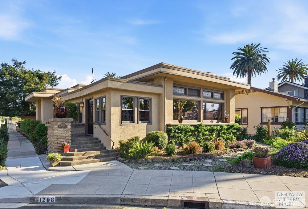 Located in the coveted Shasta Hanchett Park neighborhood within San Jose's Rose Garden district, 1208 Martin Avenue is an architecturally distinctive 1916 2BD/2BA residence offering approximately 2136 sq ft of living space on an approximately 3838 sq ft corner lot, per public tax records. The home reflects Prairie-style influence with strong horizontal lines, broad eaves, and timeless architectural character. A formal entry/library leads to an expansive living room with fireplace and abundant natural light. Period details including hardwood floors, crown moldings, stained glass, and built-ins continue into the formal dining room. A bright breakfast room connects to a functional kitchen with ample cabinet and counter space. The home's private bedroom wing at the rear features 2 bedrooms and 2 bathrooms, including a primary suite with sitting room, plus a second bedroom served by a hall bath. A separate bonus office or hobby room off the kitchen adds flexibility. Interior utility/laundry room provides access to the rear yard and partical basement with additional storage options. The private rear grounds feature gated off-street parking, low-maintenance hardscape with gardening opportunities, and a large detached storage/workshop. Generally move-in ready, the home offers opportunity for updates over time. Ideally located near local shopping, dining, schools, The Municipal Rose Garden, The Alameda, Santana Row, Valley Fair, and major employers and commute routes. A rare opportunity to own a distinctive early 20th century residence in one of San Jose's most appealing residential enclaves!