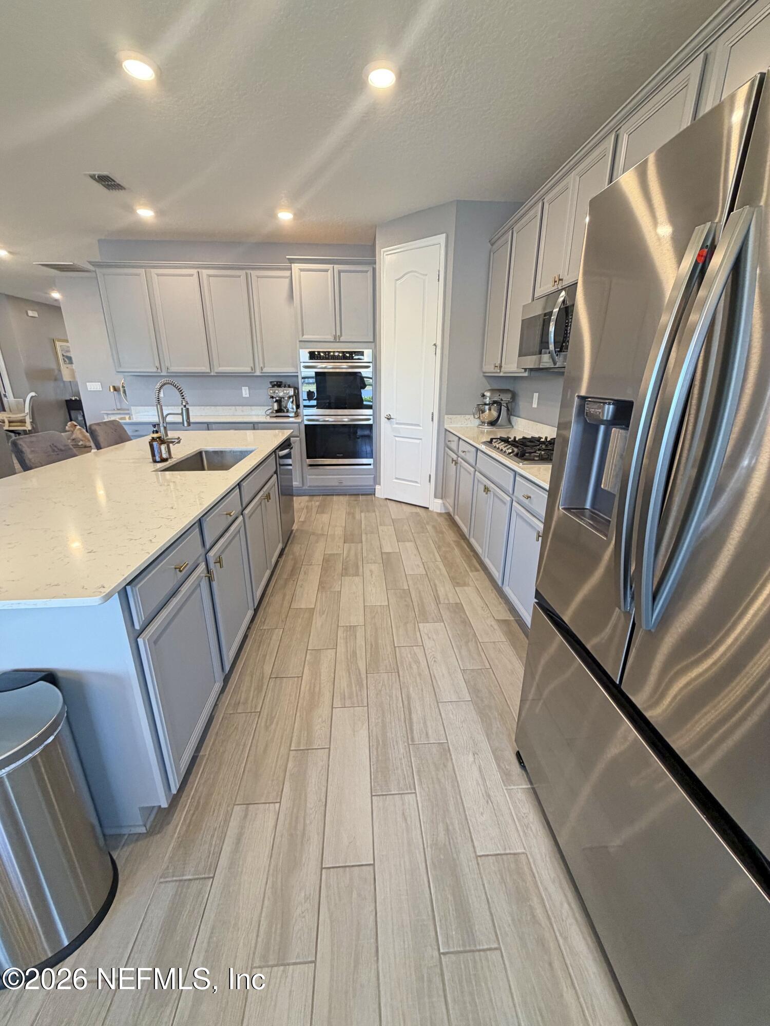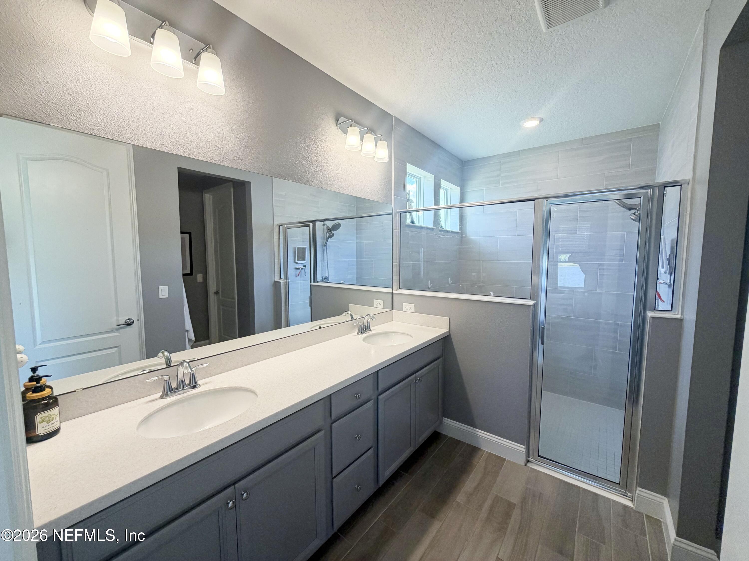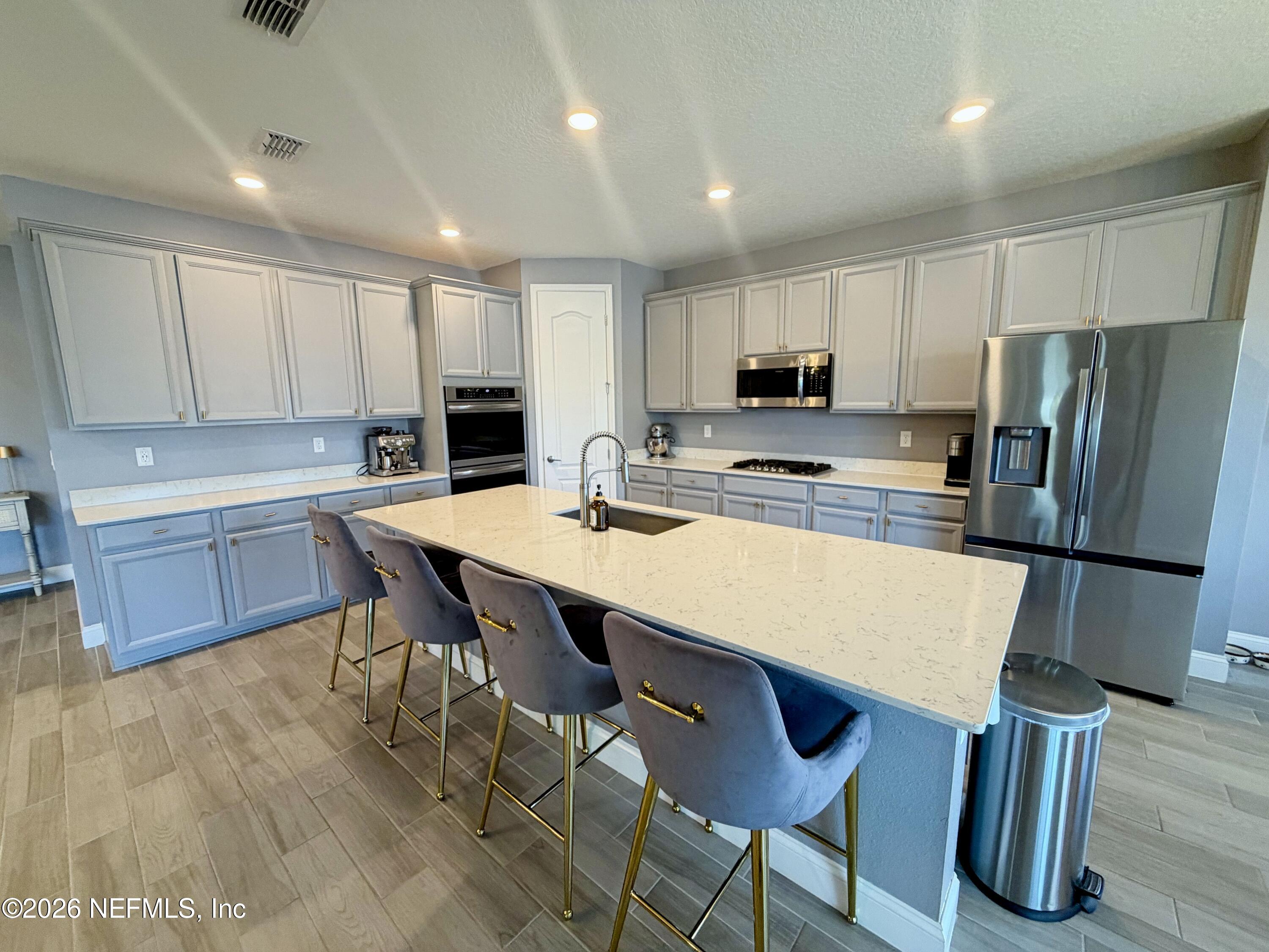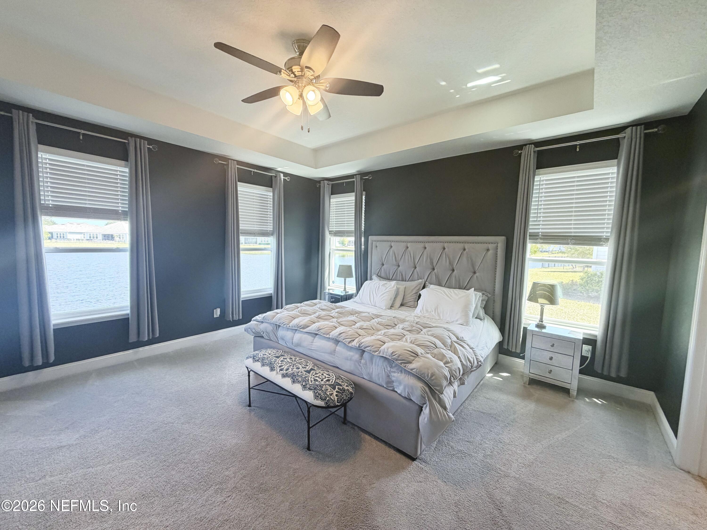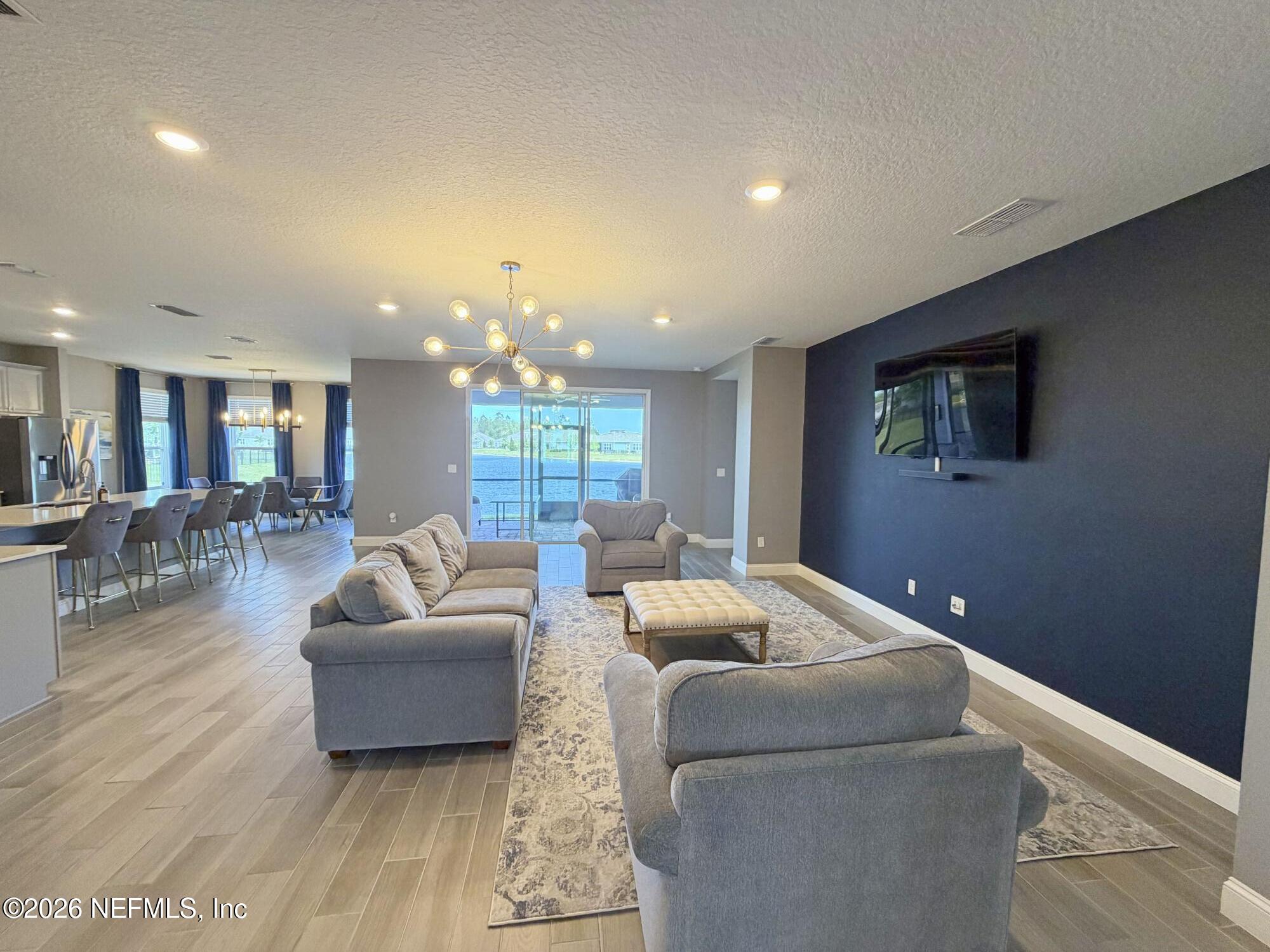 Stunning lakefront home featuring 4 bedrooms 3.5 bathrooms & over 3,000 square feet of living space, plus a 3-car garage, office & attached guest house. Located in the highly desirable gated & guarded Celestina community in St. Johns County, this home offers the perfect blend of luxury, flexibility, and modern convenience. Inside, you'll find an open-concept layout with wood-look tile flooring throughout the main living areas & a gourmet kitchen complete with quartz countertops, a large island, stainless steel appliances. The spacious primary suite features a large walk-in closet, dual vanities, & a stand-alone shower. The attached private suite is perfect for multi-generational living or guests, offering its own separate entrance, kitchen, bedroom, bathroom, & even a private garage. Step outside to a screened lanai overlooking a peaceful lake view. Enjoy resort-style amenities including a large pool, fitness center tennis/basketball courts & more.