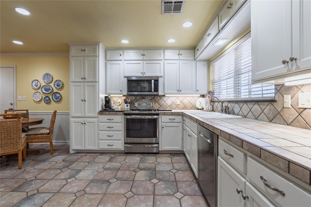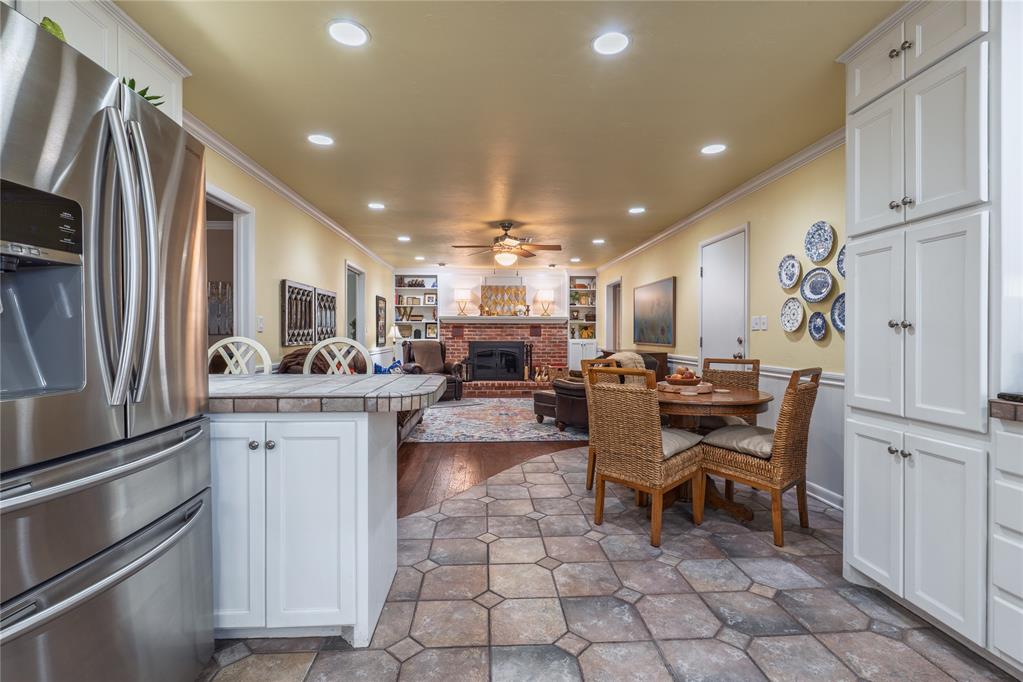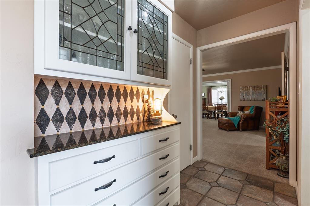 Full of character, charm, and elevated finishes, this beautifully appointed 3-bedroom 3-bath home offers additional flex space ideal for a private office, sitting room, or guest retreat. The stunning kitchen showcases newer appliances and opens seamlessly to the living area, where a cozy wood-burning fireplace is framed by custom built-ins, creating a warm yet sophisticated focal point. Just around the corner, a spacious dining room sets the stage for effortless entertaining, comfortably accommodating gatherings of any size. A second living area provides even more room to relax, host, or unwind in style. The primary suite is a true retreat, featuring a spa-like en suite bathroom with a walk-in shower, exquisite tile work, updated cabinetry, and generous counter space designed with both beauty and function in mind. The hallway bathroom offers a perfect blend of timeless charm and modern updates, highlighted by stunning original tile paired with refreshed cabinetry and countertops. The additional bedrooms are exceptionally well-sized and thoughtfully designed, offering a refined sense of comfort and versatility. Filled with natural light, these rooms easily accommodate larger furniture while still feeling open and airy. With ample closet space and elevated finishes, they provide the perfect setting for luxurious guest accommodations, serene personal retreats, or beautifully styled secondary spaces. Updated flooring flows throughout the home, adding a cohesive and polished feel that enhances every room. The basement offers excellent storage or flexible space for future possibilities. Step outside to an absolutely breathtaking backyard, your own private oasis. Meticulously landscaped, it features elegant flagstone pavers, a covered porch for year-round enjoyment, a sprinkler system, and a storage shed with electricity, ideal for hobbies, projects, or additional functionality.