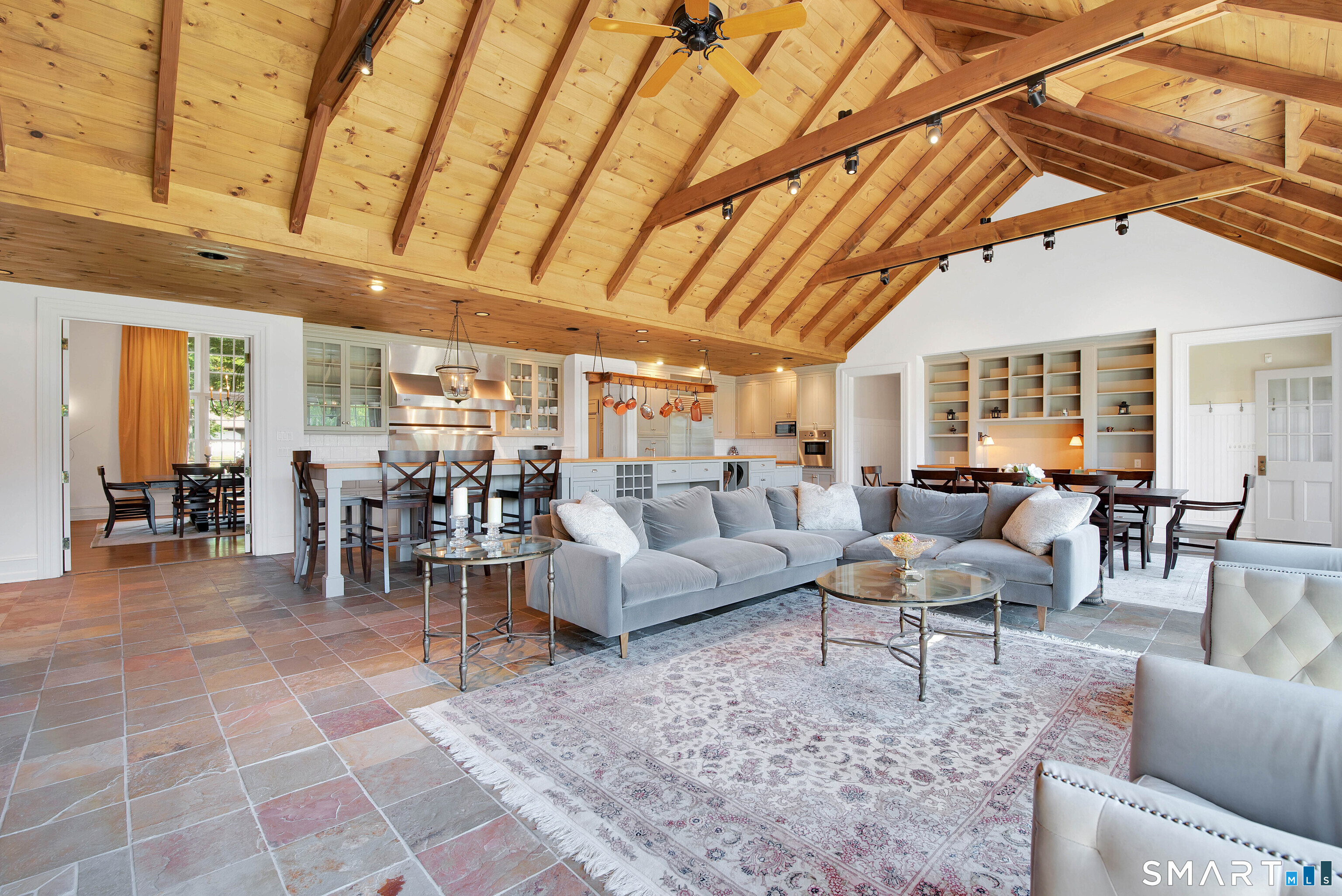 Welcome to this extraordinary stone and shingle country estate, nestled on 70 acres of private retreat. This property boasts spectacular western views, ponds, a greenhouse, and a horse barn. The meticulously crafted residence showcases exquisite taste, featuring high-end finishes and top-of-the-line appliances in the granite chef's kitchen, which is complemented by a butler's pantry and a spacious dining area. The formal dining room, captivating great room, and elegant living room feature soaring ceilings, slate floors, and two impressive stone fireplaces that stretch from floor to ceiling. With 7 generous bedrooms and 5.2 bathrooms-including two screened-in sunrooms, ample French doors, and Palladian windows-this home is filled with natural light throughout. Step outside to take in breathtaking views from the expansive slate patio and large deck, perfect for entertaining or quiet relaxation. The finished lower level provides additional living space with a full kitchen and two mudrooms-one with a separate laundry area, shower, and wash sink-offering both functionality and luxury. Truly a hidden gem designed for refined living. Schedule your private tour today and discover this unparalleled estate. See agent-to-agent remarks for additional details. Short-term rentals only: $3,500/day with a minimum 5-day booking and a maximum lease term of 28 days. Tenant is responsible for paying a 16 percent short-term rental tax. You can also lease house without horse farm around 3 acres.