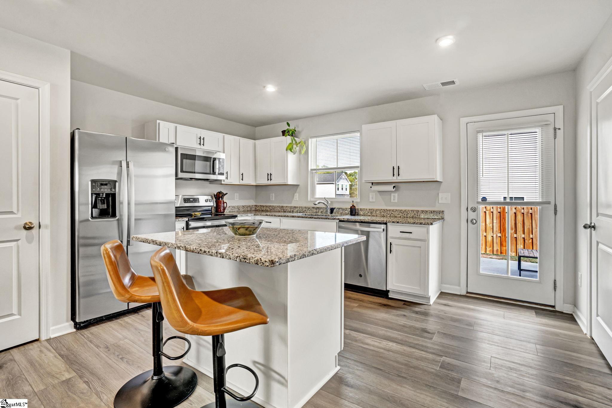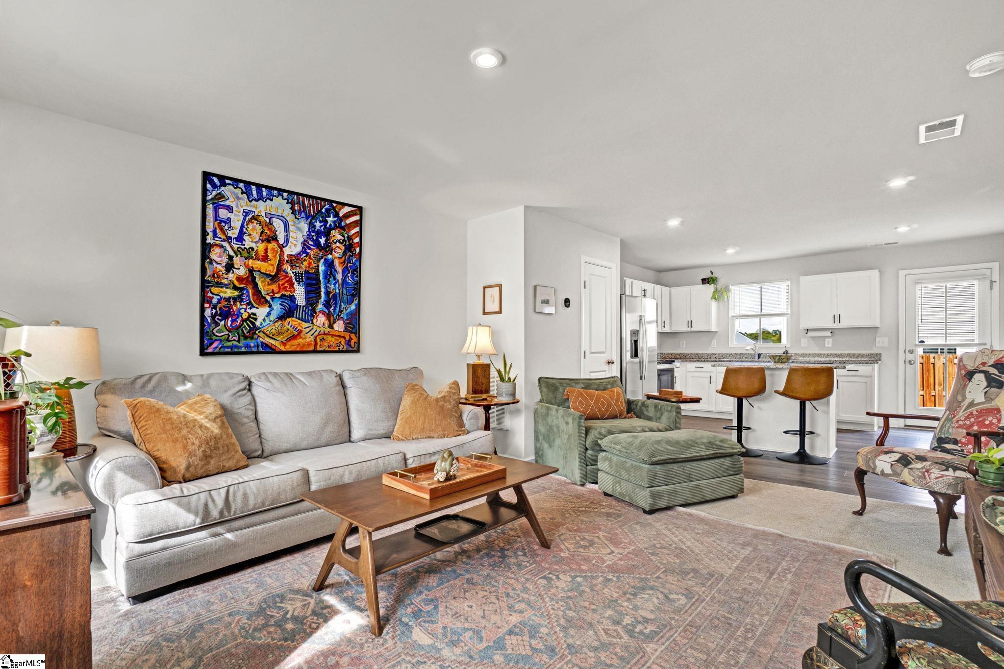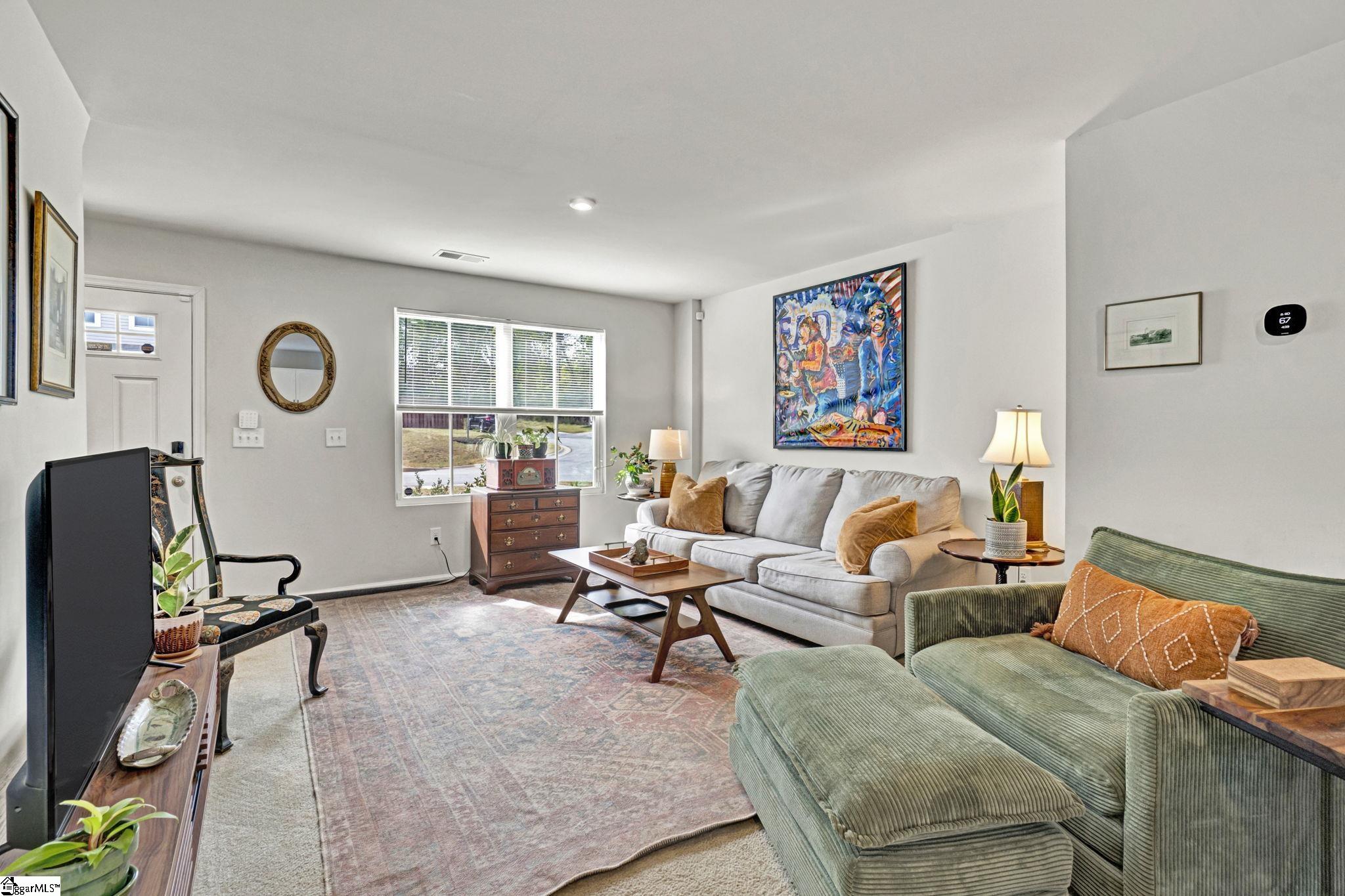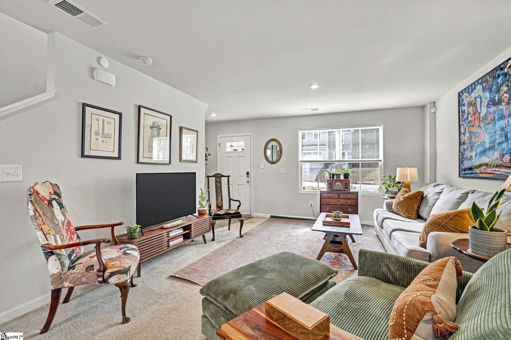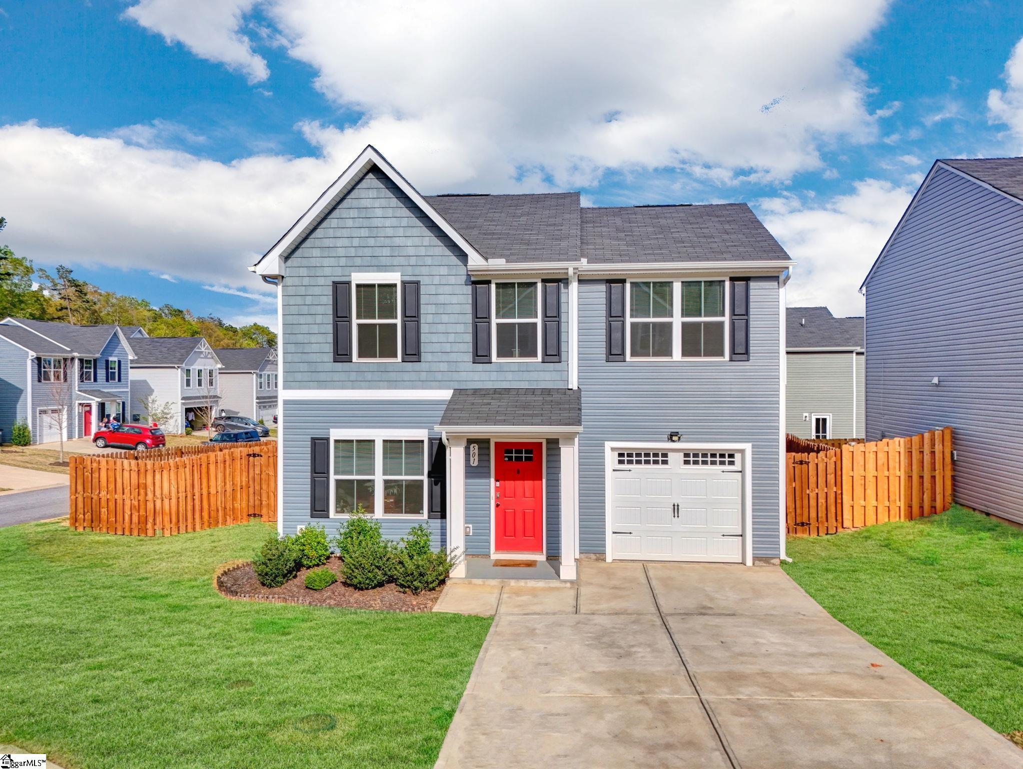 Welcome to 501 Mills Hill Way - a beautifully situated corner-lot home that offers both privacy and convenience, just minutes from beautiful downtown Greenville and the Swamp Rabbit Trail. Built in 2023, this home offers a neighborhood setting without sacrificing proximity to everything you need. Located at the end of a quiet dead-end street, this property boasts one of the largest lots in the community. Step inside through the cheerful red front door and you're welcomed by a bright, open floor plan. The living area flows seamlessly into a modern kitchen featuring stainless steel appliances, granite countertops, and a kitchen island that's perfect for casual dining. Upstairs, a sizable primary suite is filled with natural light and includes a full bathroom and walk-in closet. Two additional bedrooms share a second full bath, while the conveniently located second-floor laundry adds convenience to the floor plan. Outside, enjoy a fully fenced backyard and patio, perfect for relaxing spring evenings, gardening, or play. The one-car garage provides ample room for a full-size vehicle plus extra storage. What a charmer! 501 Mills Hill truly offers the best of comfortable living near the heart of it all. Schedule your showing today!