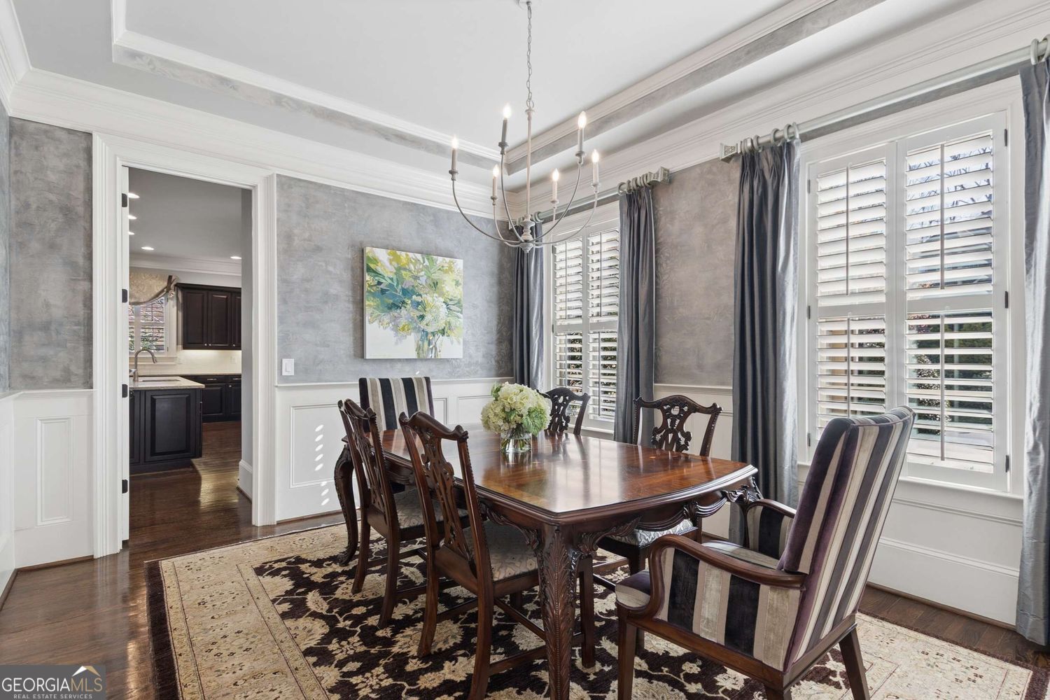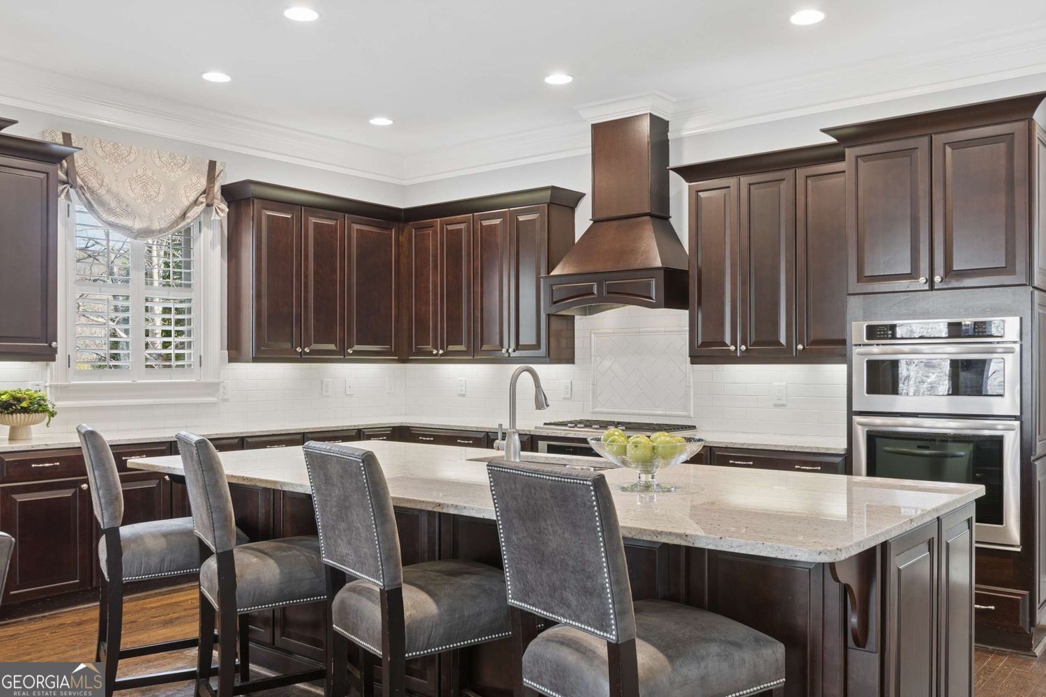 Welcome to your private retreat in East Cobb's coveted Walton school district. Nestled within the prestigious enclave of The Preserve at Lost Mill Trace, this exceptional brick and stone residence blends refined luxury with tranquil woodland and creek views-offering a true escape just minutes from everything. A beautiful foyer welcomes you into the main level, with the formal dining room and an elegant sitting room with bay window framing the entry. Beyond, the home opens into a light-filled family room with high coffered ceilings, built-in shelving, and a gas fireplace-creating a warm yet sophisticated gathering space. The adjoining chef's kitchen is thoughtfully designed with stainless steel appliances, an oversized island, walk-in pantry, and a dedicated office nook. The breakfast area flows seamlessly outdoors to a state-of-the-art covered outdoor living porch, complete with stone flooring, a soaring cathedral ceiling, a built-in grill, fireplace and gas heaters-perfect for year-round entertaining. Additional main-level highlights include a guest bedroom with full bath, spacious laundry room, mudroom, and a three-car garage. Upstairs, the luxurious and expansive primary suite offers a serene sitting area and a fully renovated spa-inspired bath featuring exquisite marble tilework, an oversized shower and soaking tub, dual vanities, heated tile floors, towel warming drawers, and an immaculate, custom-designed walk-in closet. Three secondary bedrooms complete the level, including one ensuite and two connected by a Jack-and-Jill bath. The terrace level is an entertainer's dream, showcasing a striking temperature-controlled wine cellar (500+ bottle capacity) crafted from stone, wood, and glass, along with a spacious den and a private home theater featuring a fiber optic star ceiling. A full bar with an oversized island, beverage refrigerator, dishwasher, microwave, and ice maker adds convenience to this upscale living space. A terrace-level bedroom with ensuite bath and walk-in closet offers flexibility as a guest suite or private fitness studio. Completing the level, a storage room with floor-to-ceiling shelving ensures ample space and easy access to seasonal & holiday decor. Step outside to a covered, screened porch with fireplace, leading to a beautifully designed stone patio with a four-tier fountain and firepit. Meandering trails and stone steps guide you to the creek and shared green space, creating a truly immersive outdoor experience. Additional features include a whole-home generator and three HVAC systems for optimal comfort and peace of mind.