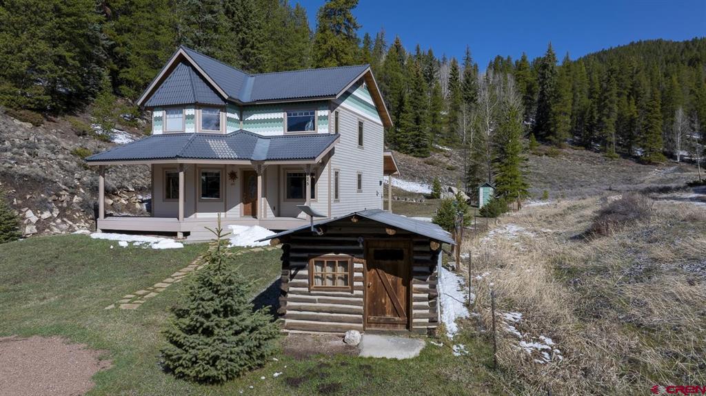 Victorian charm meets modern convenience. This well-built 3 bedroom, 2 bathroom, 1810 SF home was thoughtfully designed, blending historic details and high-quality building materials. The front (and back) decks are built with AZEK (R) PVC-covered decking. The "Spanish style" metal roof (resembling classic Spanish tile) and Hardie (R) plank siding provide durability and low maintenance for the high-mountain climate. Milgard (R) fiberglass windows with double cellular window shades enhance energy efficiency. The open-concept living room, dining room, and kitchen are bathed in natural light. The main level also features a spacious primary bedroom with walk-in closet and bathroom with a double vanity, as well as laundry room. A secondary living room and flex space, as well as two bedrooms and a full bathroom are all upstairs. Desing features include engineered Hickory hardwood floors and tile throughout the main level, solid pine interior doors throughout, and radiant in-floor heat on both levels. The kitchen highlights the combination of historic charm and modern functionality with the Elmira Stove Works range, with an electric 6-burner glass-top. The home has an over 5-foot-deep, lined crawlspace, offering ample storage and easy access for maintenance. The nearly 5-acre property includes a walking trail through wooded and sagebrush areas, providing opportunities to view wildlife and take in the views of Pitkin and the Quartz Creek Valley. The backyard also features a fire pit, perfect for starlit gatherings with friends and family. In addition to this stunning home, there is a historic cabin, with electricity, as well as the original outhouse from the Pitkin Community Church. There is a 4-car garage on an adjacent parcel (823 Main St) that is included in the listing. The loft of the garage is home to a "mini-museum" filled with artifacts found on the property over the years. The collection provides a snapshot of the history of the Pitkin area. Pitkin is located in the heart of Gunnison National Forest and provides access for year-round activity, including hiking, biking, fishing, hunting (GMUs 55 & 551), ATV-ing and snowmobiling.