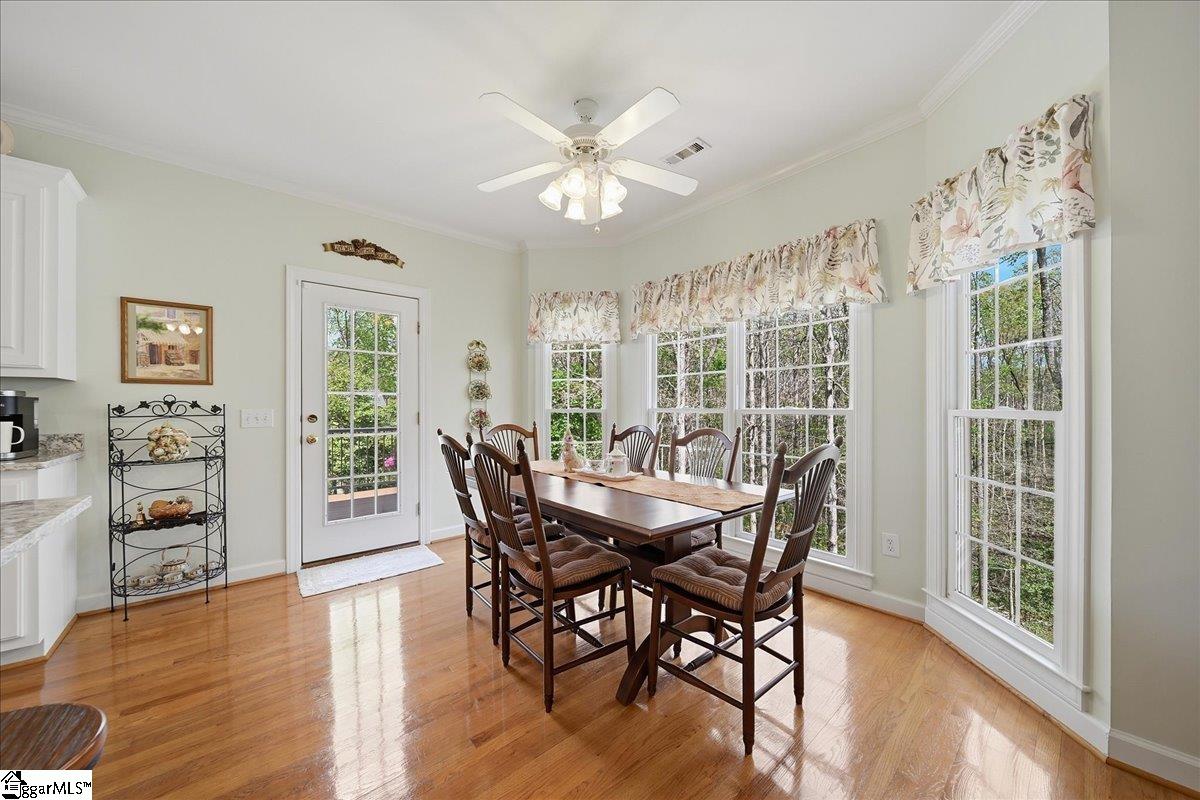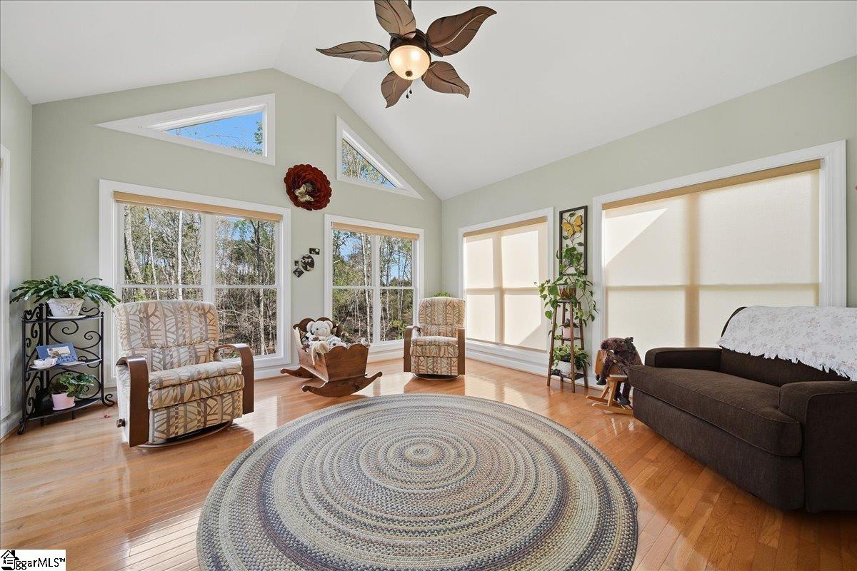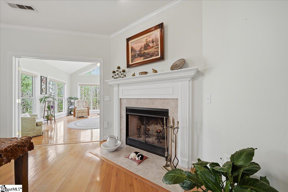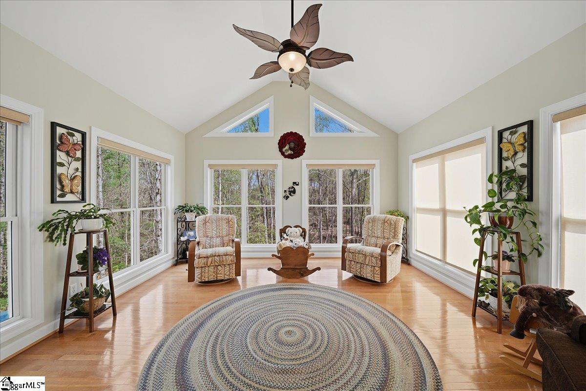 Welcome to this beautifully maintained 3-bedroom, 2.5-bath home in the desirable Laurel Lake neighborhood, where natural light and privacy take center stage. Floor-to-ceiling windows and recessed lighting throughout create a bright, inviting atmosphere. The open-concept main level features a spacious living room with a cozy wood-burning fireplace, seamlessly flowing into the dining area and kitchen. Just off the main living area, the sunroom features soaring cathedral ceilings and stylish decorator shades, creating a bright, inviting space to relax year-round while seamlessly bringing the outdoors inside. The kitchen is equipped with granite countertops, an island, and a charming bay window overlooking the serene, wooded backyard. Step outside onto the Trex grilling deck off the kitchen and enjoy peaceful views of the completely private backyard, where deer and birds are frequent visitors. The primary suite is conveniently located on the main level and offers large windows, abundant natural light, two walk-in closets, and a full bath. The lower level offers an additional living area complete with a kitchenette - perfect for guests, entertaining, or a private mother-in-law suite - along with a spacious screened porch that overlooks the peaceful wooded retreat. Two additional bedrooms and a full bath complete the downstairs space. Located in a beautiful, walkable community with amenities including a pool, clubhouse, and tennis courts, and zoned for highly rated schools. Conveniently situated near CESA soccer fields, this home offers the perfect blend of comfort, nature, and community living